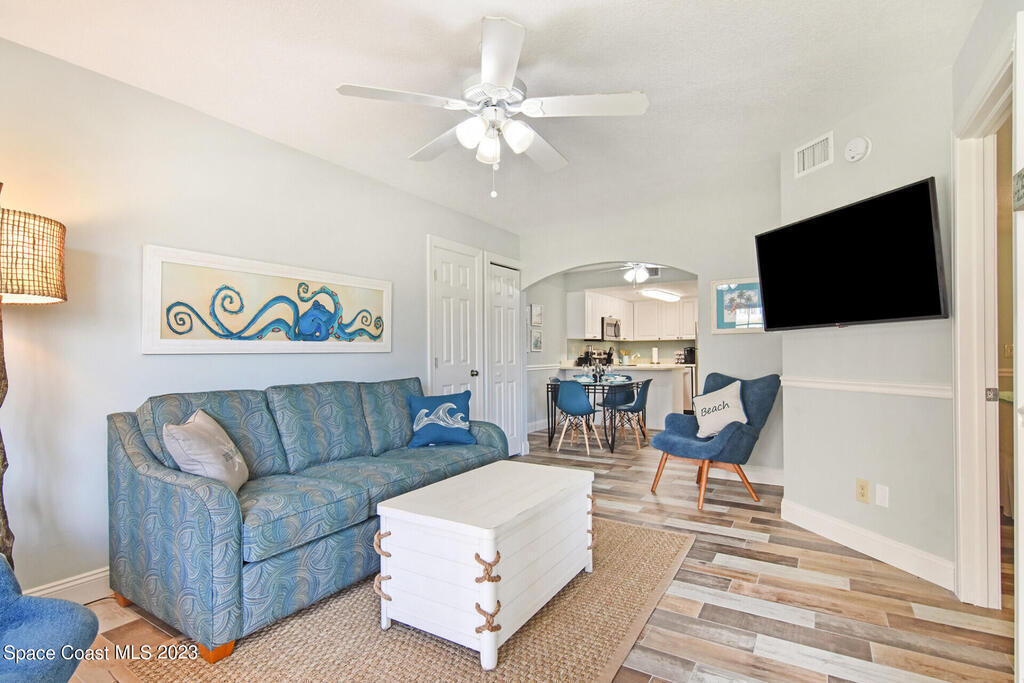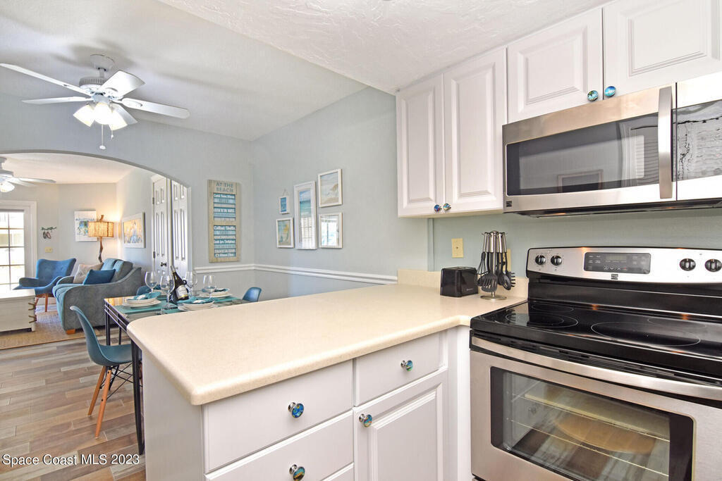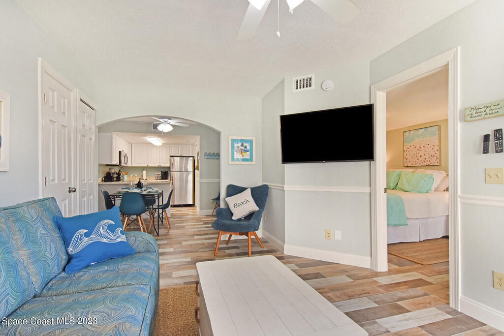 OWNER FINANCING! OCEANFRONT PARADISE! This gorgeous, fully furnished condo is located on 700 feet of pristine private beach in Cape Canaveral. The ground floor, one-bedroom unit has been completely renovated and professionally decorated and features updated cabinets, flooring, bathroom, baseboards, and appliances along with impacted-rated doors and windows. The property is fully gated and includes pool, hot tub, clubhouse, barbeque, and private beach access, Perfect investment, 2nd home or a permanent oceanfront paradise. This home has been a seasonal AirBnB rental and is the only beachside Airbnb Plus unit in Brevard County. Low HOA includes water, cable, internet, insurance and exterior maintenance in this weekly rental community.