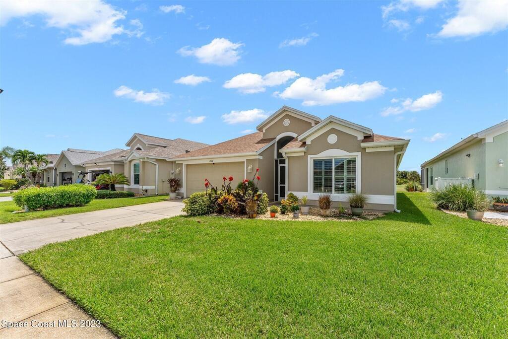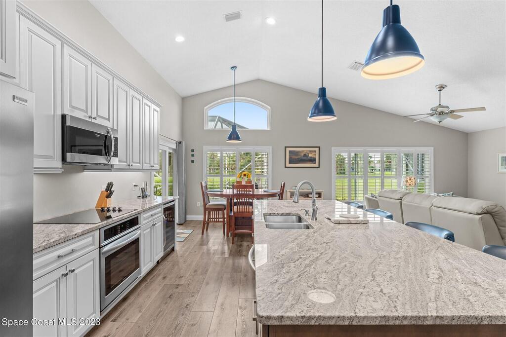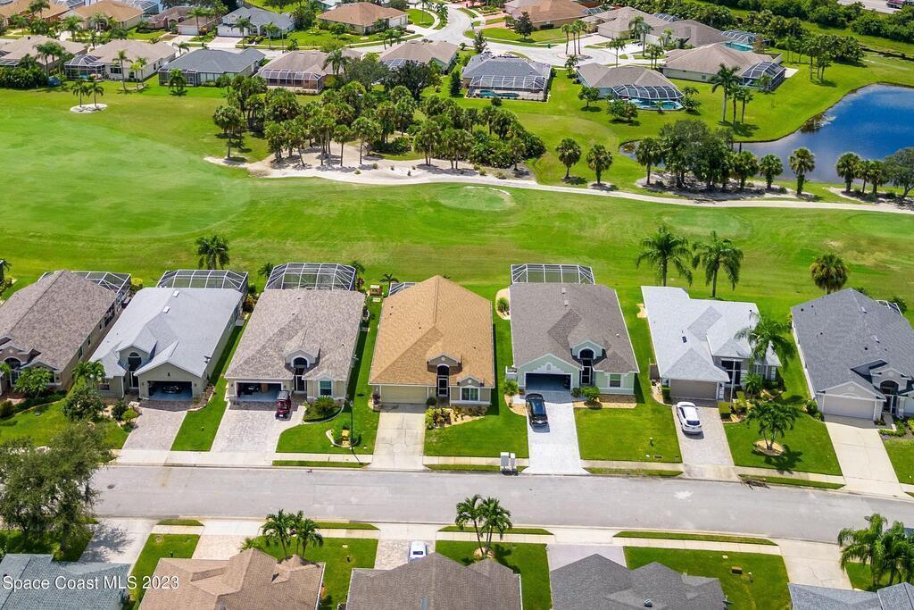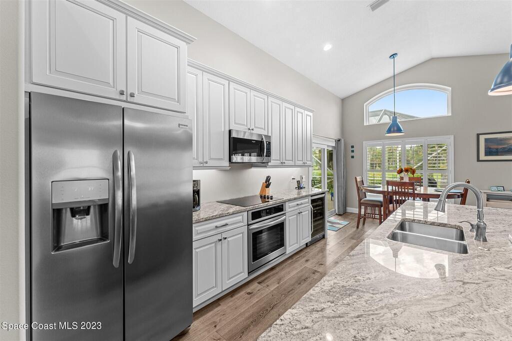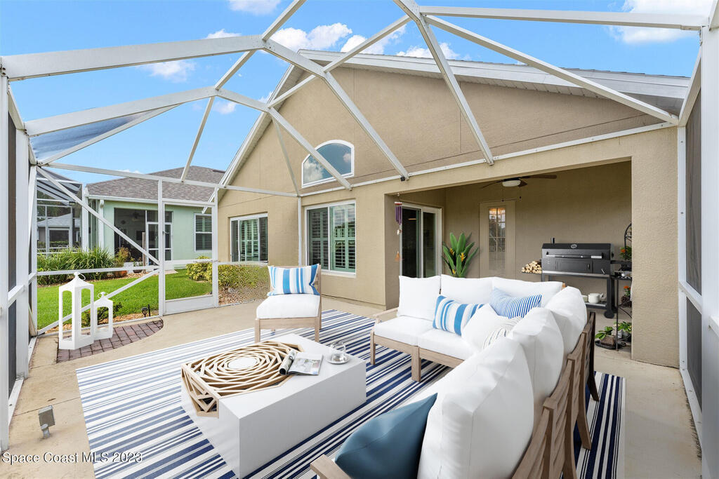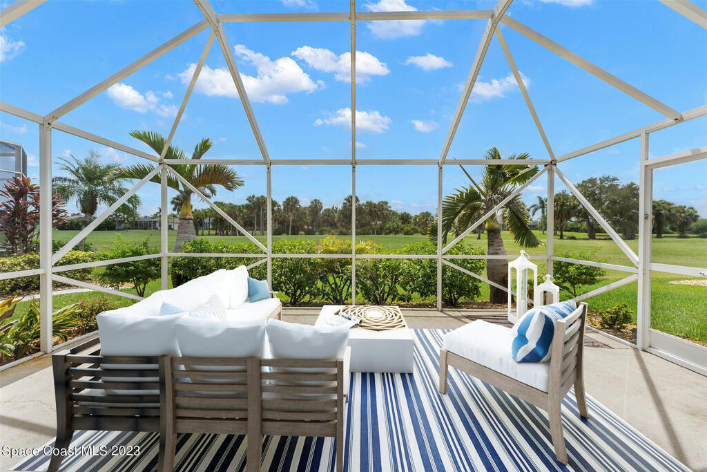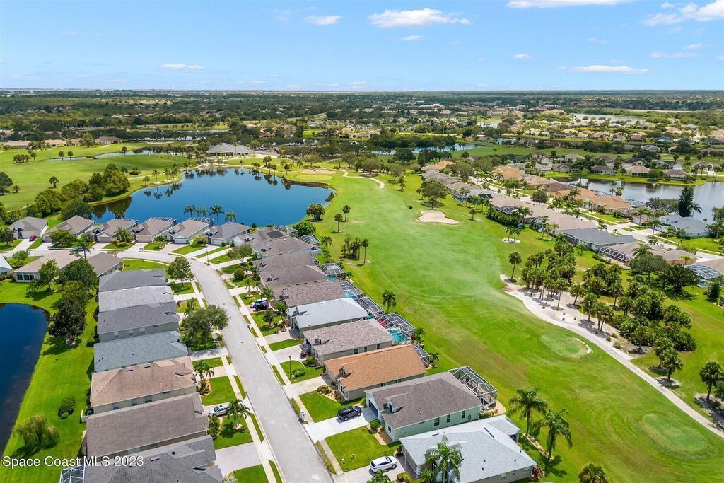 Nestled within Viera East Golf's gated community, this 3-bed, 2-bath gem radiates modern elegance and comfort. Featuring an updated kitchen, tile flooring, impact windows and a newly remodeled bath, this home exudes contemporary charm against a backdrop of serene golf course views. Step into a sun-kissed open layout that seamlessly connects the living spaces, inviting in the warmth of natural light. The updated kitchen boasts an extended island with granite countertops, stainless steel appliances, and wine cooler, a perfect blend of function and luxury. However, the allure of this home extends beyond its walls. Venture out through the sliding doors to discover a screened patio, a coveted space where the boundary between indoor and outdoor living blurs. It's here, amid the swaying