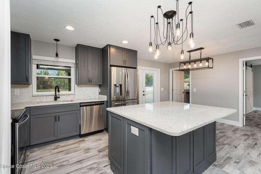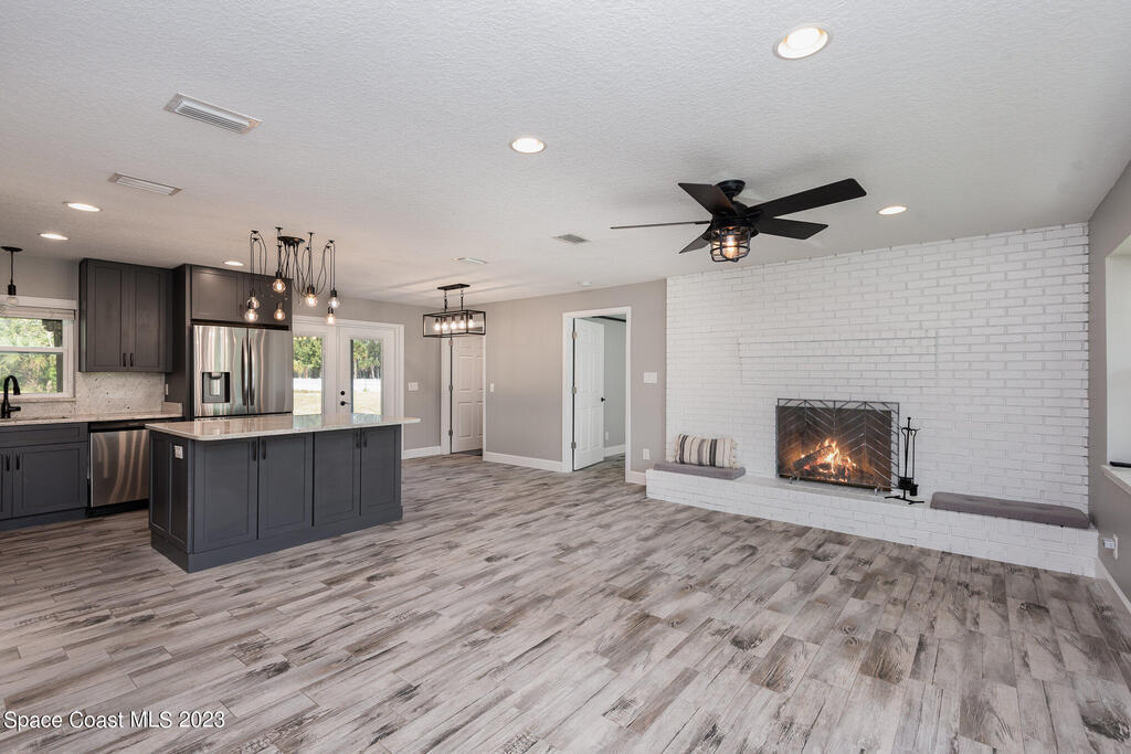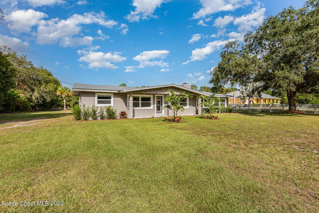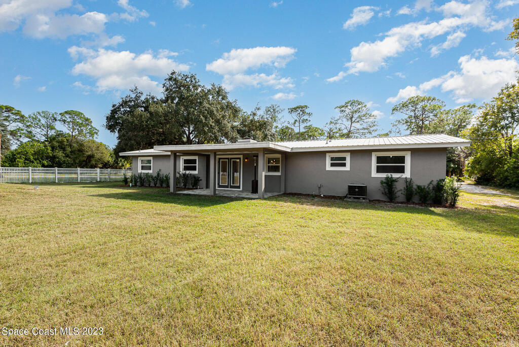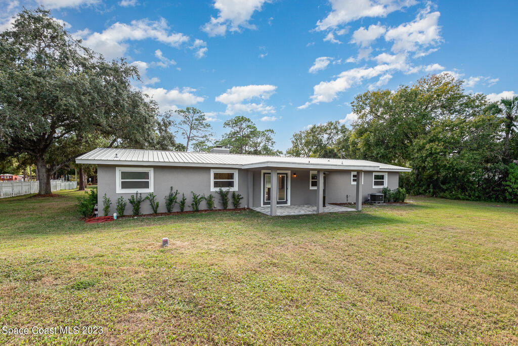 Welcome Home for the Holidays!!! You will enjoy the Completely re-modeled 4 bedroom home on an acre of land that is move in ready. Everything new with in the last 2 years. New Metal roof, new plumping thru out the home, all electrical re-wired, Appliances, Septic System, Insulation, Air condition system, New Windows and doors. Open Floor plan with a fireplace in the living room. Great for entertaining!! Large master bedroom that includes plenty of closet space. There is a covered back patio for your enjoyment and large back yard with enough room for a pool, RV/ boat parking or that barn you have always wanted. Partially fenced. Great Location with easy access to I-95 and the Beachline. Only a short distance to Shopping, Churches and Kennedy Space Center.