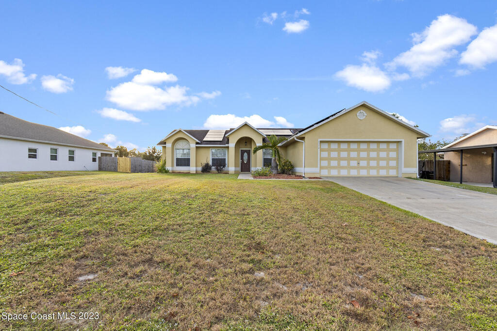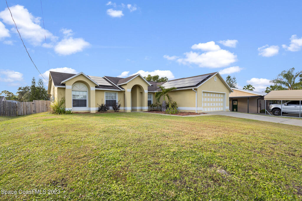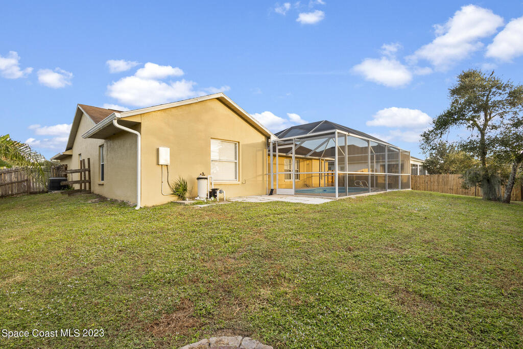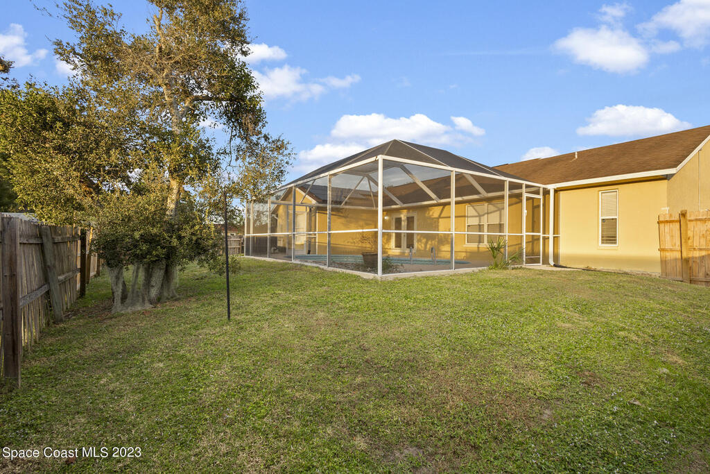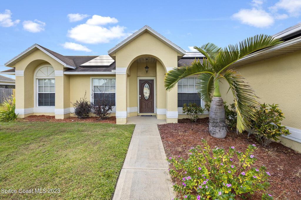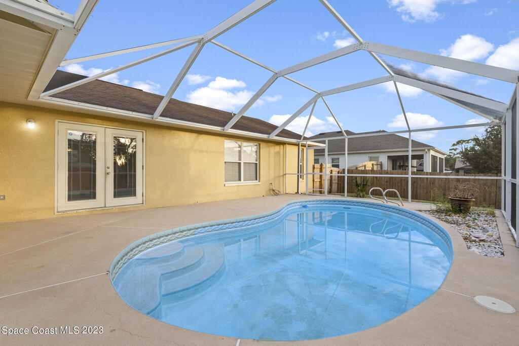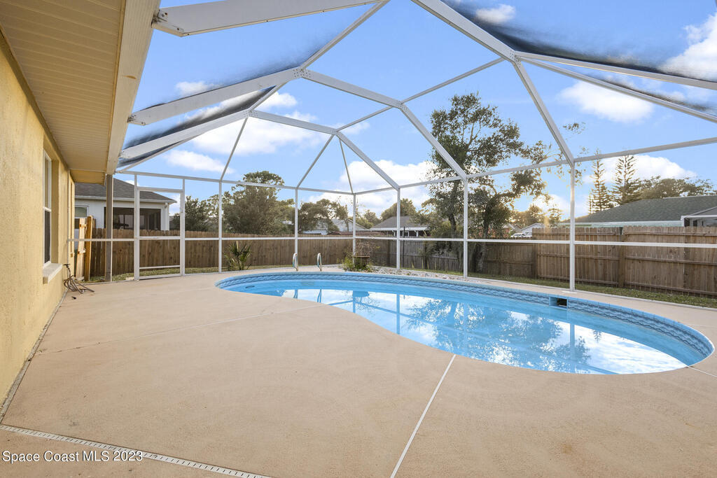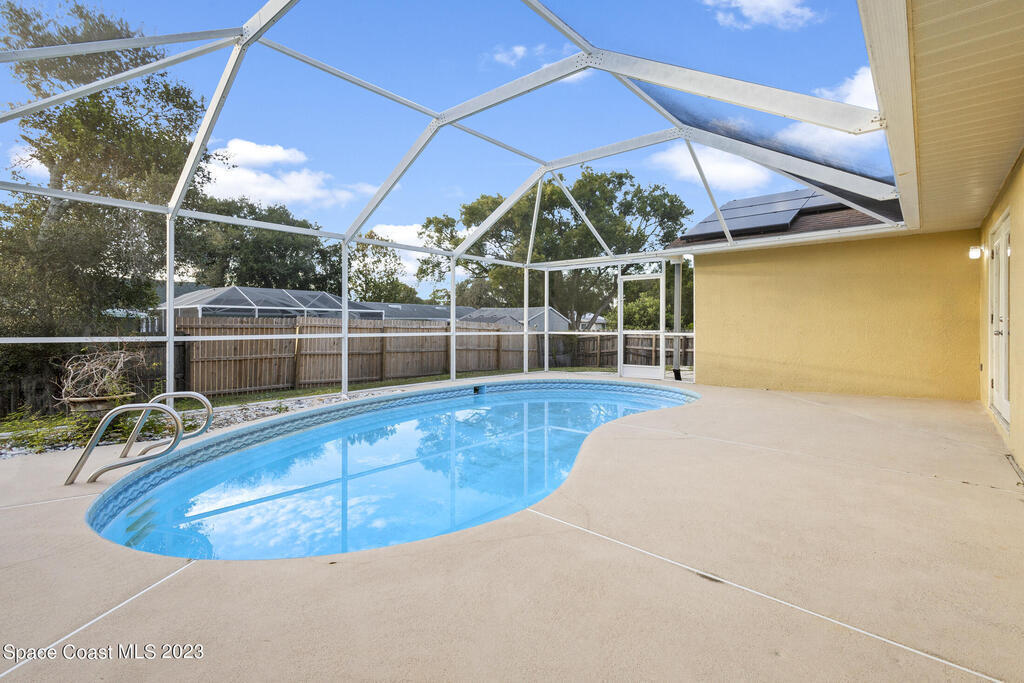 POOL HOME IN COCOA- This 4 bedroom 2 bath home is the epitome of Florida living. Holding a desirable open concept floor plan with a great room that houses a sitting room/office, living room, dining room, and kitchen, this home is an entertainer's dream. To the rear of the home you will find direct access to the enclosed pool, allowing you to envision entertaining and relaxation, a haven. Eco-friendly solar panels, making the home energy efficient, as well as a security system are just a few of the home's bonus features. A spacious layout with modern amenities, as well as an ideal location with ease of access to the ocean, rivers, and the Patrick Space Force Base, this Cocoa charmer is a must see! Step into your next chapter of homeownership with a property that exceeds all expectations.