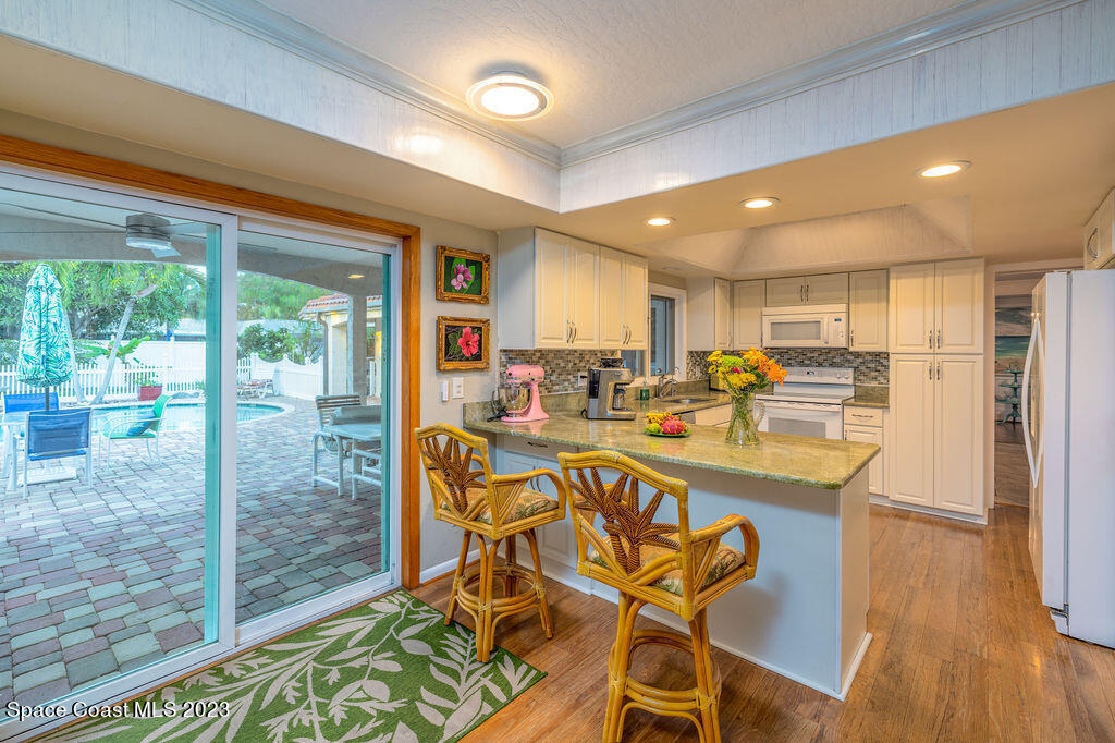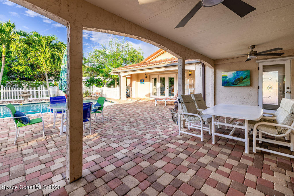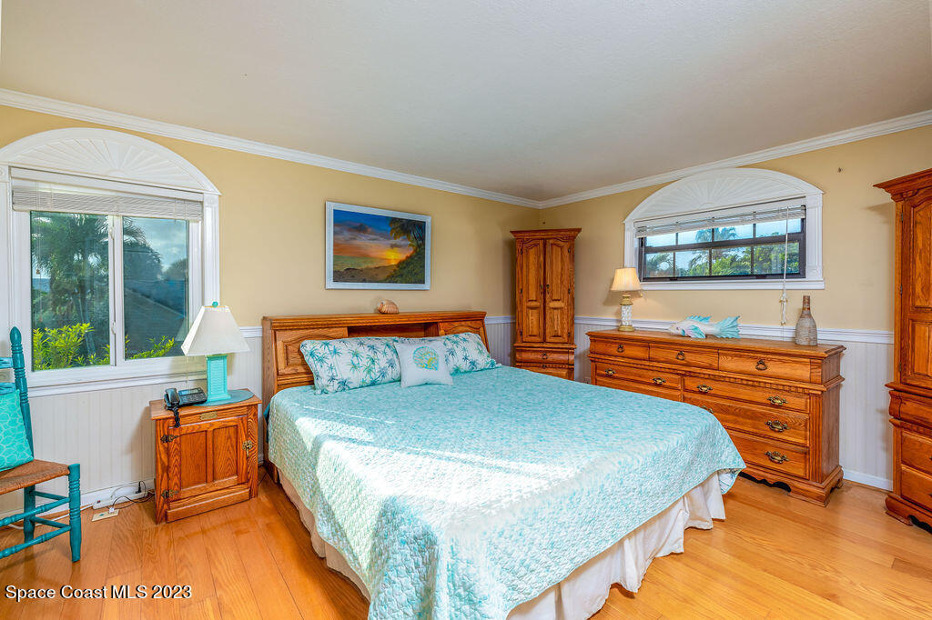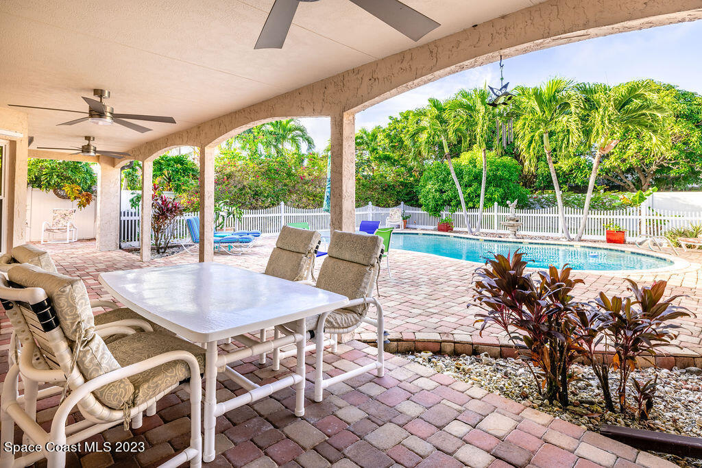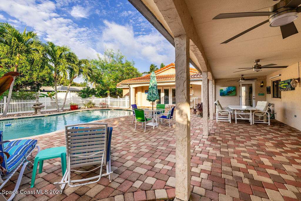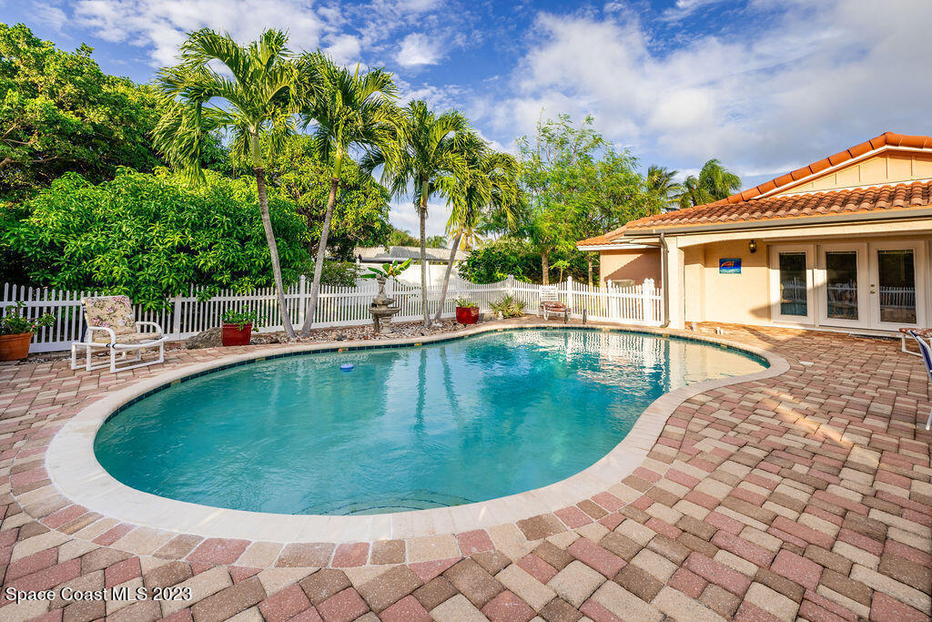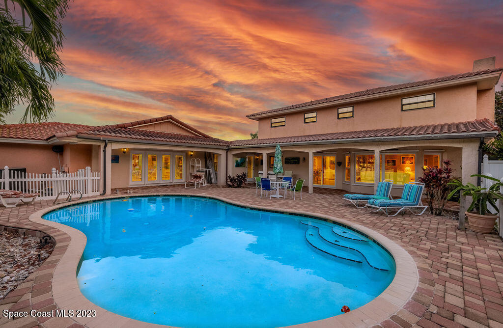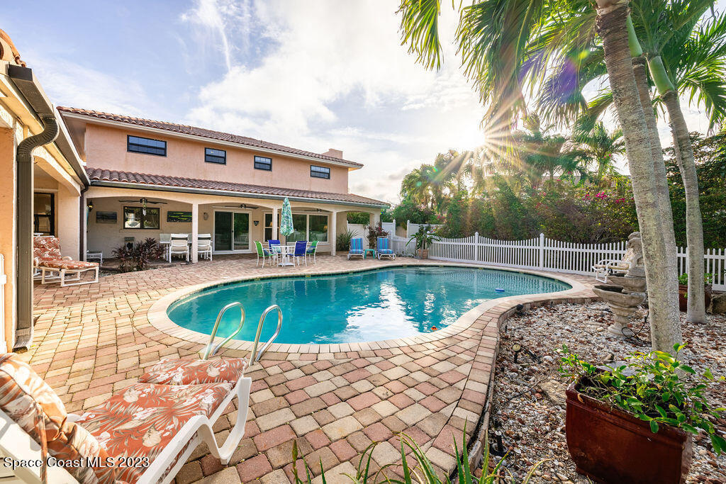 Welcome to Melbourne Beach. This beautiful home in coveted Rivers Edge neighborhood is family friendly and located near the Indian River, next to premier Arnold Palmer designed golf course, and is a short walk to the Beach. Relaxing Ocean and River Breezes. Close to Beachside restaurants, shops, and markets. This 3811 sq. ft. two story private enclave with beautiful pool is the ultimate in beachside lifestyle. The main house boasts 3 bedrooms with the master bedroom having a separate sitting area. Two offices with built-in cabinets. The Family Room and Kitchen overlook the well-appointed covered patio for outdoor dining. Under sink reverse osmosis water purifier. RV Pad with 230 Volt Hookup. Heated Pool and deck are surrounded by a large fenced-in private backyard with organic fruit trees