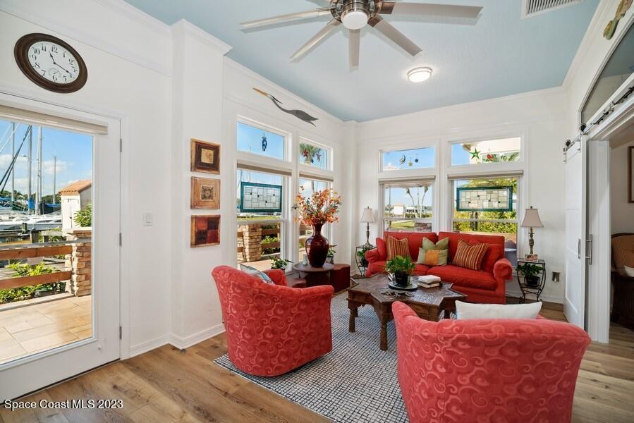 Live where the dolphins play! Absolutely stunning Banana Riverfront townhome located in the highly desirable and gated Indian Harbour Beach community of Marina Isles! Opulence awaits in this ''single-story'' townhome with 12 foot ceilings. Custom built with the highest quality of craftsmanship and materials! Luxury appointments throughout such as a romantic fireplace & elegant wine bar! Walls of windows capitalize on the breathtaking views of the water, wildlife and the iconic Mather's Swing Bridge! Featuring 3 bedrooms, 2 bathrooms, a gourmet chef's kitchen, great room, expansive sunroom, spacious utility room & an oversized two car garage!
