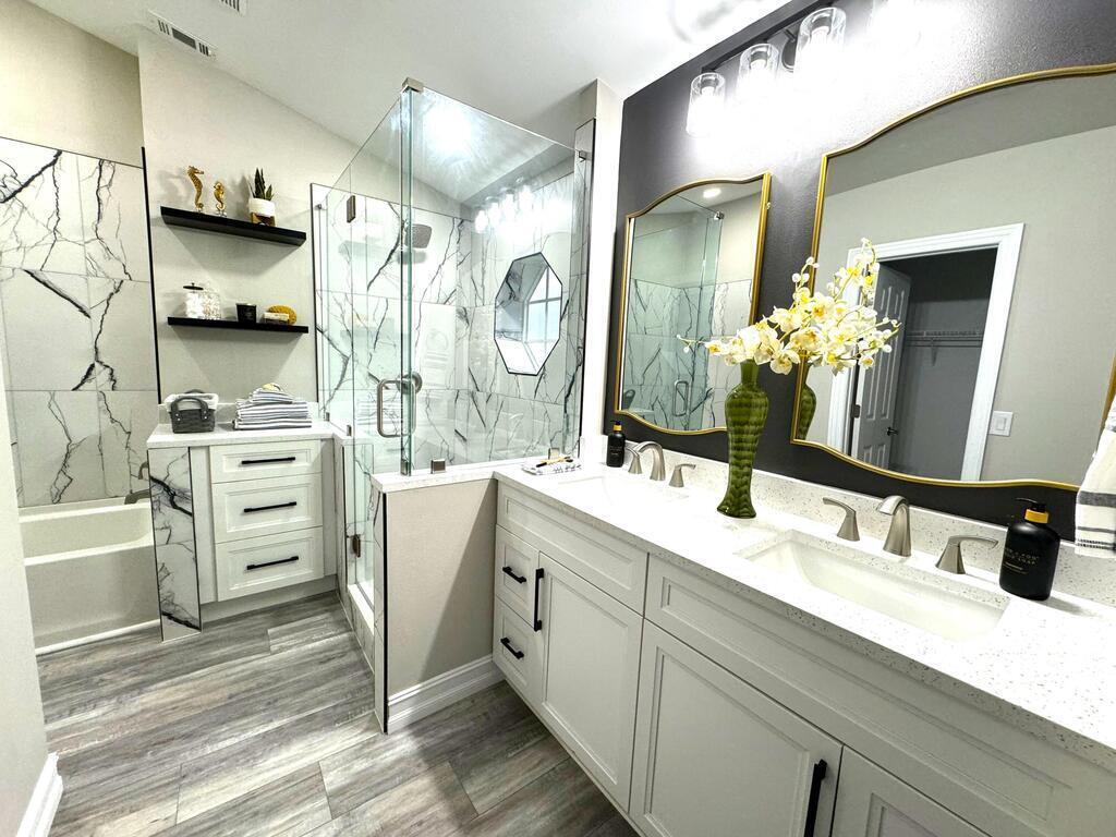 Breakfast Bar , Ceiling Fan(s) , Pantry , Primary Bathroom - Tub with Shower , Primary Bathroom -Tub with Separate Shower , Split Bedrooms , Vaulted Ceiling(s) , Walk-In Closet(s)
