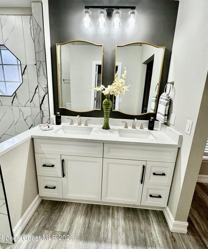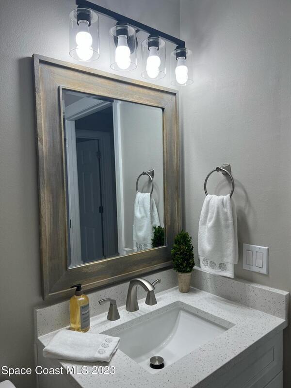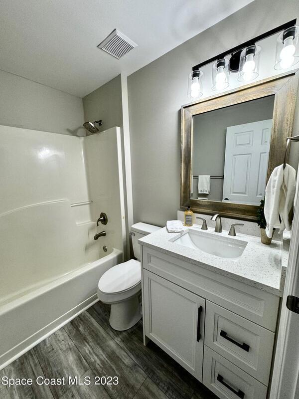 Come see this beautifully renovated home off Fawn Ridge in the Crane Creek Subdivision of Viera. With an open floor plan, vaulted ceilings, stunning fixtures and a brand, new kitchen & bathrooms, this turnkey house is ready for someone to call it 'Home'!! The master bathroom has not only a huge walk-in shower but your very own bathtub to relax with a glass of wine while soaking after a long day. This home also has received a fresh new coat of paint on the interior & exterior, front & back screen porches, along with the stunning garage floor. This home will offer the most favorable 4-point inspection and rates due to an updated HVAC, water heater, electrical, hurricane shutters and a roof approximately 10 years old. Make your showing today before it's gone tomorrow.