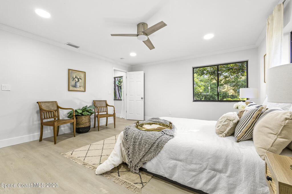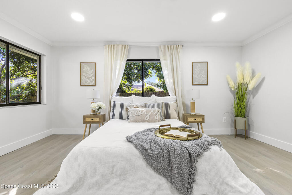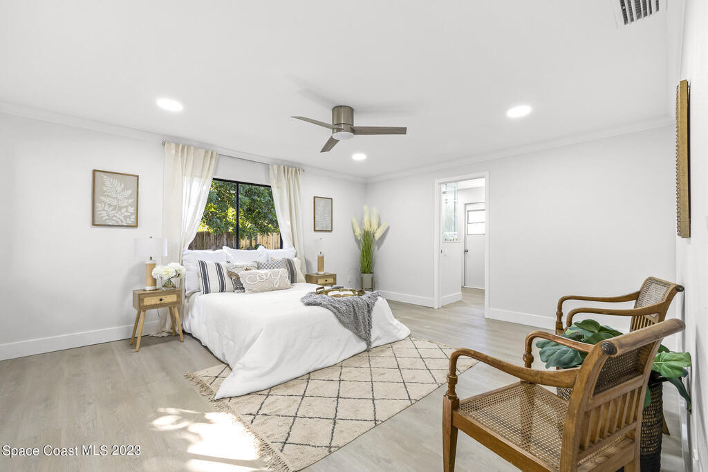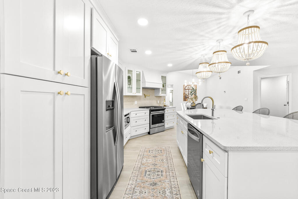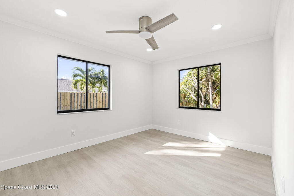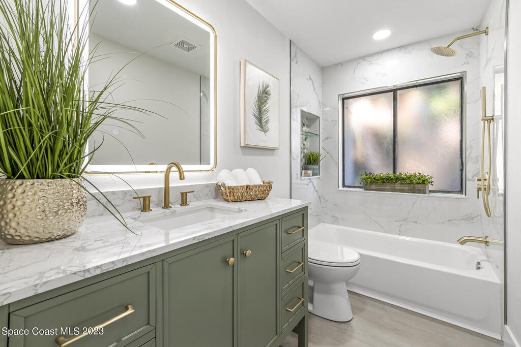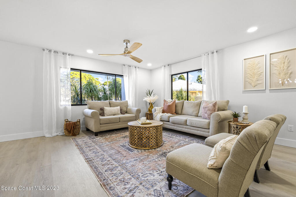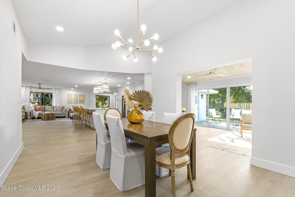 Stunning Completely Remodeled and Professionally Designed Suntree Residence on quiet Cul-de-sac. Entertain family and friends around the massive quartz kitchen island in this open floor plan home. Enjoy morning coffee on the pavered patio. Every surface has been updated in this lovely home. Flooring, Appliances, HVAC, Roof, Kitchen, Bathrooms, Electrical Panel, Tankless Water Heater,Designer Lighting ALL NEW in 2023. Mature fruit tree grove, fenced yard, wide driveway on this 1/3 acre lot. Close to restaurants, shopping and entertainment. 10 min to the best beached in Brevard. Fine Florida Living Awaits!!