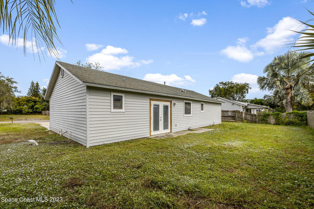 SELLER IS WILLING TO HAVE NEW ROOF INSTALLED BY CLOSING! Located in a great neighborhood, on a quiet street, with easy access to I-95 and US1, you'll have great views of every launch! The home features a large livingroom that opens up to the dining room and an updated kitchen with plenty of storage and counterspace as well as a custom built-in wine bar and beautiful French Doors that lead to the spacious backyard. Titusville is full of fine dining, shopping, and historic Downtown where you can enjoy events in every season here on the Space Coast.