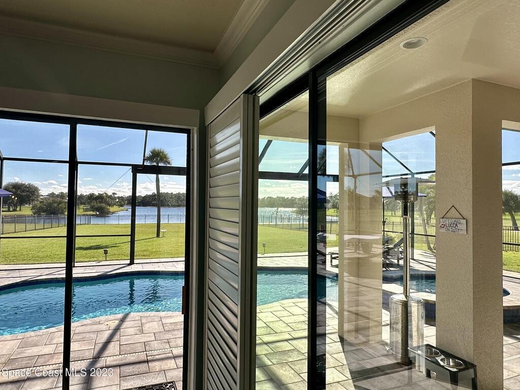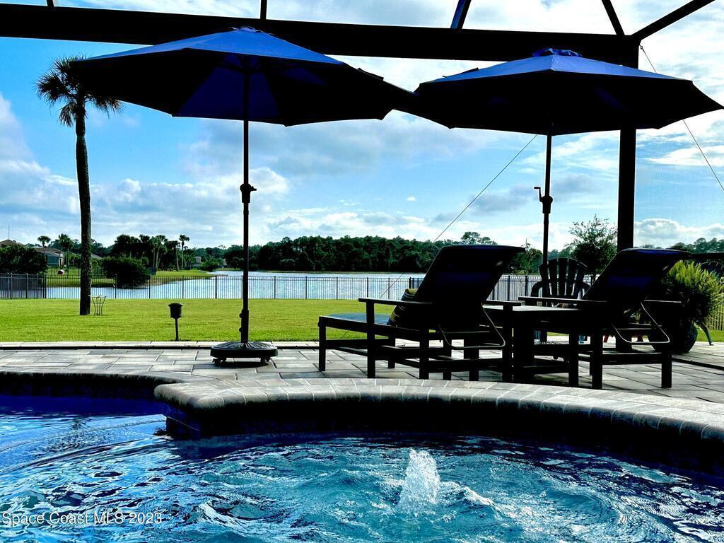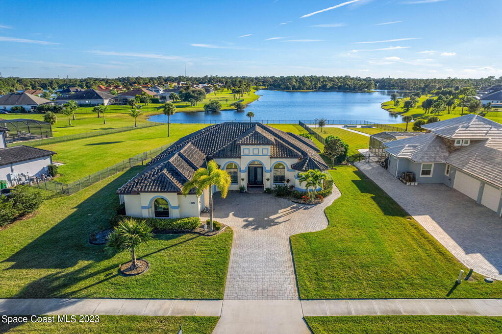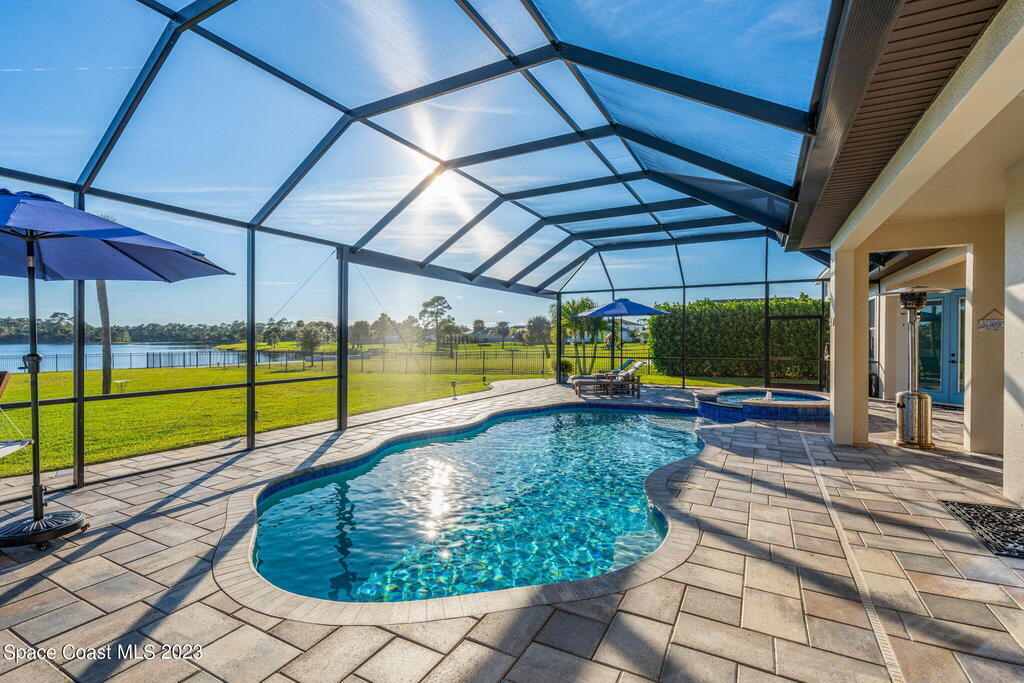 EXQUISITE NATURAL LAKEFRONT CUSTOM HOME ON NEARLY AN ACRE WITH HEATED POOL AND SPA IN GATED COMMUNITY! An Entertainer's dream, under roof outdoor kitchen and expansive screened in area with built in ambient lighting as well as tranquil outdoor paver gathering areas. Elegant 4 Bed 3 Bath plan with study and formal living and dining, including open family room, large kitchen and breakfast area, stunning views and 12' to 13' high tray ceilings and 8' doors throughout. A wing dedicated to the master suite with double door entry, dual walk -in closets, 9' soaking tub, huge walk-in shower and double door access to back patio. Highly sought-after newer, fully built out gated community, Woodshire Preserves, Reserves at Lake Washington. Close to all the amenities and 15 min to beach! Priced to sell! Excellent Opportunity!