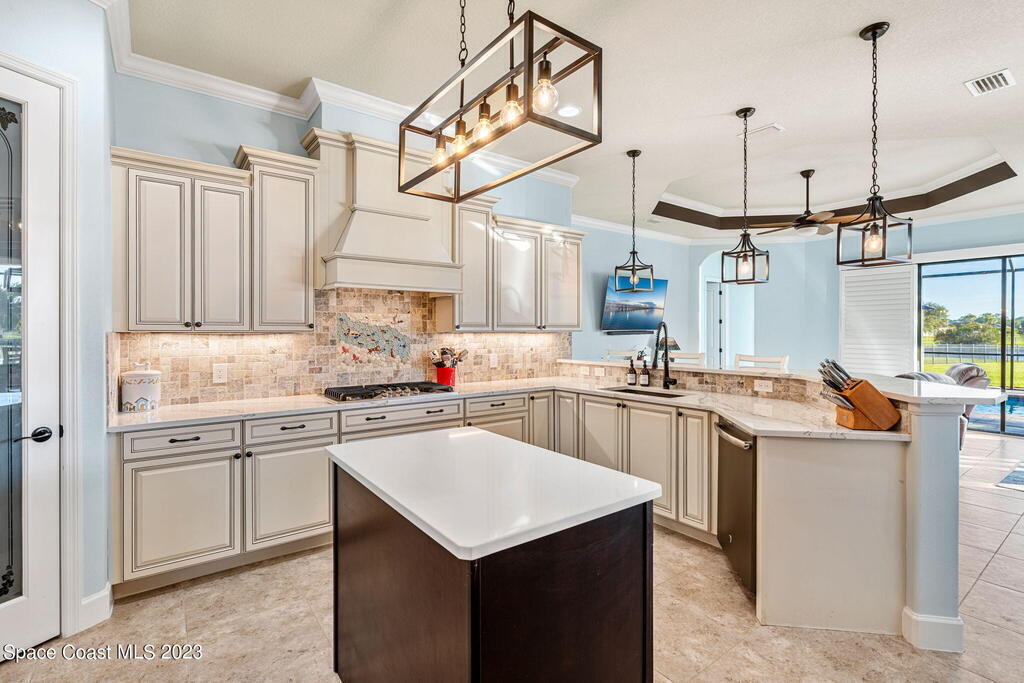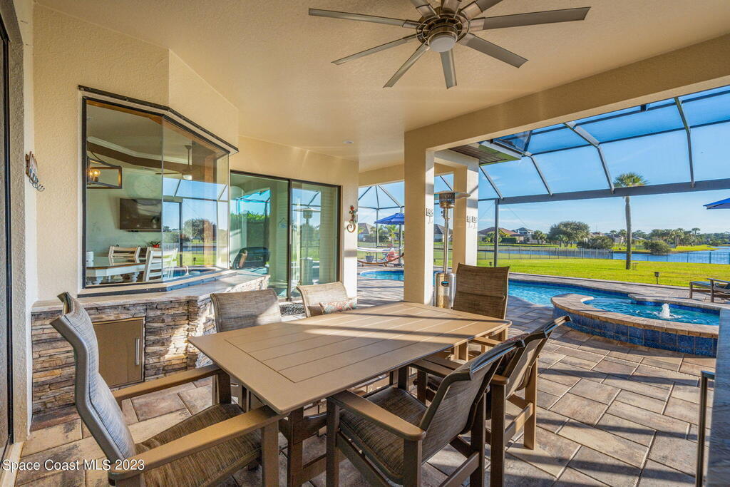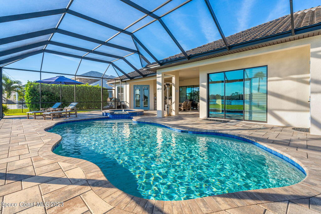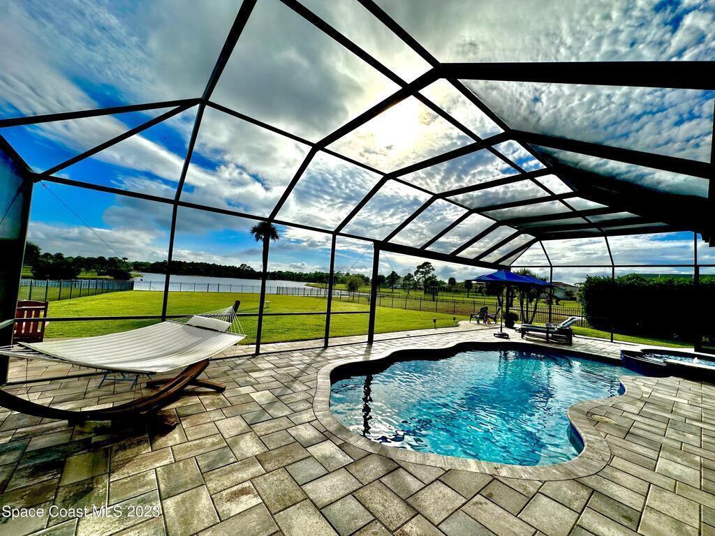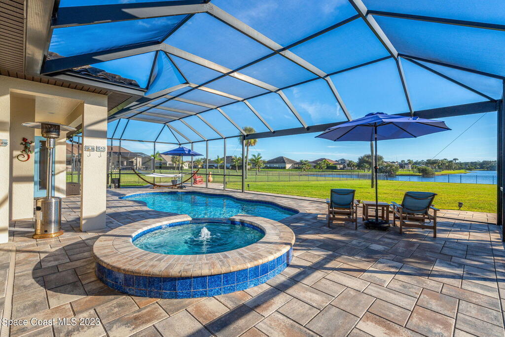 EXQUISITE NATURAL LAKEFRONT CUSTOM HOME ON NEARLY AN ACRE WITH HEATED POOL AND SPA IN GATED COMMUNITY! An Entertainer's dream, under roof outdoor kitchen and expansive screened in area with built in ambient lighting as well as tranquil outdoor paver gathering areas. Elegant 4 Bed 3 Bath plan with study and formal living and dining, including open family room, large kitchen and breakfast area, stunning views and 12' to 13' high tray ceilings and 8' doors throughout. A wing dedicated to the master suite with double door entry, dual walk -in closets, 9' soaking tub, huge walk-in shower and double door access to back patio. Highly sought-after newer, fully built out gated community, Woodshire Preserves, Reserves at Lake Washington. Close to all the amenities and 15 min to beach! Priced to sell! Excellent Opportunity!