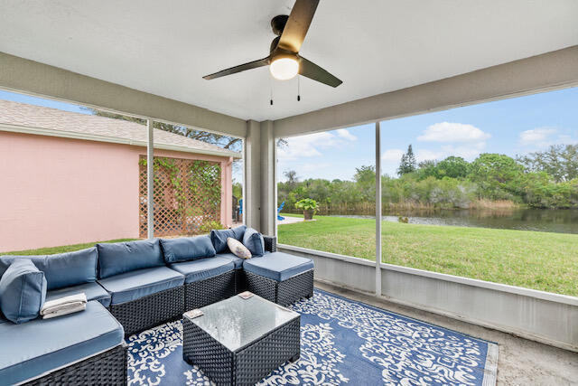 Great Location in East Viera!! Charming 3 Bed, 2 Bath, 2 Car Garage Home with Scenic Waterfront Views! This meticulously maintained home boasts a new roof, water heater, and a 2017 AC unit for worry-free living. The open floor plan, vaulted ceilings, and abundant natural light create a spacious and inviting atmosphere. Enjoy breathtaking waterfront views from your screened-in covered back porch. With a two-car garage and modern updates, this home is perfect for comfortable living. Refrigerator and Dishwasher recently purchased! Freshly Painted Outside!! Must See to appreciate!