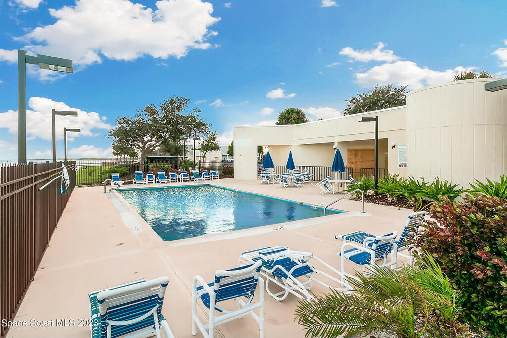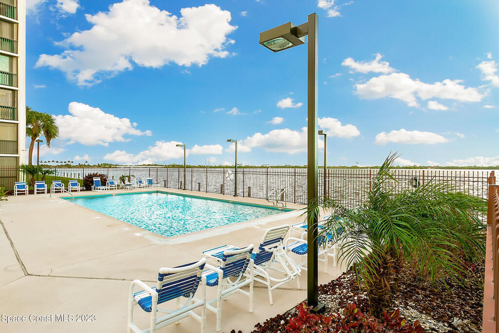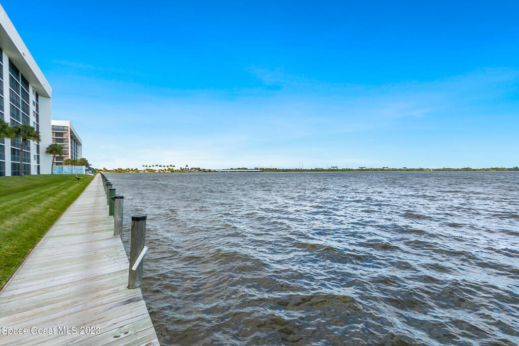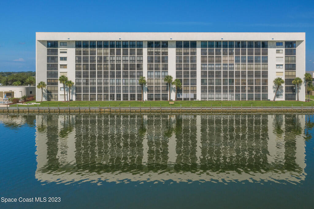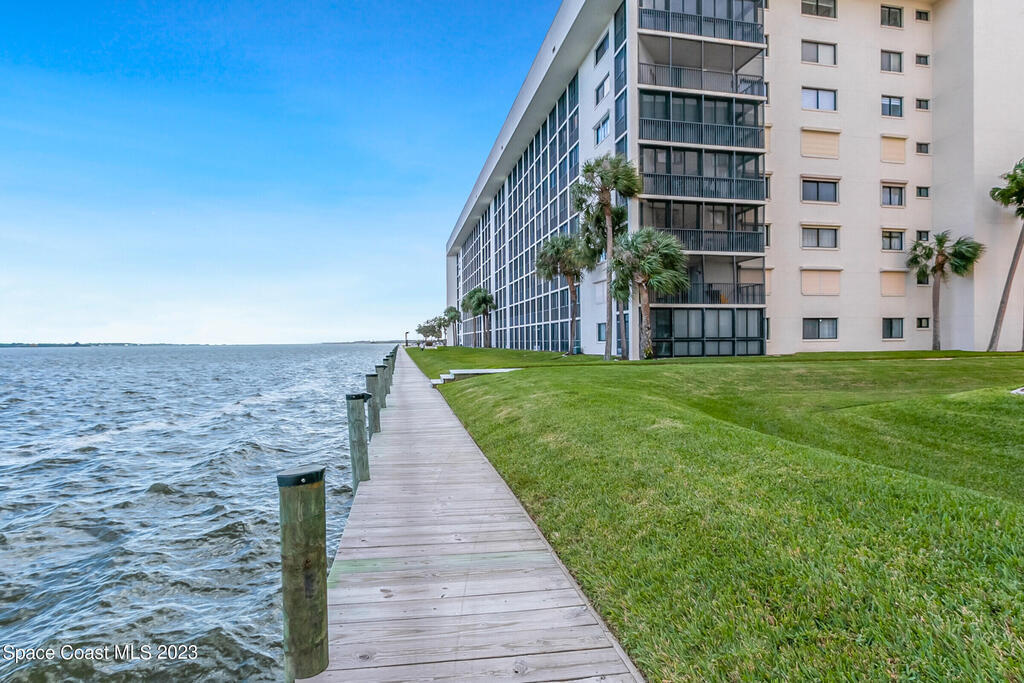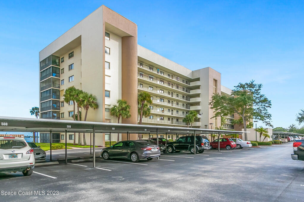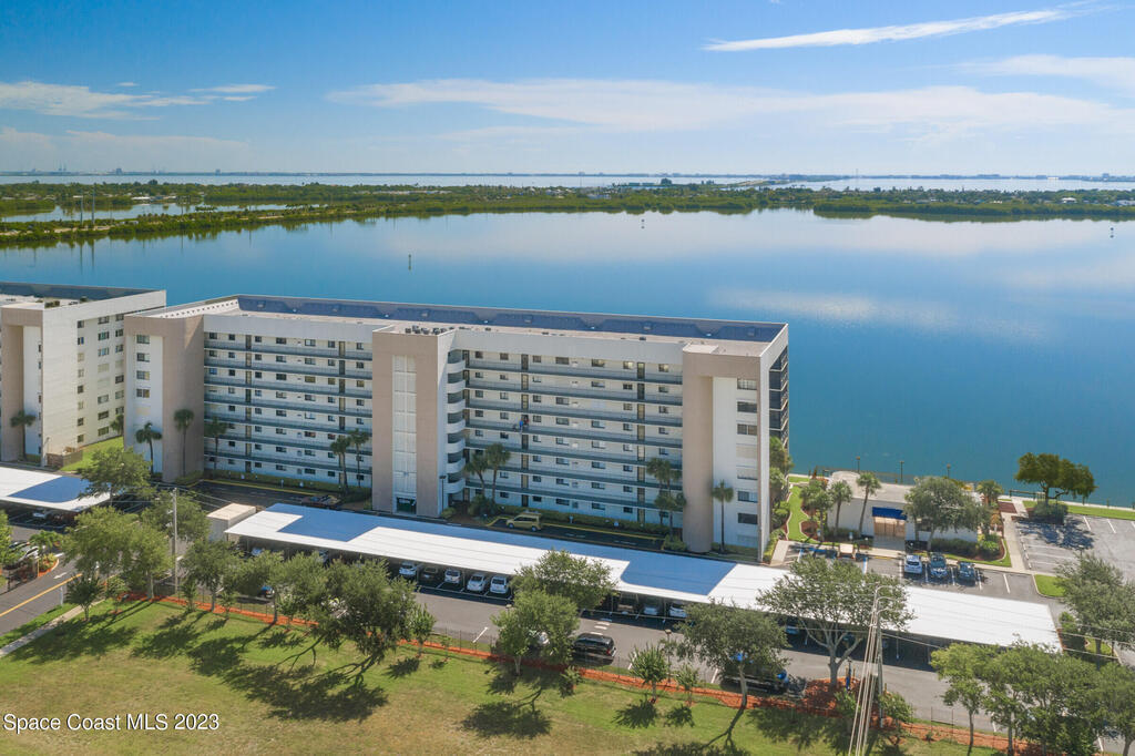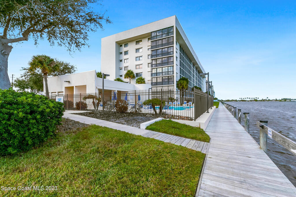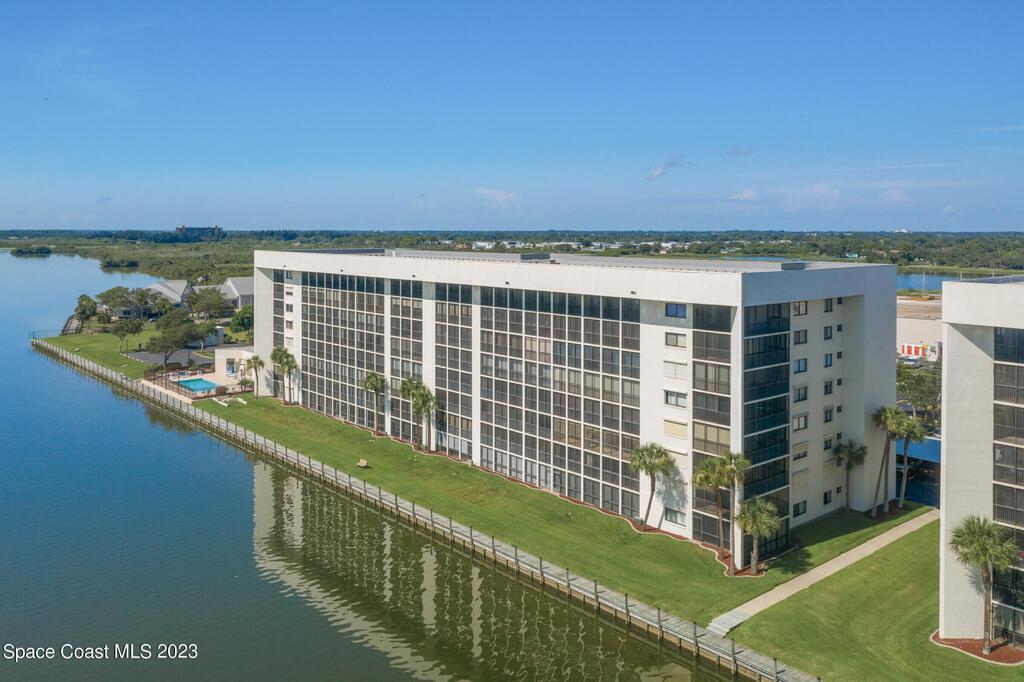 LOOK at that VIEW! Beautiful 1 bedroom, 1 bathroom waterfront condo with a specular location is a must see. Enjoy enclosed waterfront terraced while you enjoy sunrises, watch the wildlife and passing boats. Remodeled with NEW flooring, appliances, and more. Condo will convey partially furnished to include a sleeper sofa. Amazing Rocket Launch Views from the comfort of your residence. The Resort style gated community features two pools (one heated), hot tub, sauna, tennis/pickleball courts, clubhouse, boardwalk/fishing pier, car wash area, and more. HOA fee includes water, internet, cable, and pest control. One car carport and ample guest parking. Close to shops, grocery stores, restaurants, Orlando International Airport, and the wonderful Space Coast beaches. Come live the island life!
