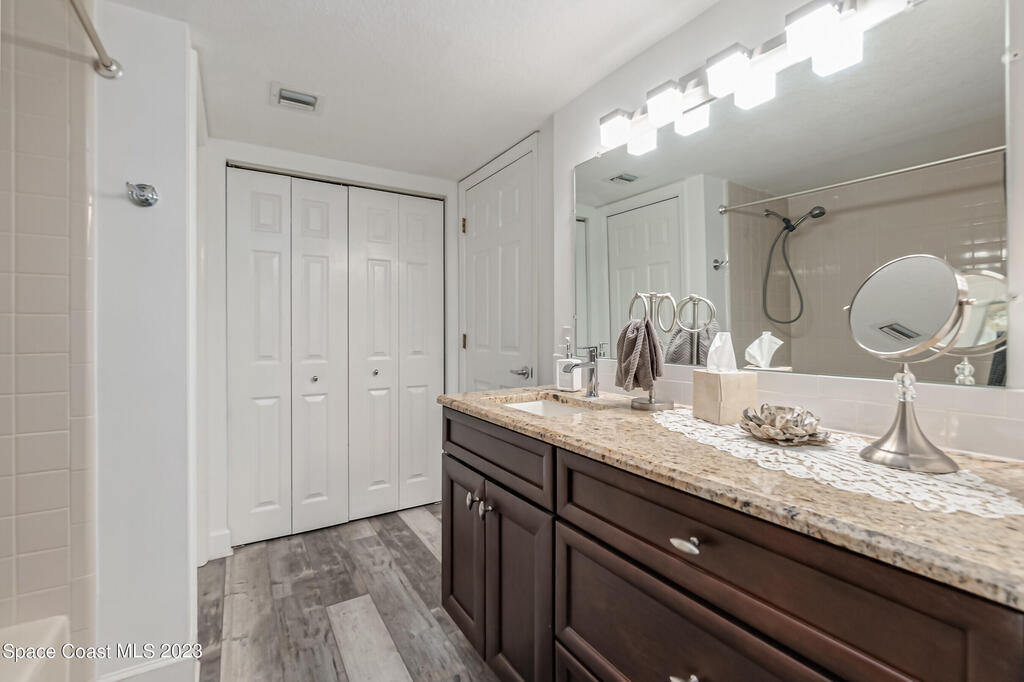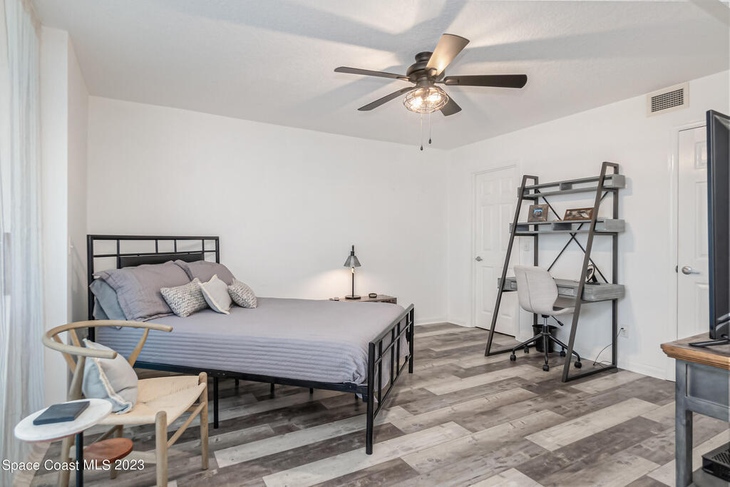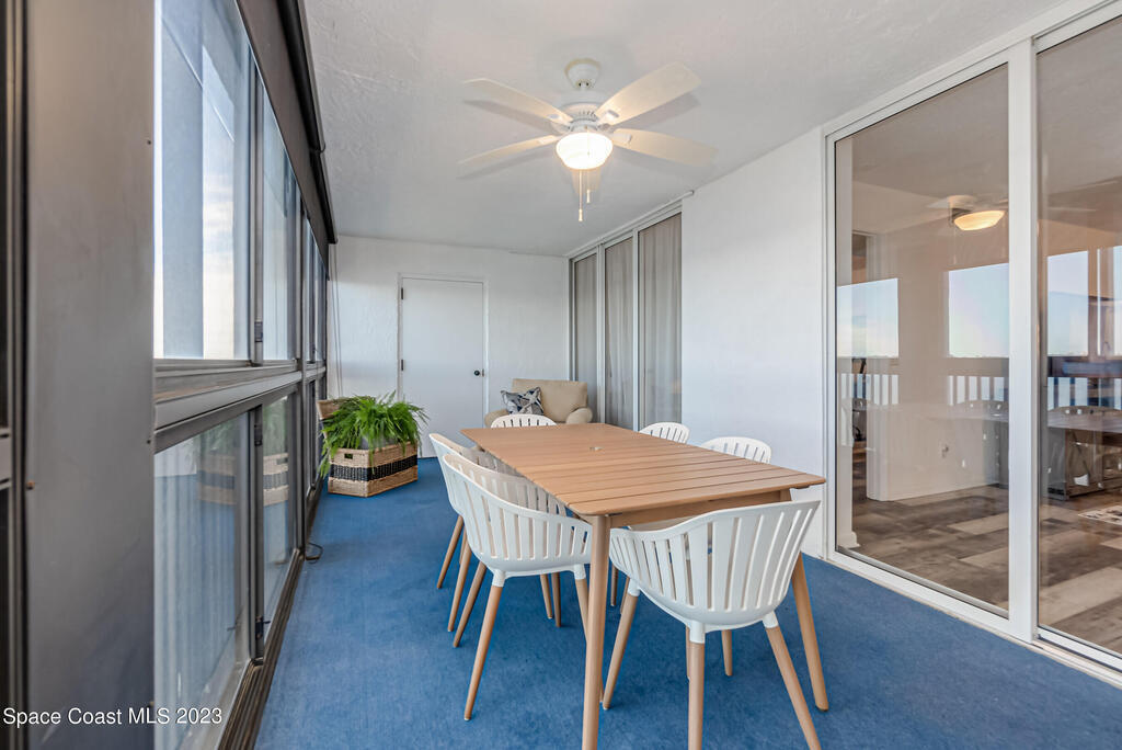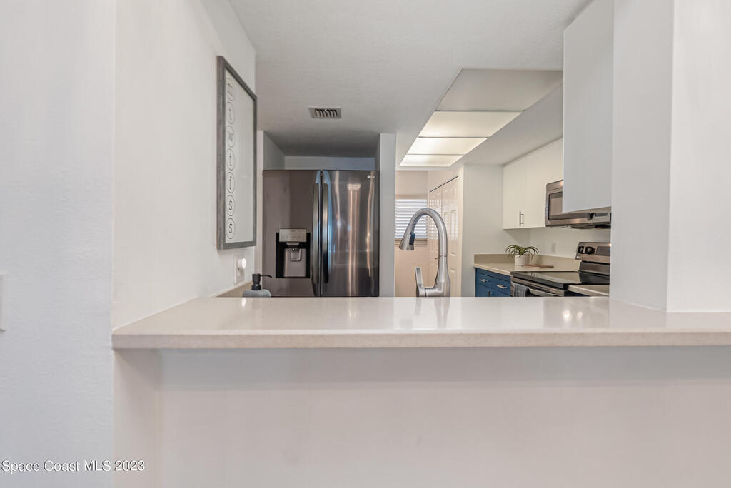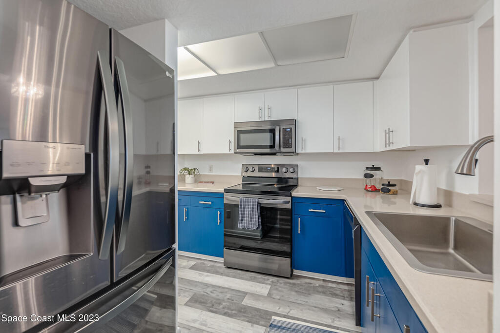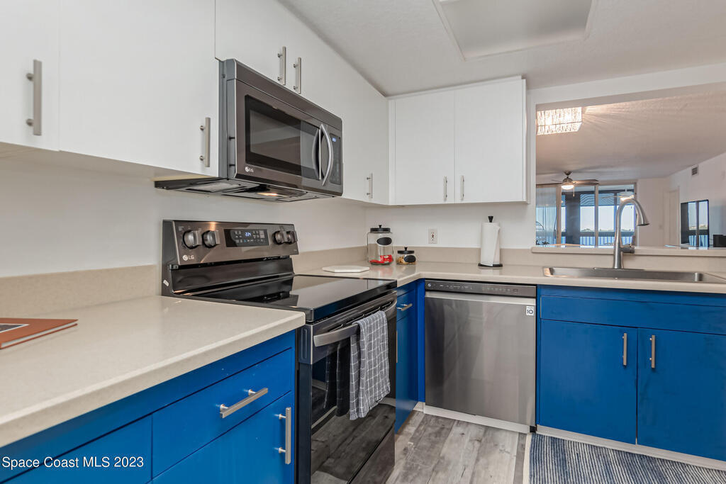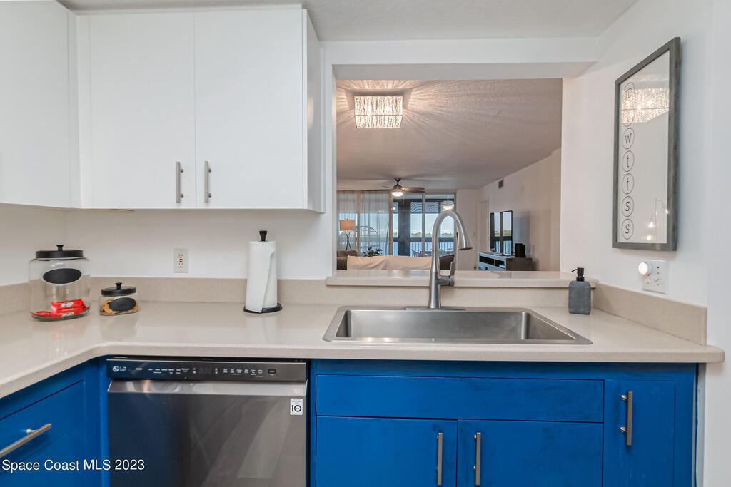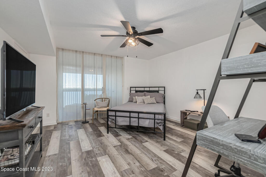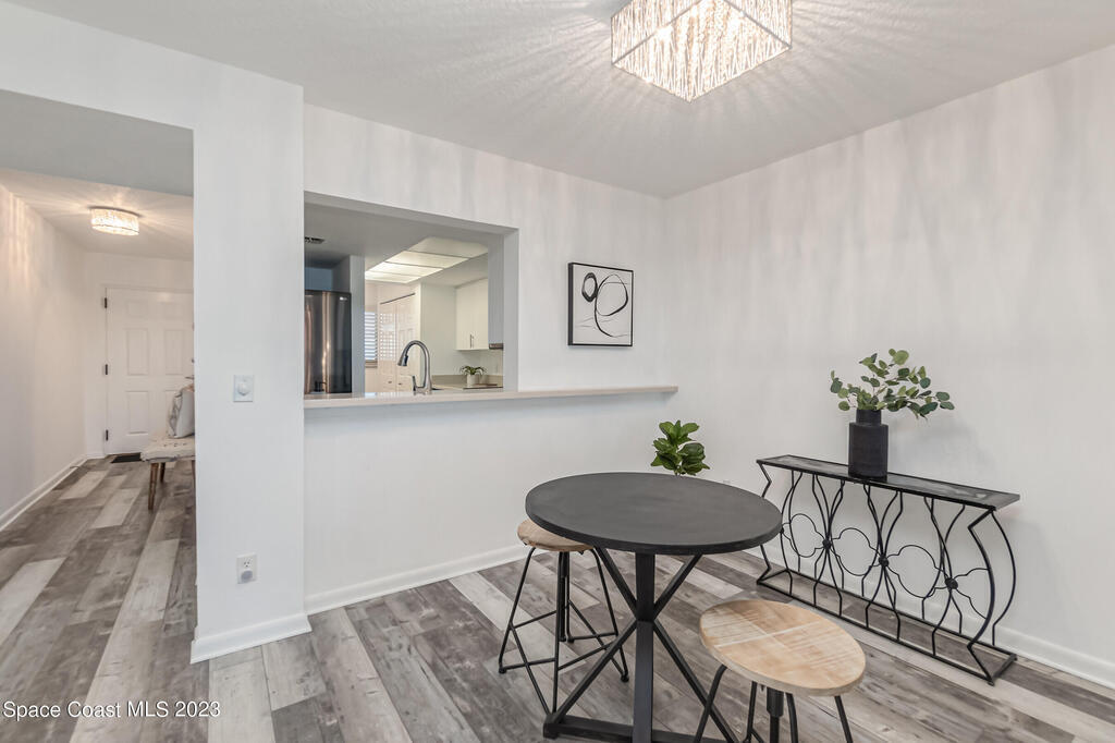 LOOK at that VIEW! Beautiful 1 bedroom, 1 bathroom waterfront condo with a specular location is a must see. Enjoy enclosed waterfront terraced while you enjoy sunrises, watch the wildlife and passing boats. Remodeled with NEW flooring, appliances, and more. Condo will convey partially furnished to include a sleeper sofa. Amazing Rocket Launch Views from the comfort of your residence. The Resort style gated community features two pools (one heated), hot tub, sauna, tennis/pickleball courts, clubhouse, boardwalk/fishing pier, car wash area, and more. HOA fee includes water, internet, cable, and pest control. One car carport and ample guest parking. Close to shops, grocery stores, restaurants, Orlando International Airport, and the wonderful Space Coast beaches. Come live the island life!