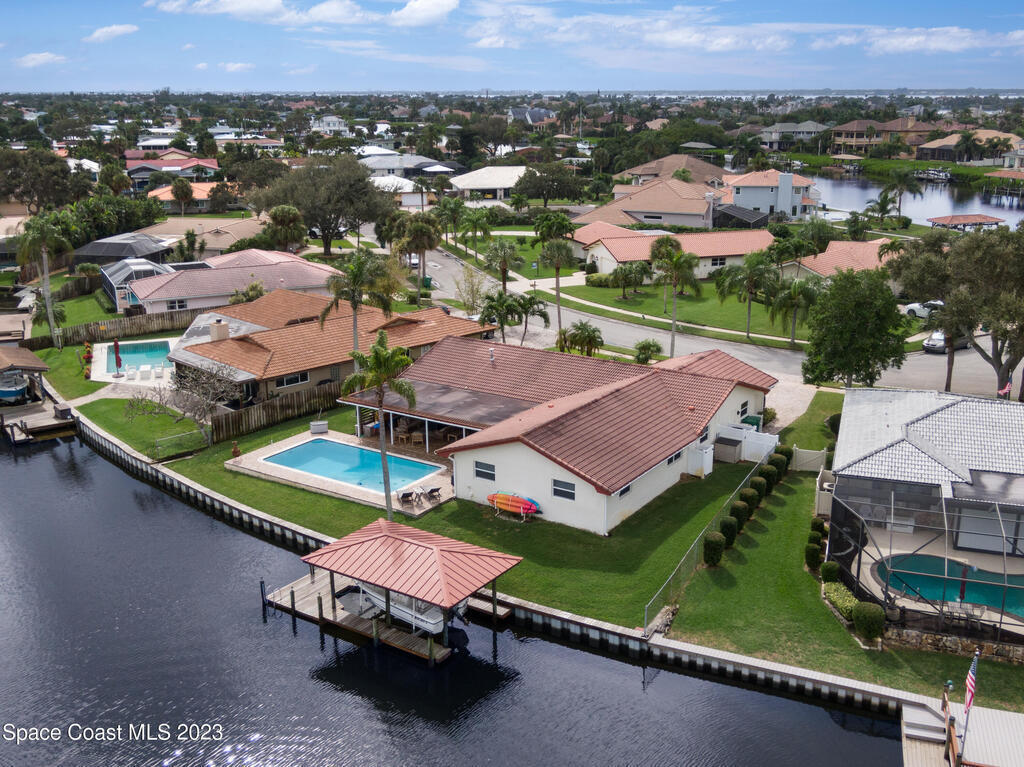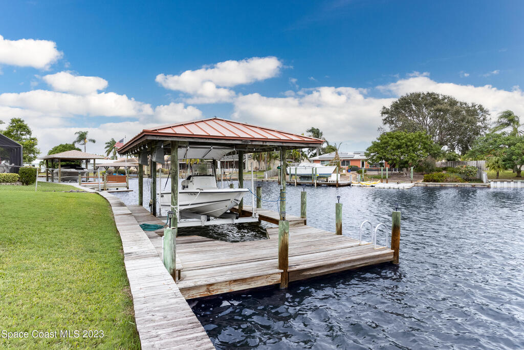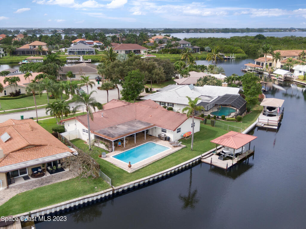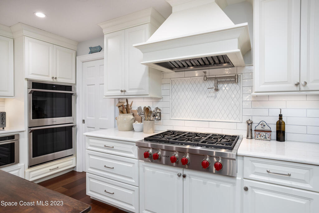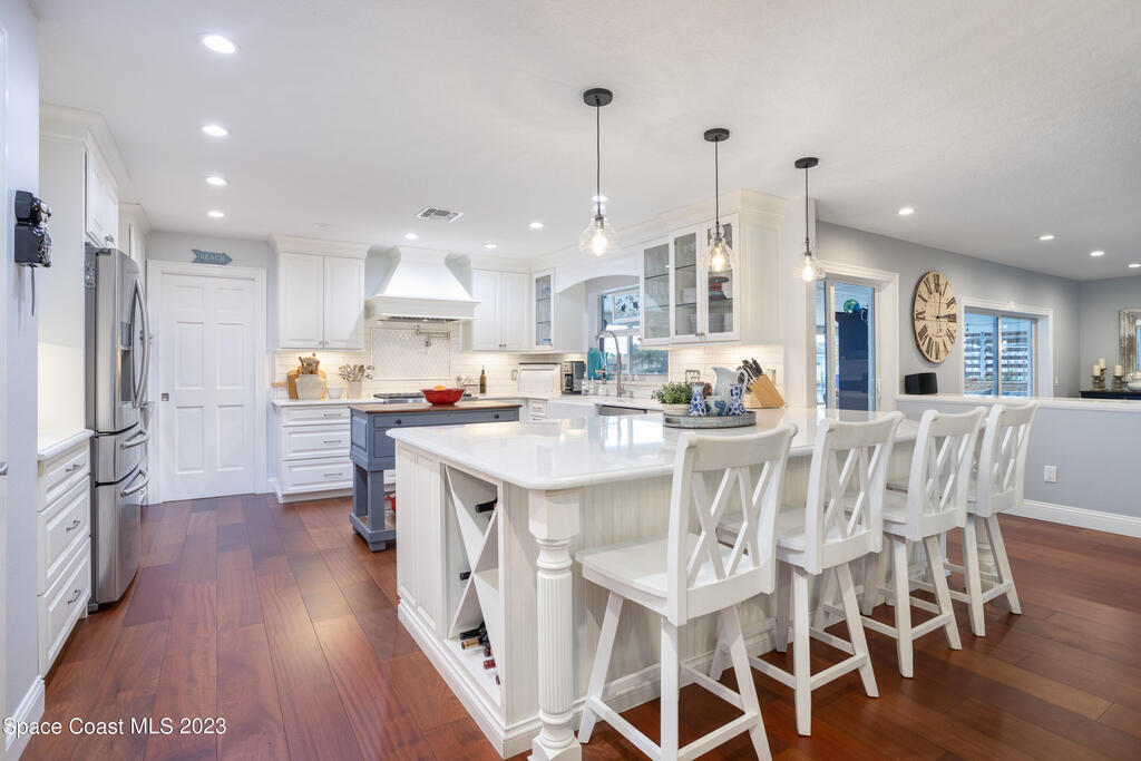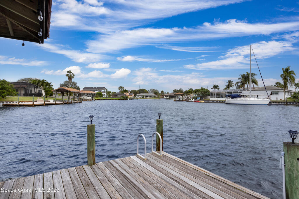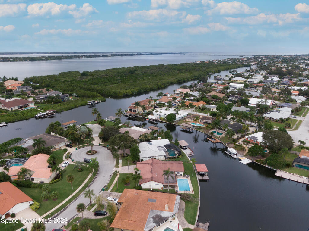 Fabulous canal front home situated on a peaceful cul-de-sac, offering seamless access to the grand canal and the Indian River. Step inside to discover a beautifully, completely renovated interior. The kitchen is a culinary haven, boasting a gas Wolf cooktop, a convenient pot filler, and a large breakfast bar. Custom wood cabinets and quartz counters complete the picture of culinary perfection. A walk-in pantry with electric outlets adds convenience to your daily routine. The master bath is a true sanctuary, featuring a bubbling free-standing bathtub, spacious shower, double vanities with quartz tops and marble flooring. Rich wood floors in living area and bedrooms add a timeless elegance and warmth.