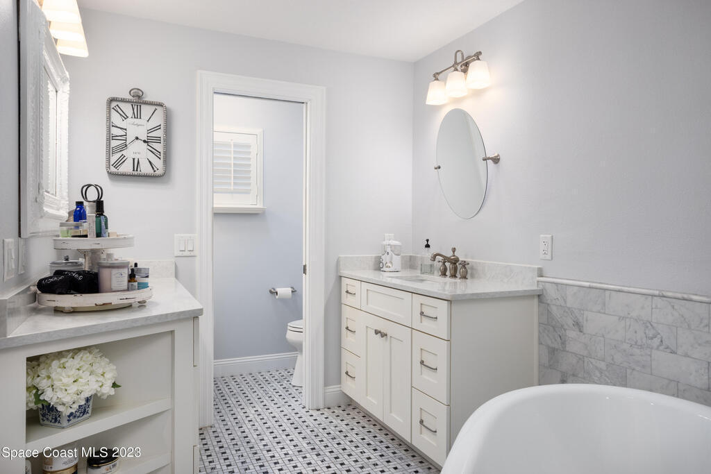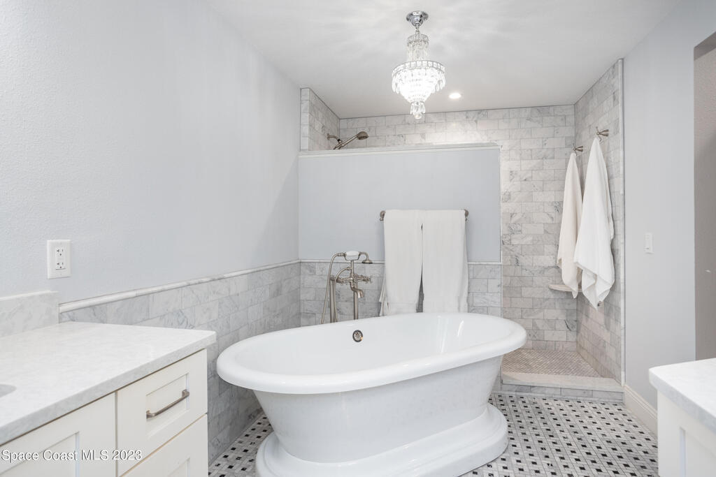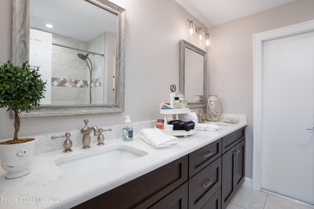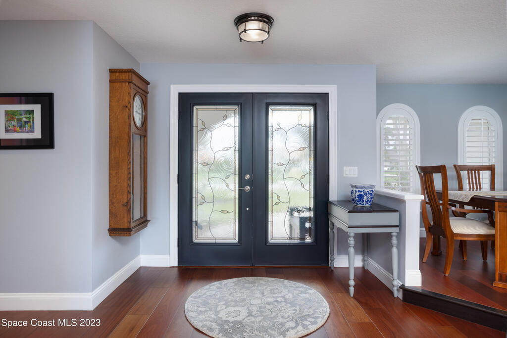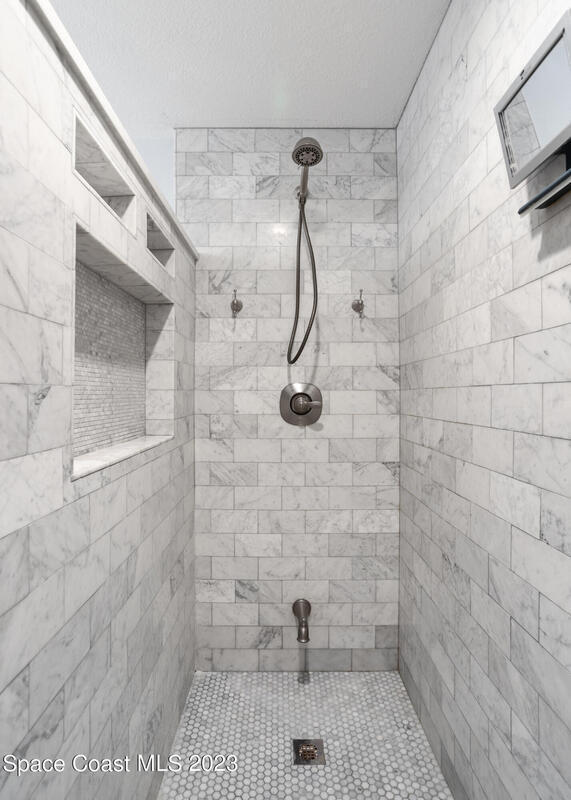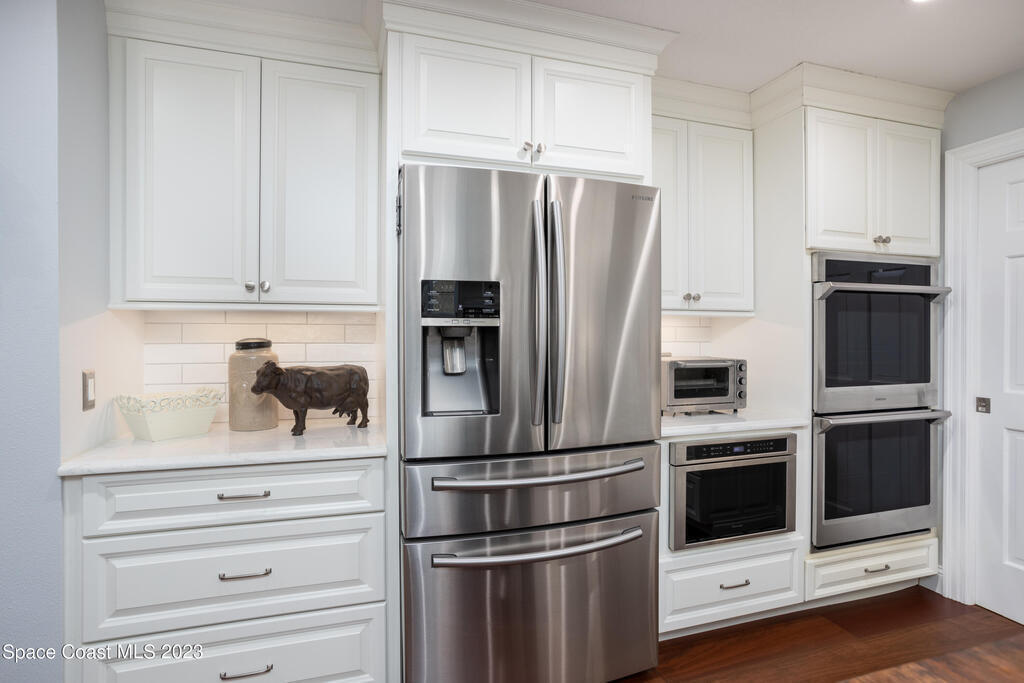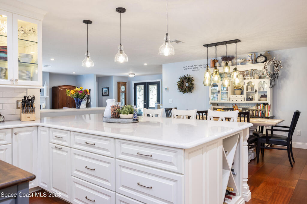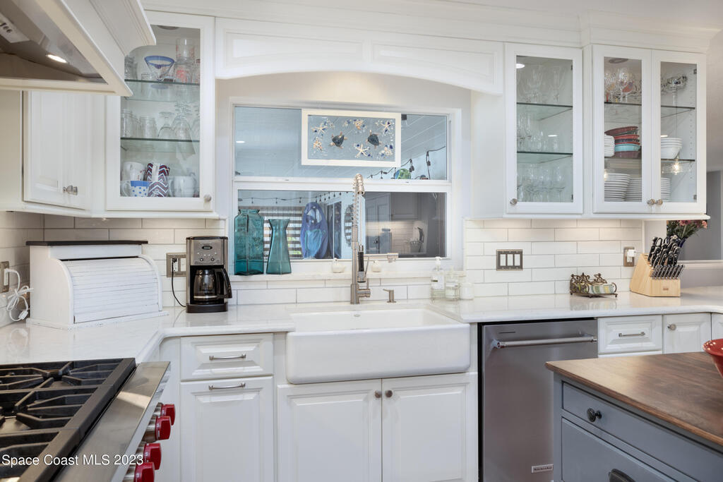 Fabulous canal front home situated on a peaceful cul-de-sac, offering seamless access to the grand canal and the Indian River. Step inside to discover a beautifully, completely renovated interior. The kitchen is a culinary haven, boasting a gas Wolf cooktop, a convenient pot filler, and a large breakfast bar. Custom wood cabinets and quartz counters complete the picture of culinary perfection. A walk-in pantry with electric outlets adds convenience to your daily routine. The master bath is a true sanctuary, featuring a bubbling free-standing bathtub, spacious shower, double vanities with quartz tops and marble flooring. Rich wood floors in living area and bedrooms add a timeless elegance and warmth.