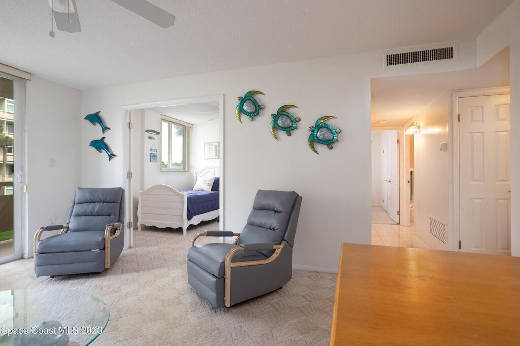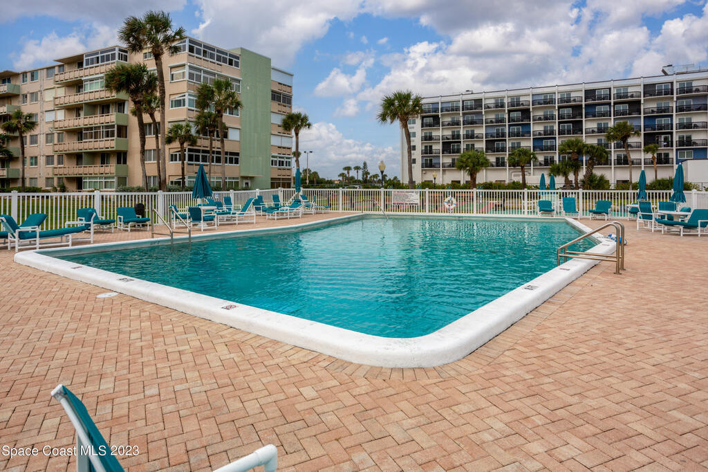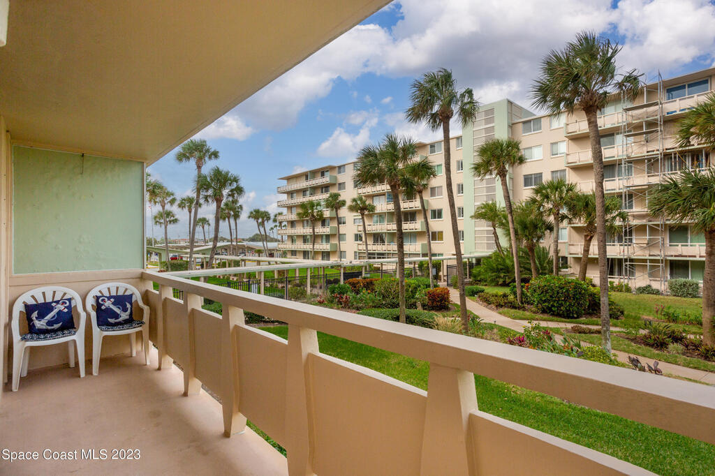 Welcome to Twin Towers! This mid century modern vibe oceanfront complex has everything; private beach access, heated pool, pickle ball, shuffle board, and clubhouse! This roomy 2 bedroom 1.5 bath unit is nice and bright and comes fully furnished so just bring your toothbrush. Unit overlooks the lush tropical gardens and has a peek a boo view of the ocean from the balcony. Centrally located in Cocoa Beach, close to the grocery store, restaurants, library, post office and lively Downtown Cocoa Beach. Come view today and get your slice of paradise!