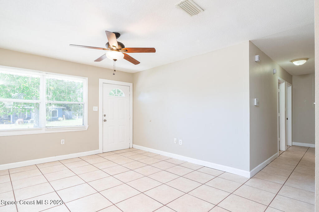 This charming home located near Interstate 95, close to Orlando, offers a comfortable and convenient living experience. Single Home 3 bedrooms 2 baths home with an oversized yard. 1 Carport. ROOF INSTALLED IN 2018, MASTER ROOM BATHROOM FULLY FRAMED SHOWER, CHROME AQUATED GLASS INSTALLED OCTOBER 2023, FRESH PAINT, AND TILE AND NEW LAMINATE THOUGHOUT THE HOME FOR EASY CLEANING. Spacious living room with its spacious layout and extensive features, this property is perfect for families or individuals looking for a cozy place to call home, The dining room is shared with the family room, where natural light enters through the window, creating a warm and cozy atmosphere, and The kitchen is equipped with appliances, ample counter space and plenty of storage making it a chef's dream. Master suite