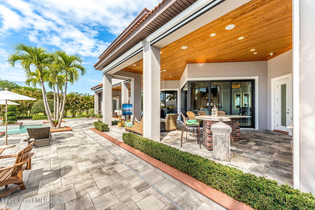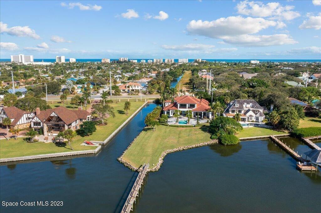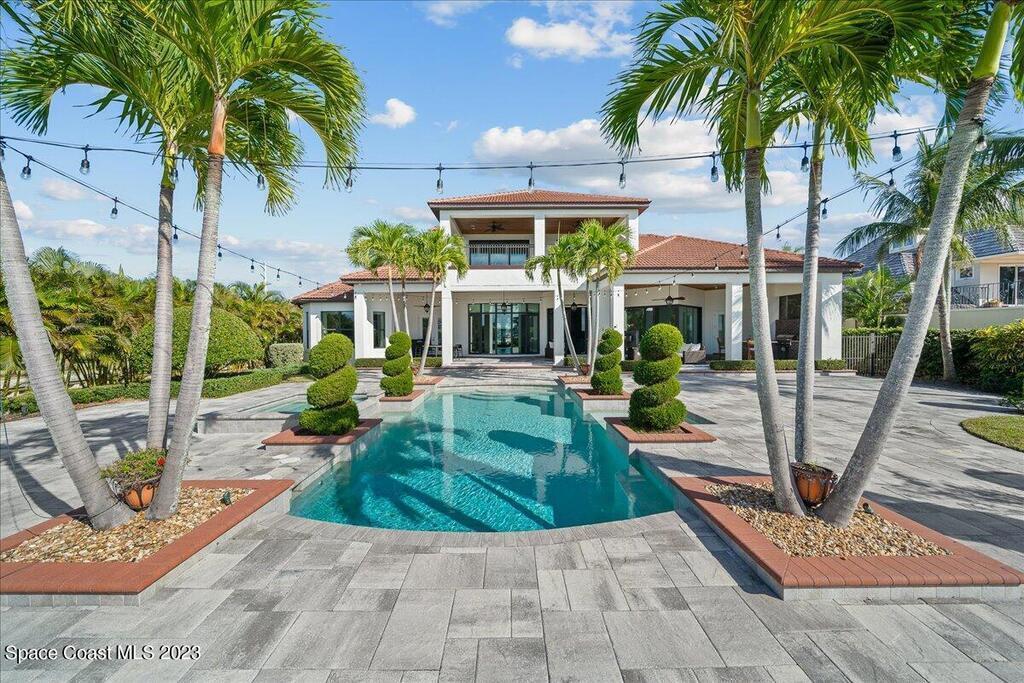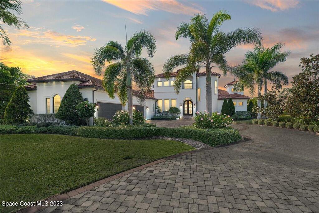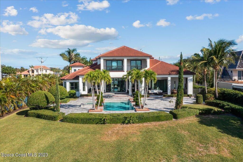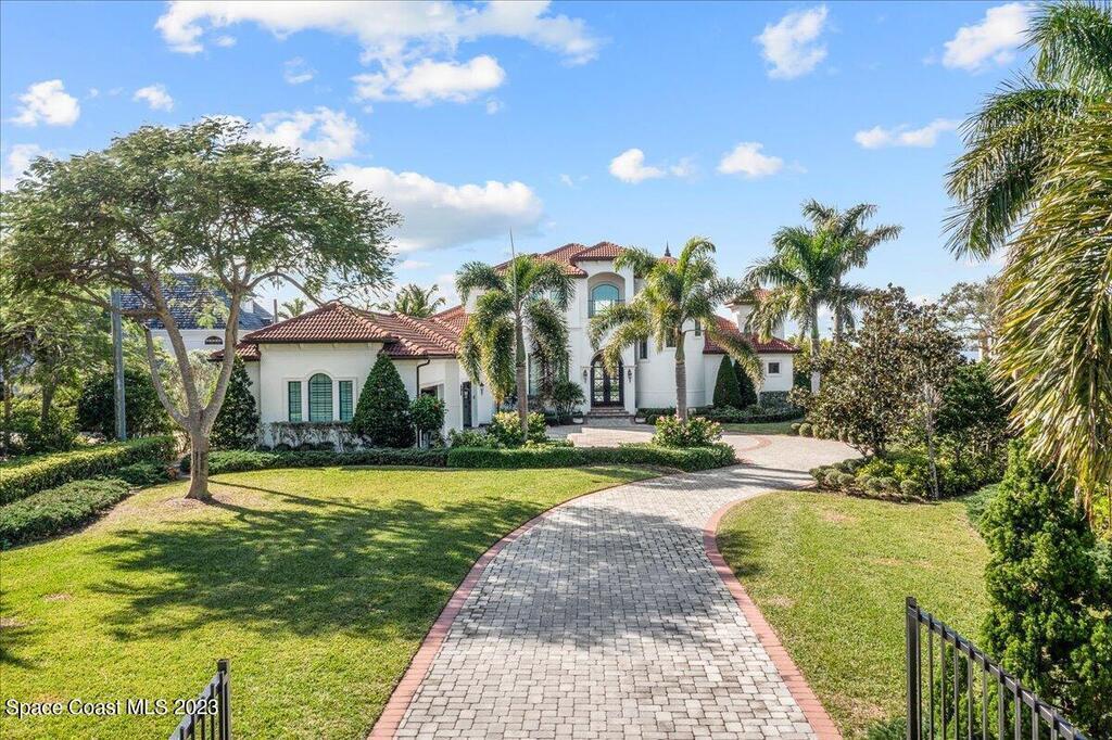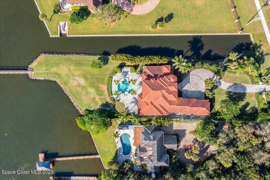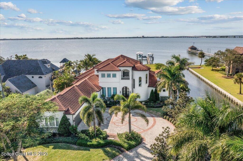 Welcome to this exquisite Space Coast Intracoastal estate. It was meticulously crafted by Brevard's top luxury builder in 2016 and stands as a testament to unparalleled craftsmanship and refined elegance. From the moment you step onto the beautifully manicured grounds, it's evident that every detail has been carefully considered. The estate boasts an impressive 500 feet of water frontage and ensures that every glance outwards unveils a mesmerizing panorama of sparkling waters and unforgettable views. Floor-to-ceiling glass drench the interiors in natural light, while providing a constant connection to the ever-changing tapestry of the outdoors. Built to withstand the forces of nature, the estate features impact glass and all the latest materials throughout, combining safety with