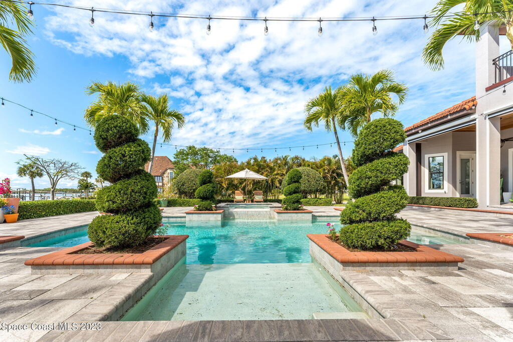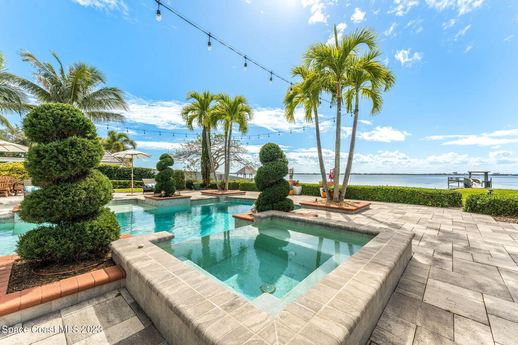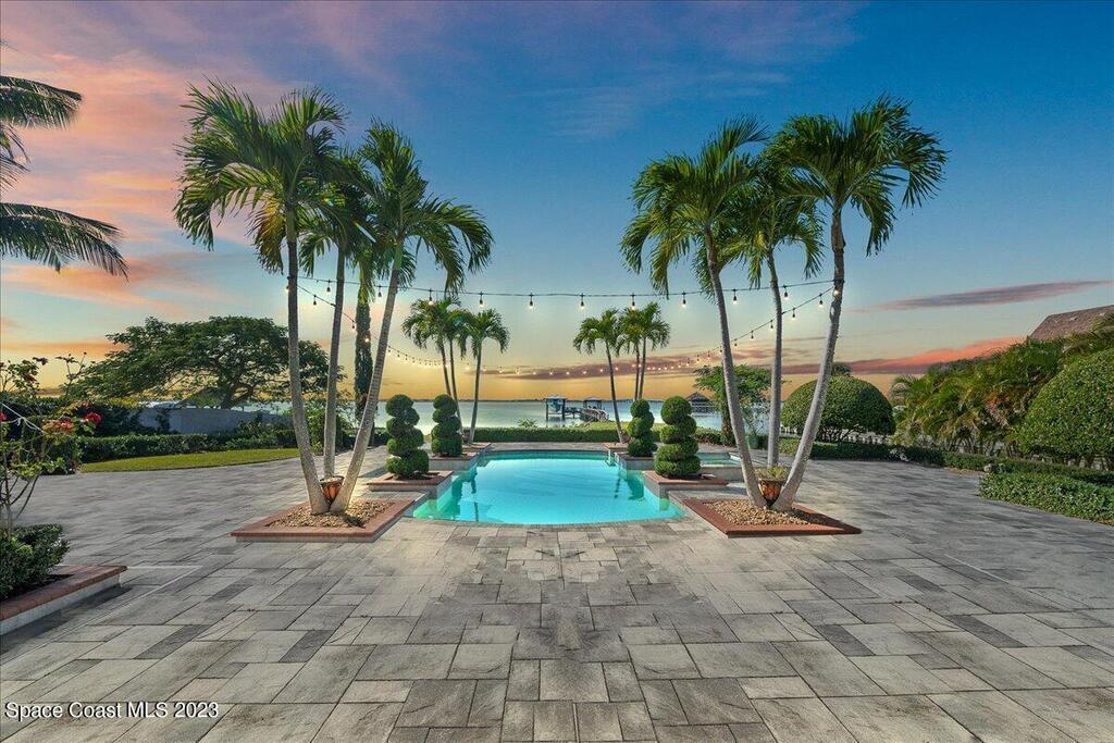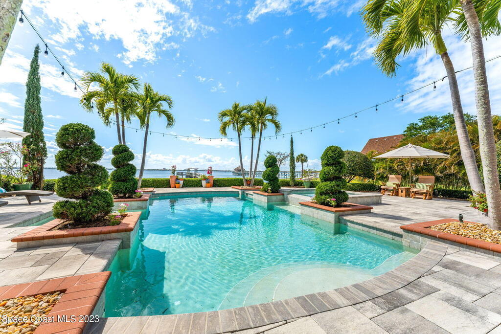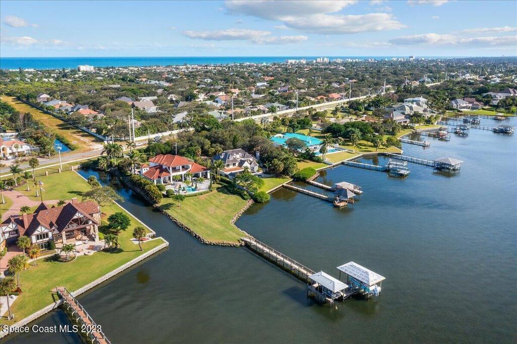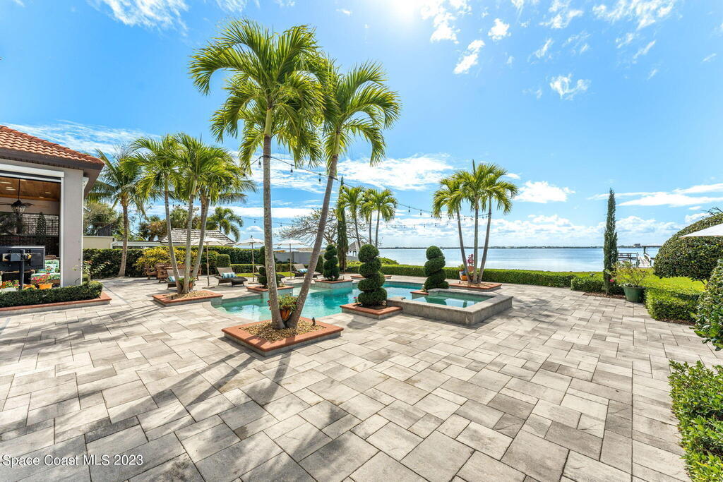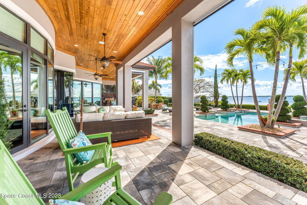 Welcome to this exquisite Space Coast Intracoastal estate. It was meticulously crafted by Brevard's top luxury builder in 2016 and stands as a testament to unparalleled craftsmanship and refined elegance. From the moment you step onto the beautifully manicured grounds, it's evident that every detail has been carefully considered. The estate boasts an impressive 500 feet of water frontage and ensures that every glance outwards unveils a mesmerizing panorama of sparkling waters and unforgettable views. Floor-to-ceiling glass drench the interiors in natural light, while providing a constant connection to the ever-changing tapestry of the outdoors. Built to withstand the forces of nature, the estate features impact glass and all the latest materials throughout, combining safety with