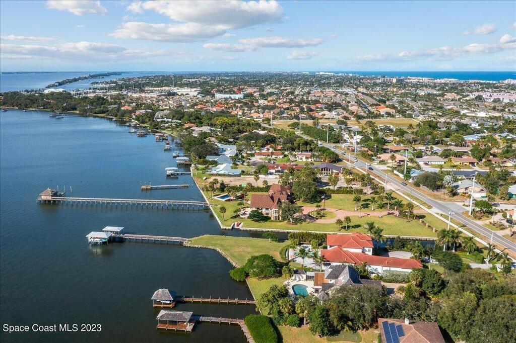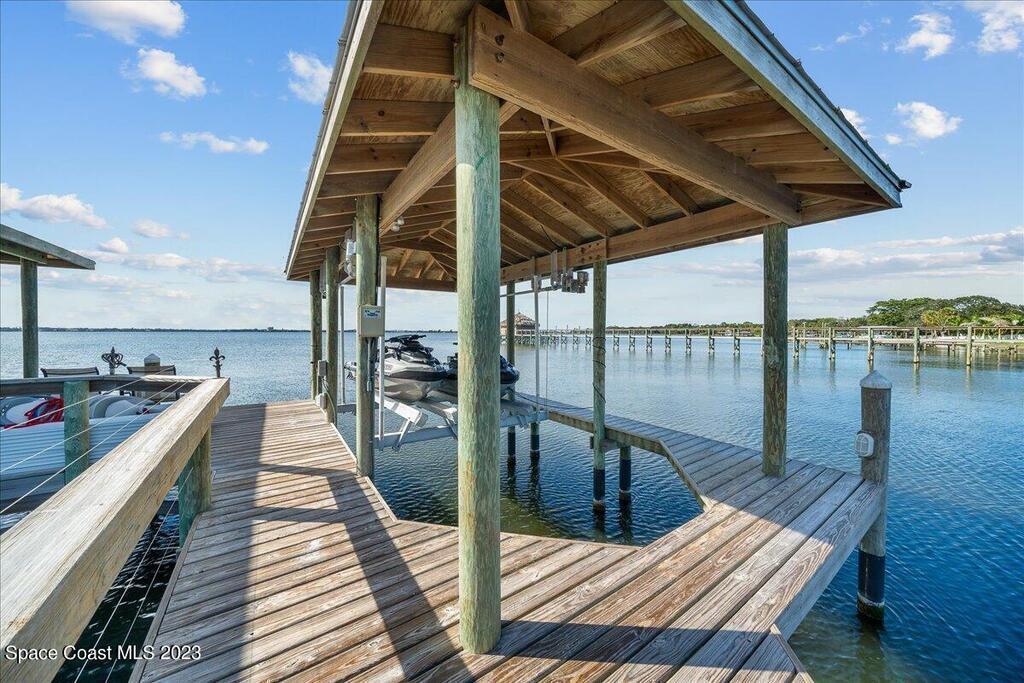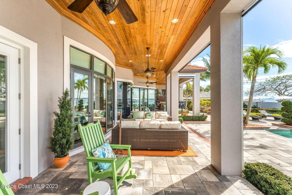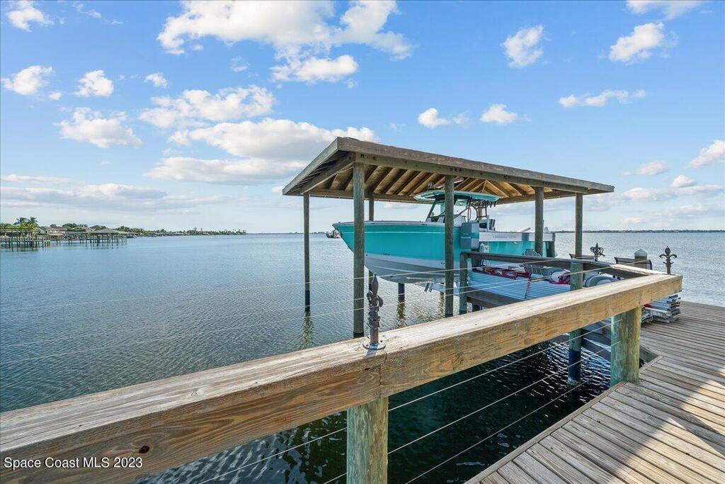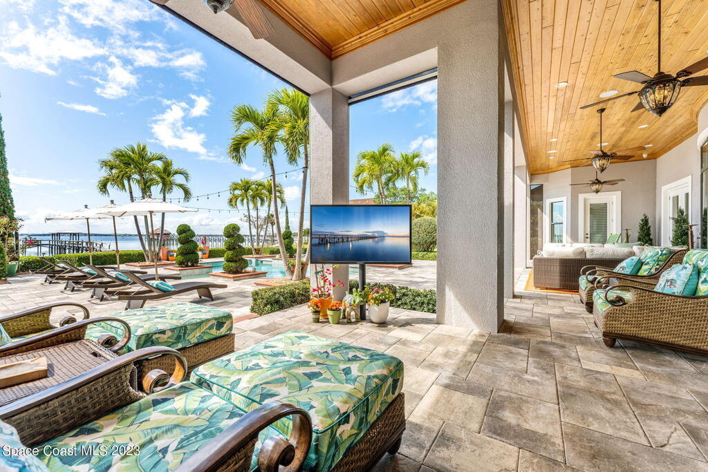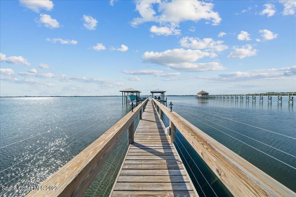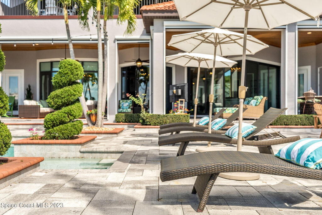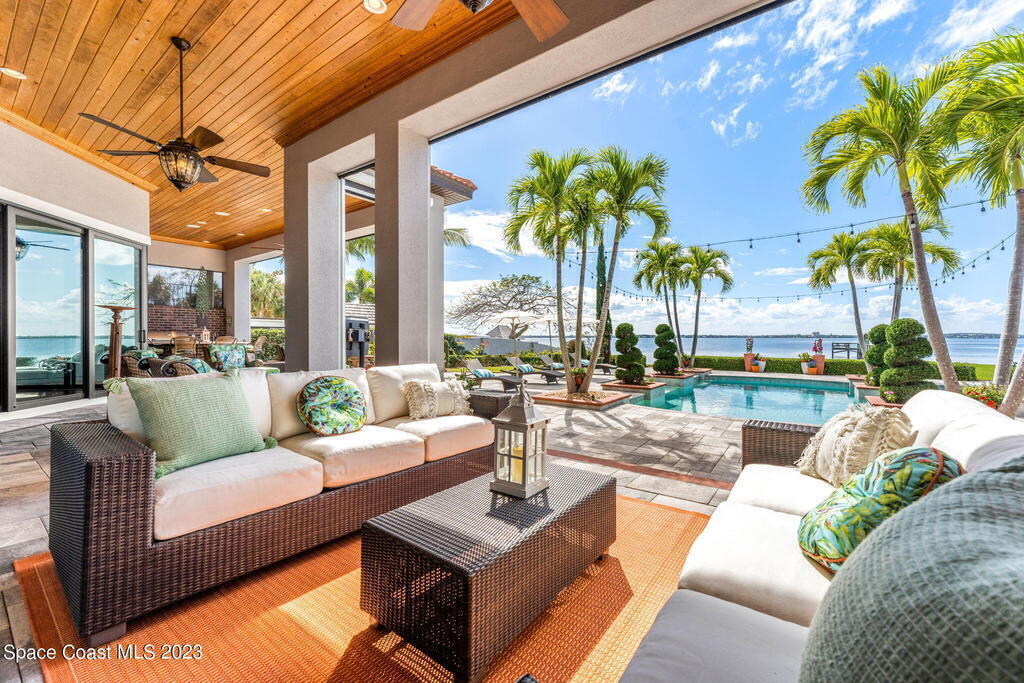 Welcome to this exquisite Space Coast Intracoastal estate. It was meticulously crafted by Brevard's top luxury builder in 2016 and stands as a testament to unparalleled craftsmanship and refined elegance. From the moment you step onto the beautifully manicured grounds, it's evident that every detail has been carefully considered. The estate boasts an impressive 500 feet of water frontage and ensures that every glance outwards unveils a mesmerizing panorama of sparkling waters and unforgettable views. Floor-to-ceiling glass drench the interiors in natural light, while providing a constant connection to the ever-changing tapestry of the outdoors. Built to withstand the forces of nature, the estate features impact glass and all the latest materials throughout, combining safety with