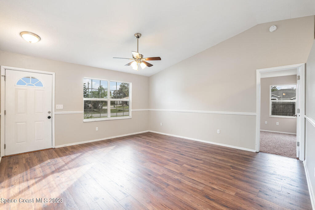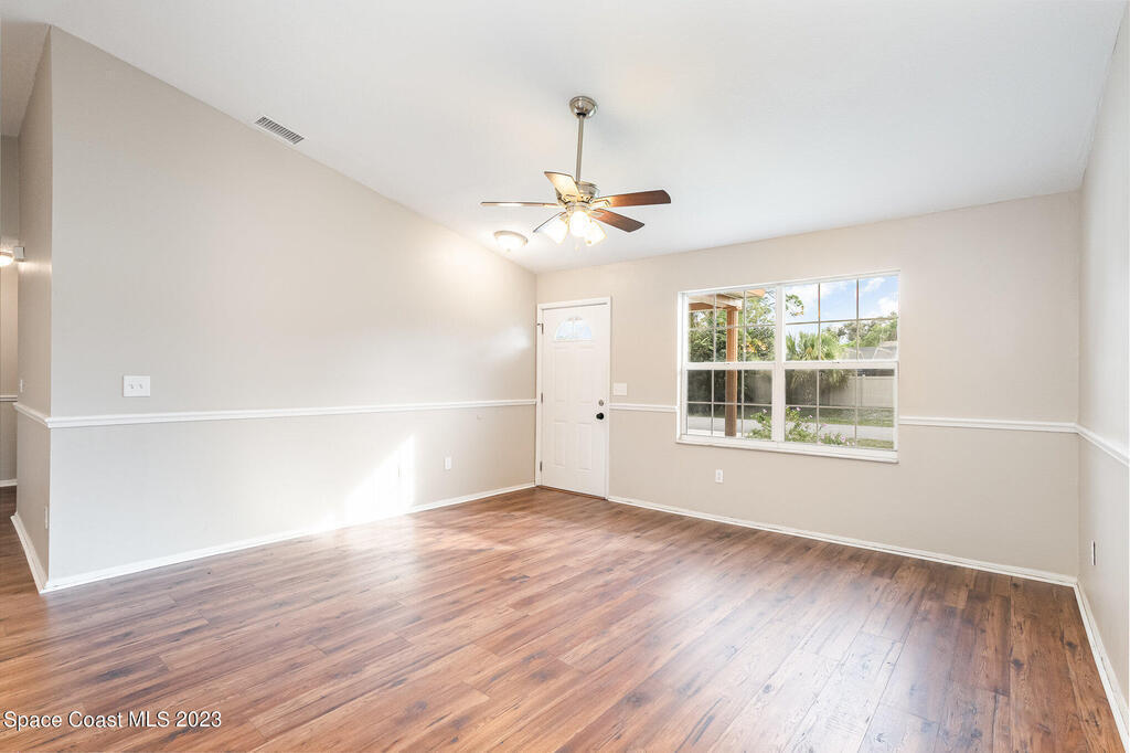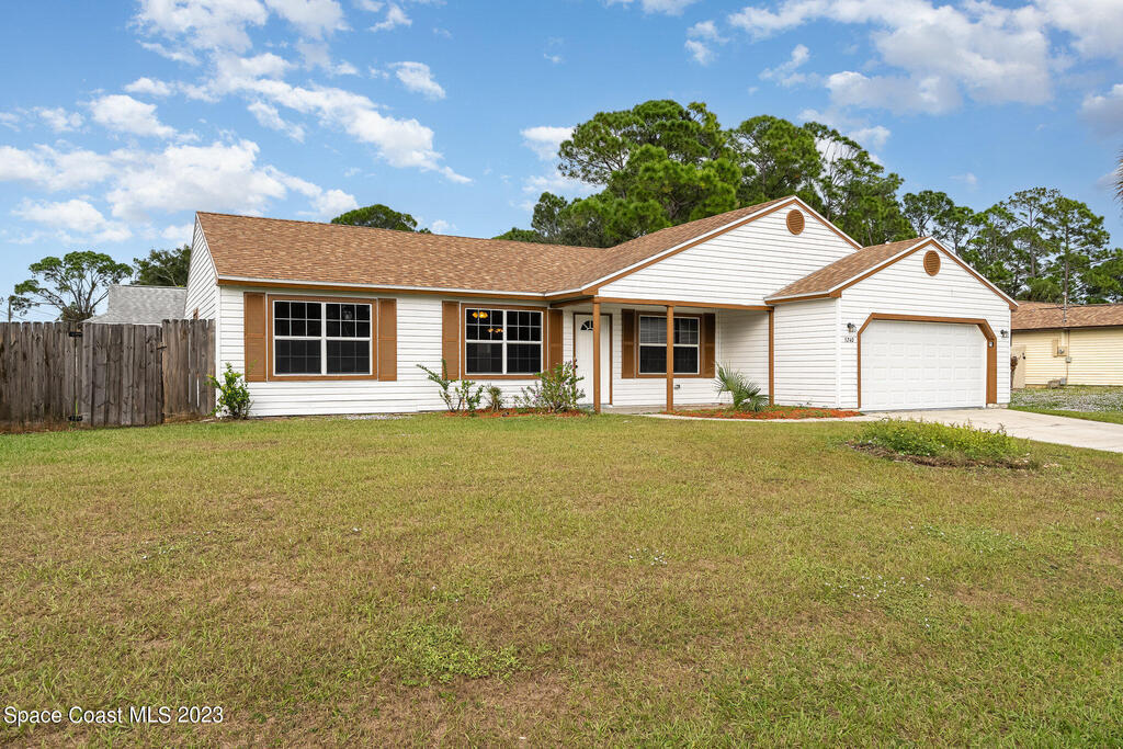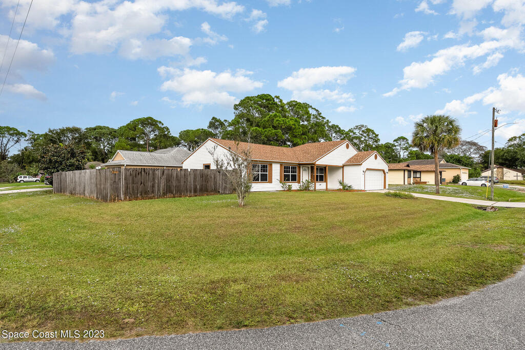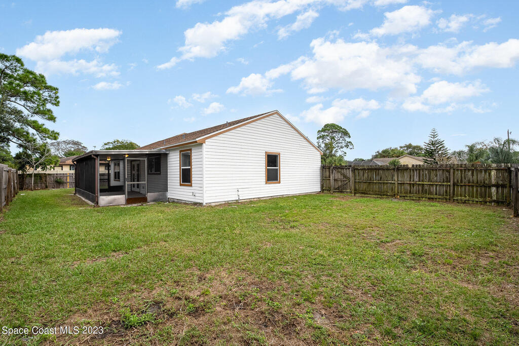 Back on market! Port St. John home features an open floorplan with vaulted ceilings in the main living areas, making the home feel even more spacious than the square footage would suggest. Freshly painted throughout in tasteful neutral tones, with brand new vinyl plank flooring and carpet. Large windows in every room make this home light, bright and cheerful.The sizeable screened lanai expands the living space into the outdoors. Situated on a desirable corner lot with a fully fenced back yard, offering privacy and a peaceful retreat.Excellent location, close to area shopping, dining, schools, I-95, US 1, and the NASA causeway bridge. All information recorded in the MLS is intended to be accurate but cannot be guaranteed, buyer advised to verify.