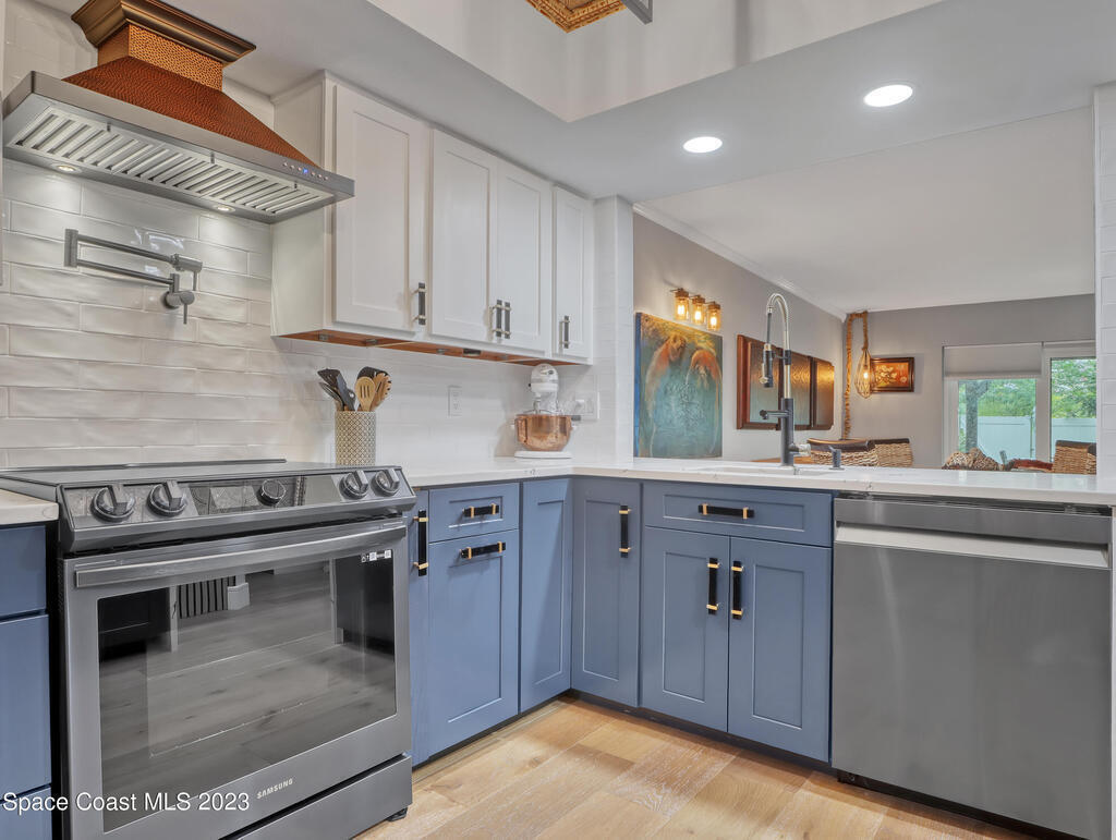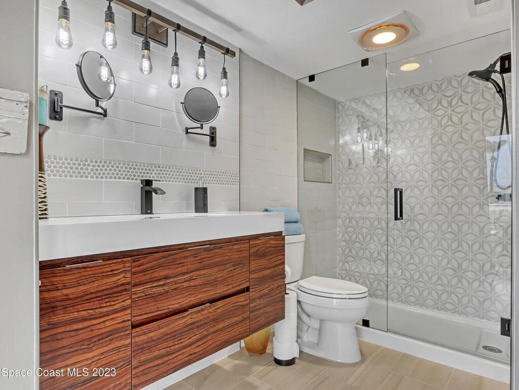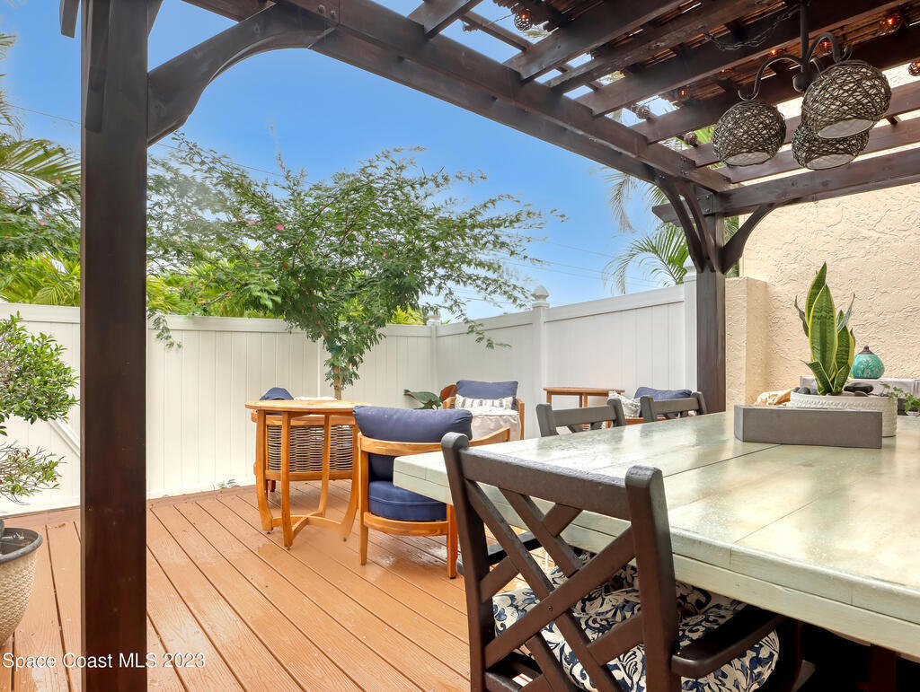 Stunning completely remodeled 2 bedroom, 2 1/2 bathroom townhouse located in Satellite Beach, Florida! Elegant open kitchen with quarts counter tops and all new smart appliances. Open living and dining room with oak wood floors throughout. Master bedroom includes a cozy electric fireplace and a bright bathroom with walk in shower. This townhouse has a magnificent patio off of the master bedroom and courtyard off the living room to enjoy the beautiful Florida weather year round. The courtyard includes a PVC deck and a pergola to add a little shade to your backyard. All windows and sliders have been replaced within the last year, HVAC is less that 3 years old and new tankless water heater.