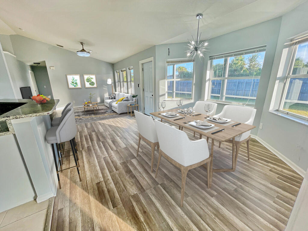 Beautiful updated home with a bright spacious open floor plan with vaulted ceilings. This home has three traditional bedrooms and a 4th bedroom that can be used as a den. Brand new roof with AC and hot water heater updated with in last 5 years. Brand new matching granite counter tops. Brand New designer picked lighting and faucets, updated laminate flooring, Updated kitchen and bathrooms. Newly painted interior. Large inside utility. Hurricane shutters. If you're looking for a huge fenced backyard with no rear neighbors, lots of privacy and a real Florida country feel, this is the one! Must see.