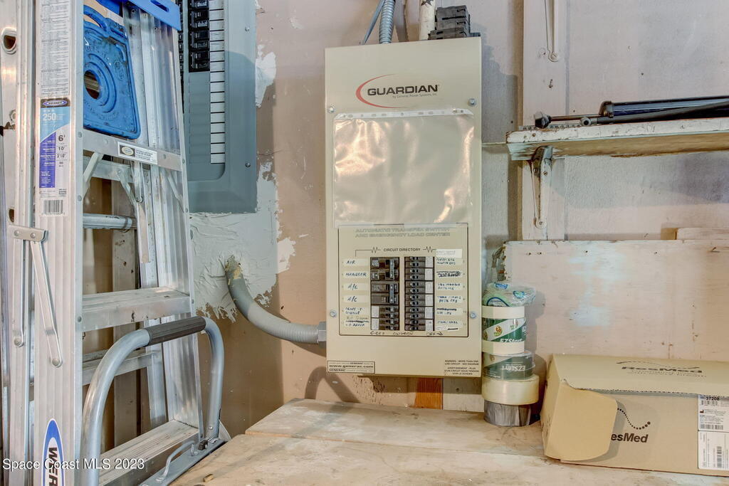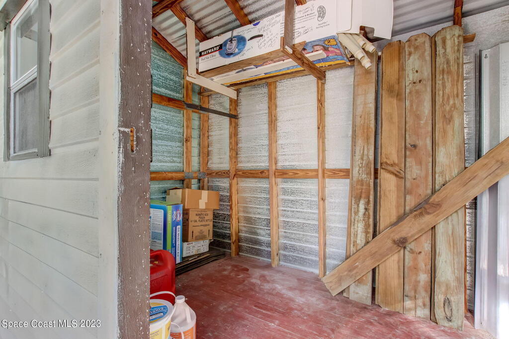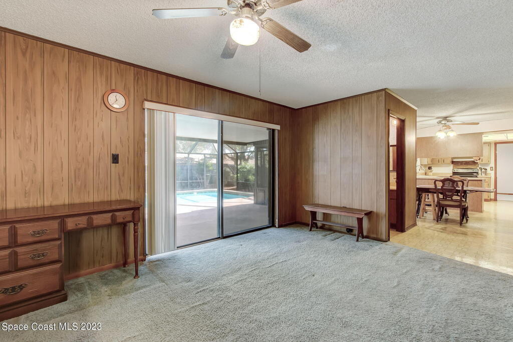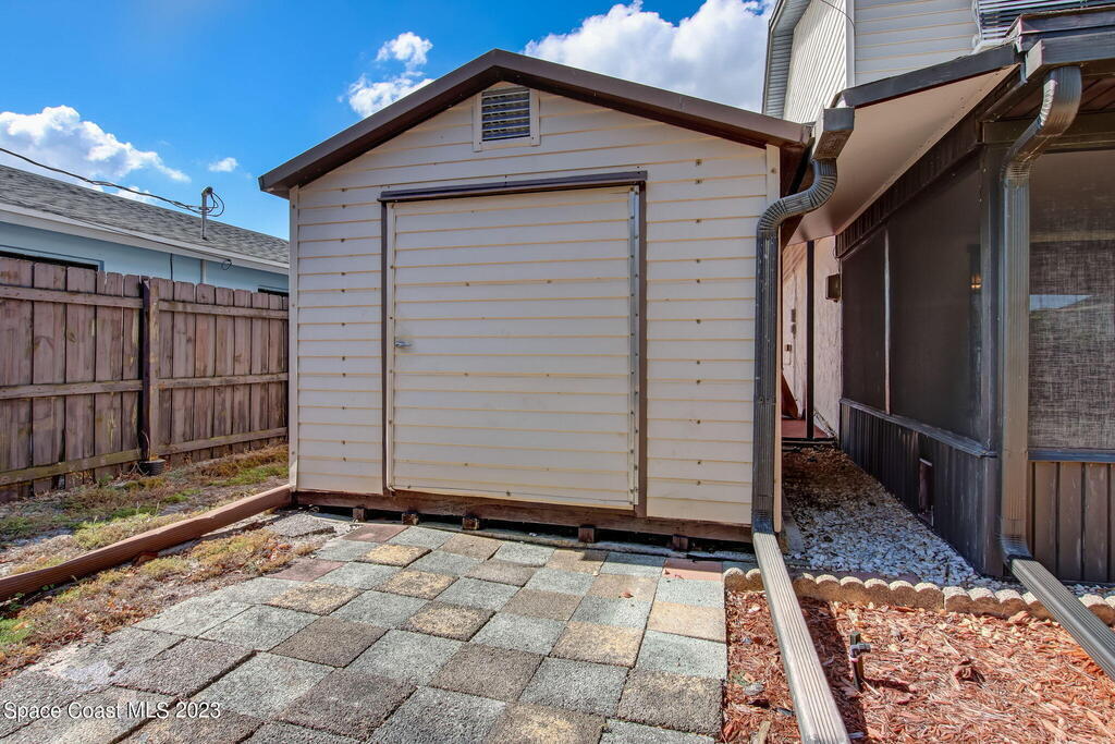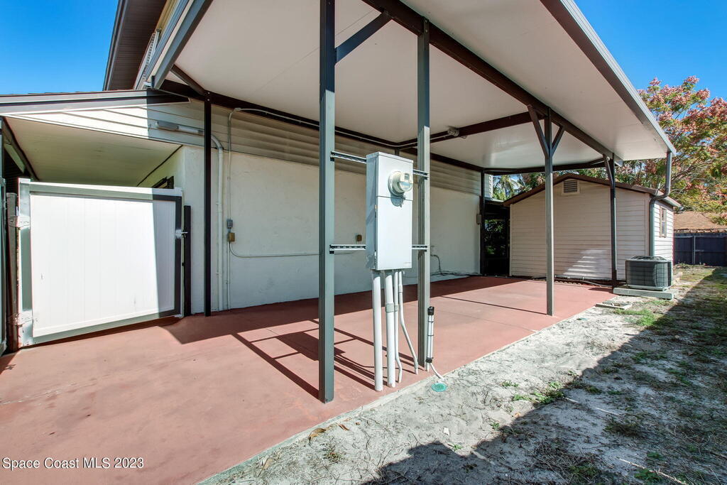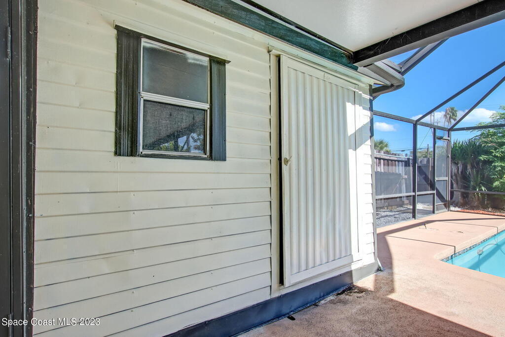 Welcome to the inviting charm of Surfside Estates in Merritt Island! This delightful 4-bedroom, 2.5-bathroom home on a corner lot boasts mature landscaping, fruit bearing trees, and a privacy fence, creating an alluring curb appeal. Beyond its aesthetic charm, the property offers a range of practical features, including a covered space for RV storage, a supplementary spot for a camper/trailer, metal utility shed with electric, second utility shed to store pool equipment, removeable hurricane shutters for doors and windows, and the convenience of natural gas. The home is well-prepared for emergencies with a backup generator that powers first floor AC and essential appliances and lighting. The interior floor plan impresses with spacious rooms, a traditional two-story layout,