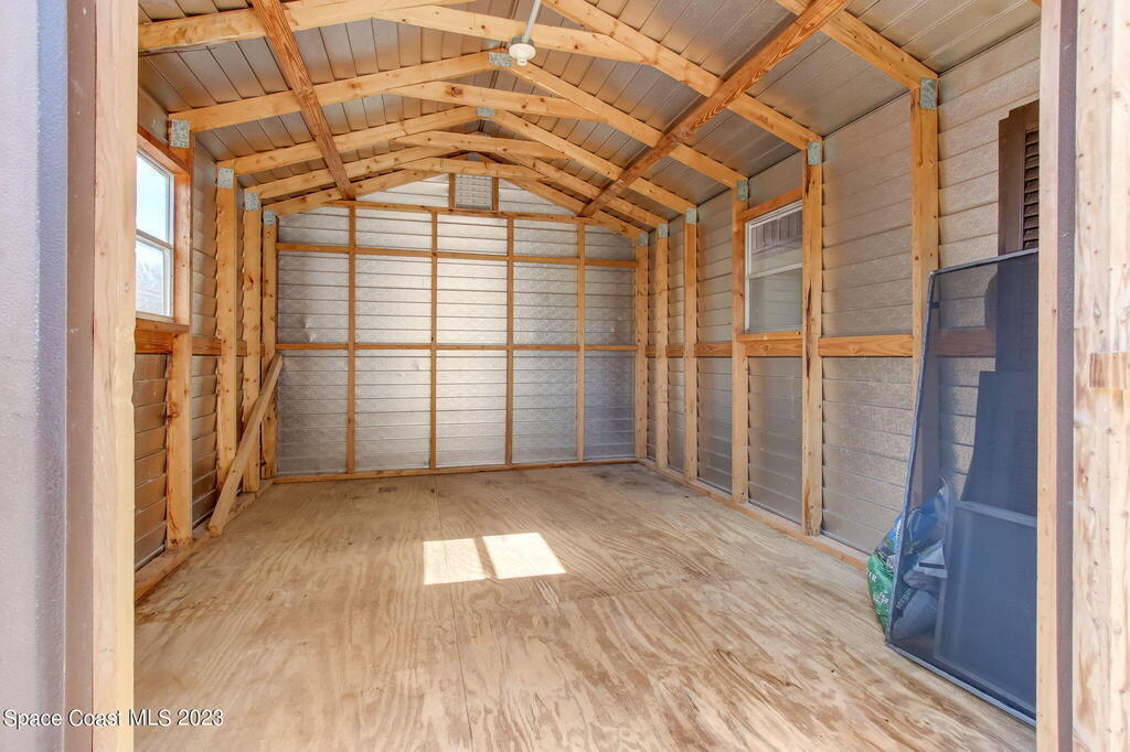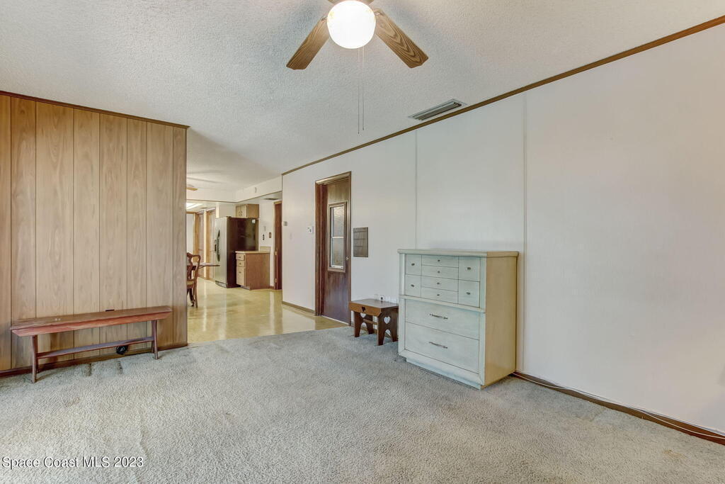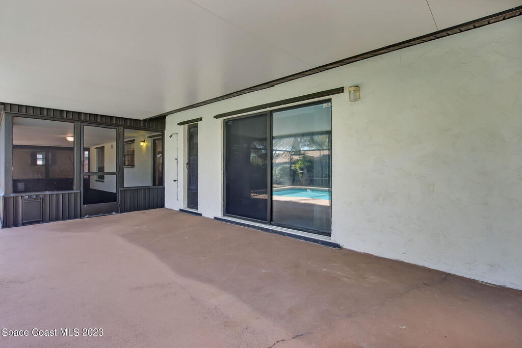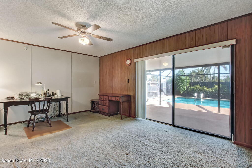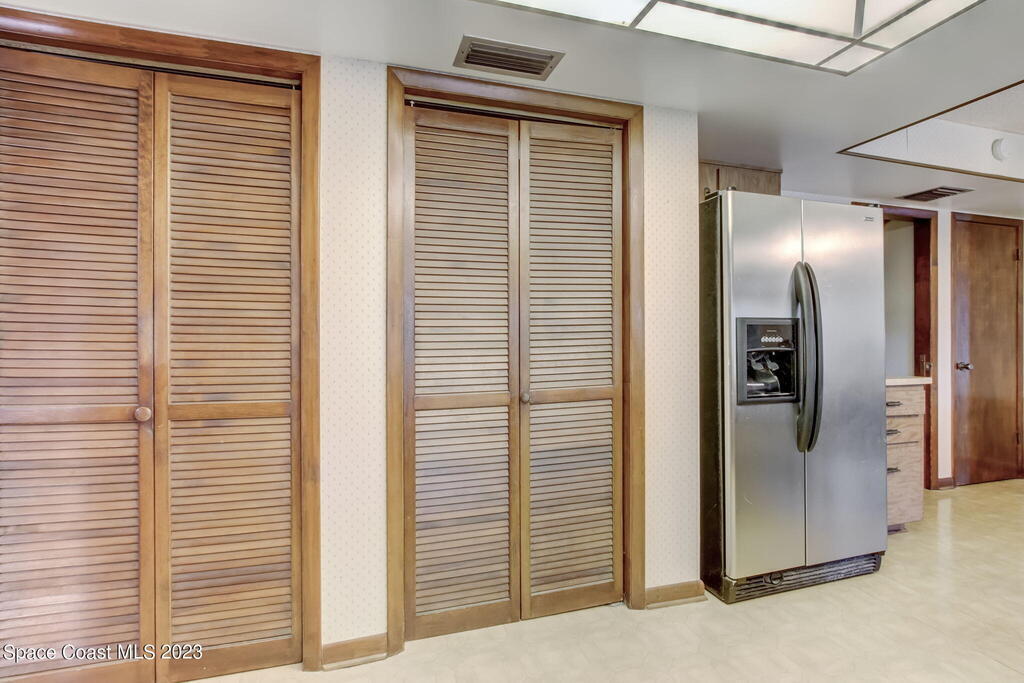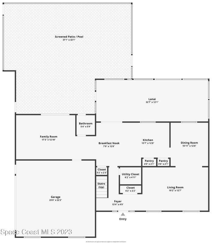 Welcome to the inviting charm of Surfside Estates in Merritt Island! This delightful 4-bedroom, 2.5-bathroom home on a corner lot boasts mature landscaping, fruit bearing trees, and a privacy fence, creating an alluring curb appeal. Beyond its aesthetic charm, the property offers a range of practical features, including a covered space for RV storage, a supplementary spot for a camper/trailer, metal utility shed with electric, second utility shed to store pool equipment, removeable hurricane shutters for doors and windows, and the convenience of natural gas. The home is well-prepared for emergencies with a backup generator that powers first floor AC and essential appliances and lighting. The interior floor plan impresses with spacious rooms, a traditional two-story layout,