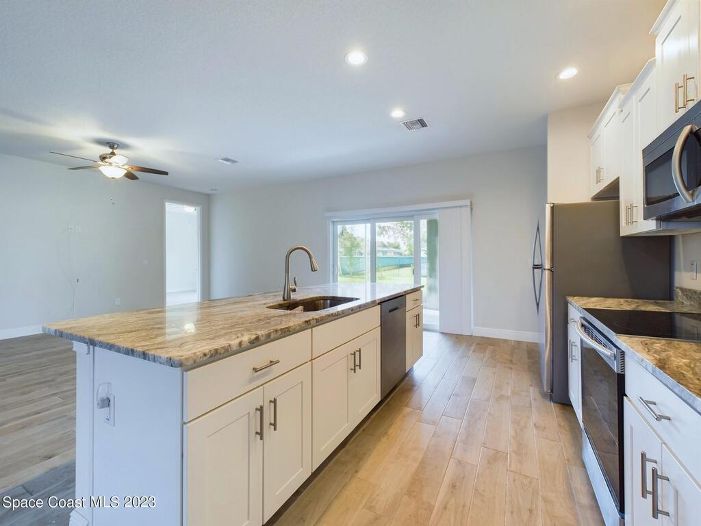 Redefine the essence of home living with this open floor plan new built home! Embrace the modern comfort with this four-bedroom, two-bathroom home. Elegance meets functionality where you will feel right at home. The well-designed floor plan seamlessly connects the living spaces, creating a sense of openness and fluidity. The kitchen, a focal point of the home, beckons both casual and seasoned chefs with its stylish finishes and updated appliances. High impact windows ! Breathtaking 9.4 ft ceiling height, with 8 foot doors. High efficiency a/c, irrigation system, and more! This home is an embodiment of updated living, where practicality meets style. Don't wait for new build, move right in!!