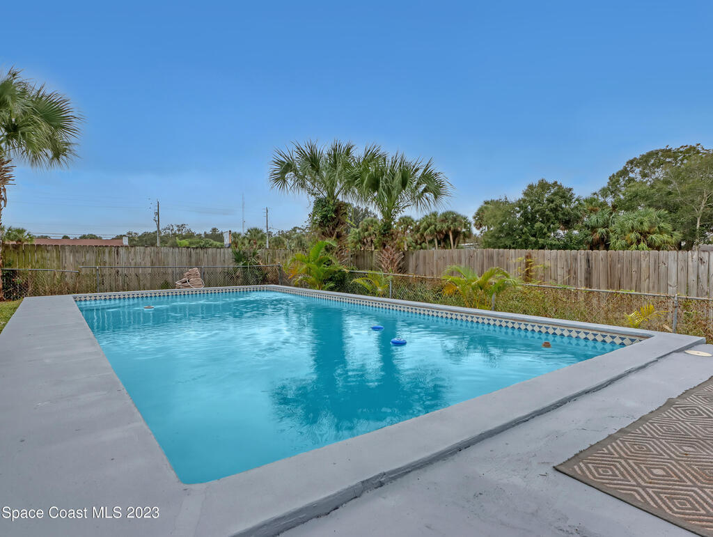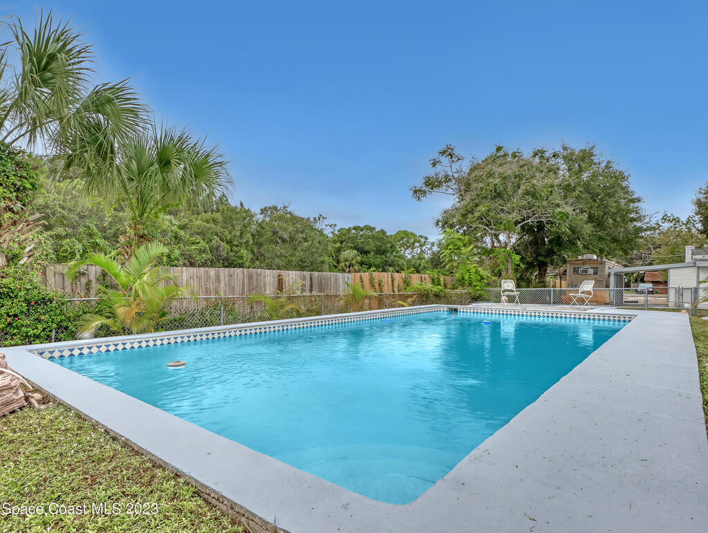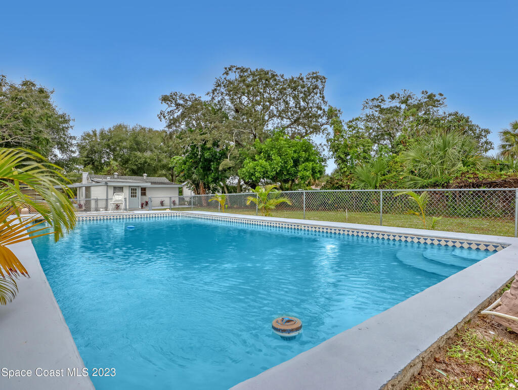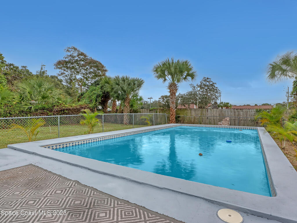 BACK ON THE MARKET! Beautifully updated 3 bed 2 bath single family home conveniently located a few blocks from US1 and Castaway Point Park. This charming property is perfect for those seeking a move-in ready home w/ easy access to amenities & outdoor activities. One of the highlights of this property is the large pool, perfect for relaxing & entertaining. Fully fenced property w/ well and pump, RV/Boat parking with 50-amp RV hookup. The interior of this home has been beautifully updated. Beautiful solar lights around the pool & sitting areas, take a drive by at night to see! This home is move-in ready. Whether you're a first-time buyer or looking to downsize, this property offers the perfect blend of comfort & convenience. Don't miss out on the opportunity to make this NE Palm Bay gem your own.