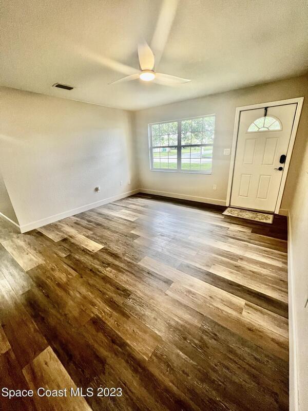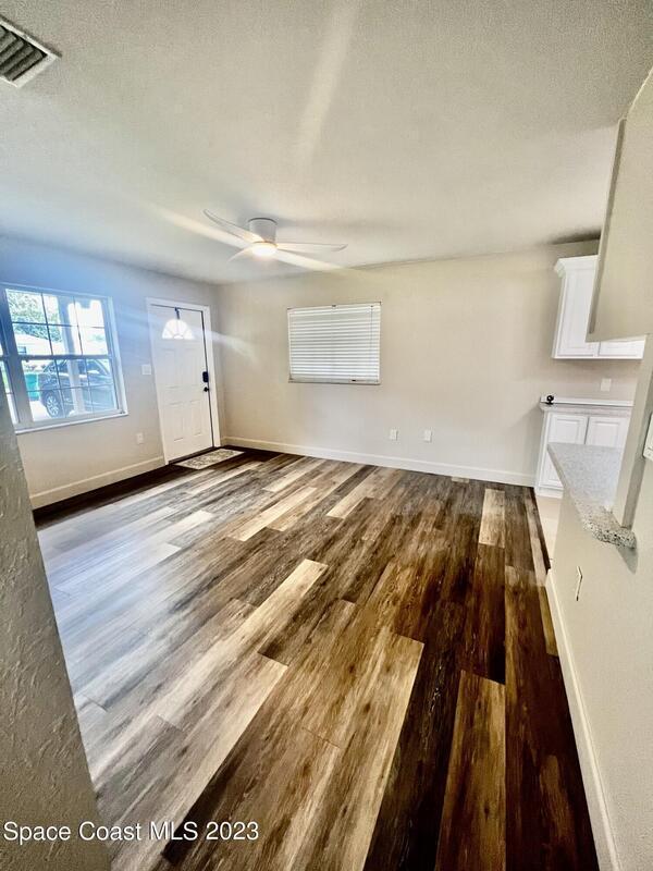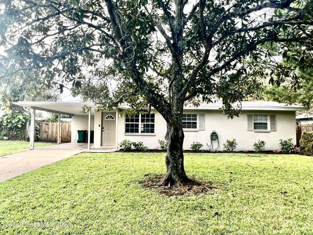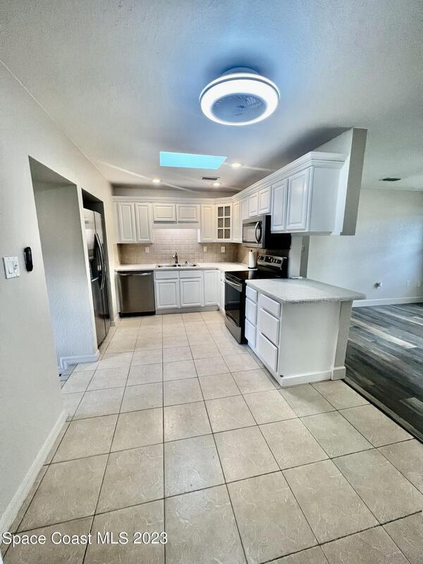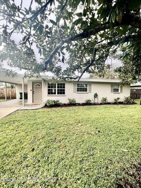 This beautifully remodeled 3 bedroom, 2 bath home in the heart of Eau Gallie won't last long. No HOA's or rental restrictions. New roof in '22, A/C in '21, hot water heater in '19 with a 12 year warranty. Freshly painted walls and kitchen cabinets. Brand new, never been used appliances. All light fixtures have been updated, new faucets, laminate flooring, large baseboards. The kitchen is bright, white, open, and airy with a skylight. New barn door in kitchen leads to separate laundry room with its own door that leads to the covered portion of the back patio. Large fenced in backyard with plenty of room for a swing-set and entertaining. New sod and flower bed. Beautiful magnolia tree in the front yard provides shade for those sunny Florida days. Schedule your showing today!