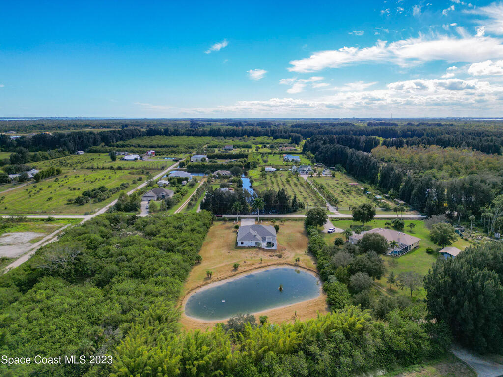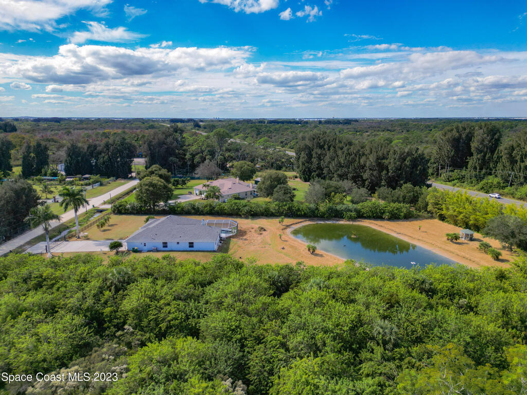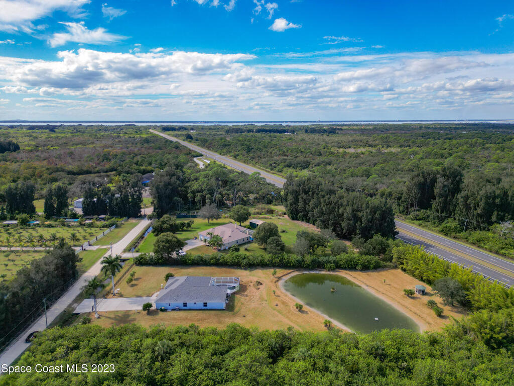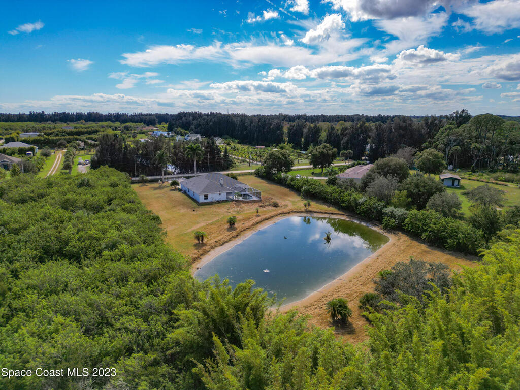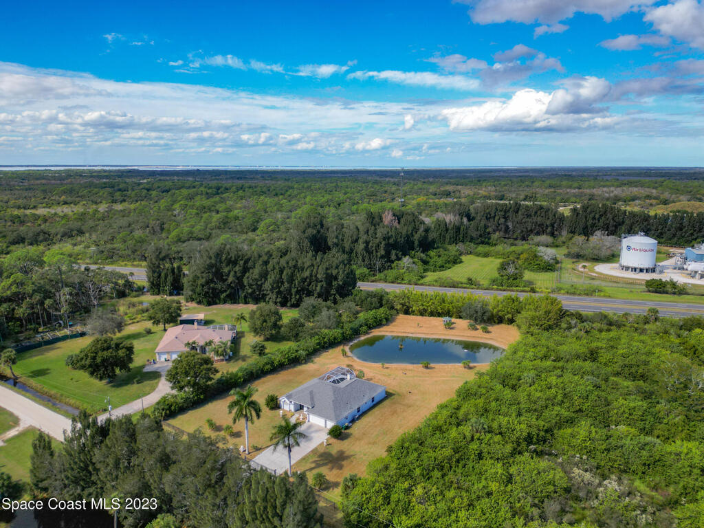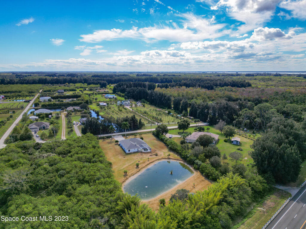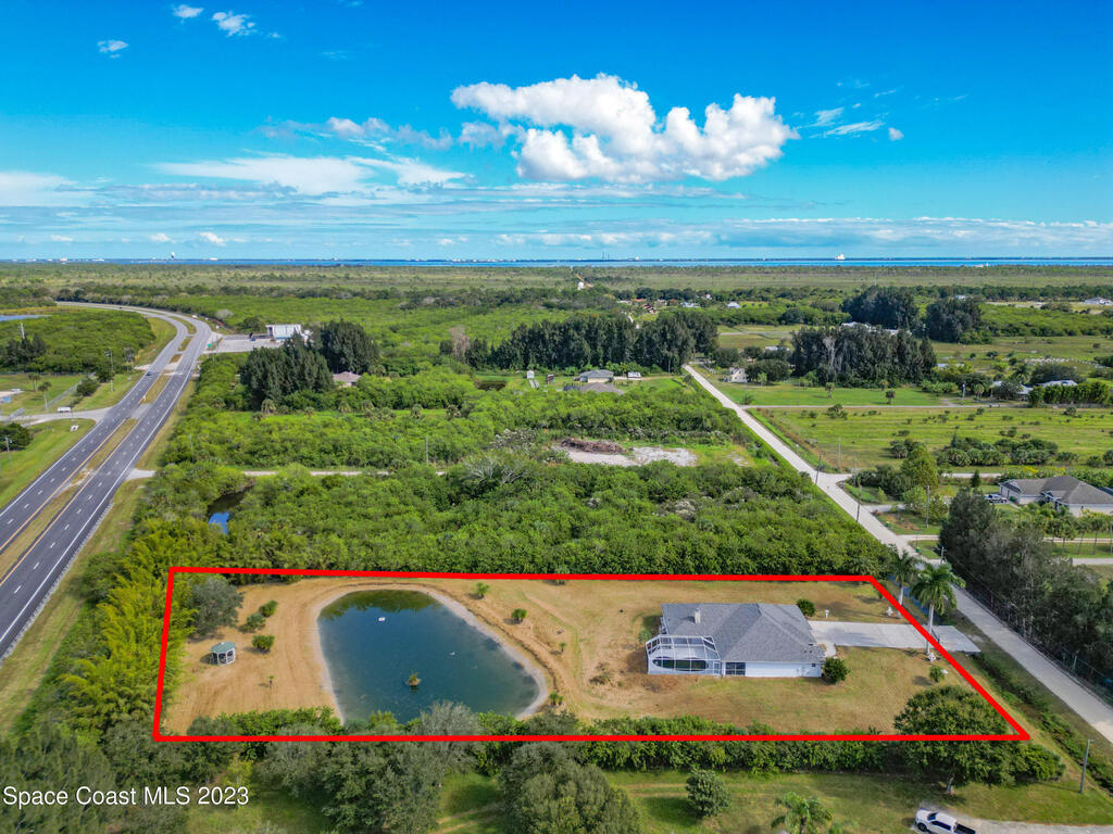 This spacious residence offers 4 bedrooms and 3 bathrooms. It features an open concept family room with fireplace and kitchen, split bedroom floor plan, formal living and dining rooms, gourmet kitchen and a 3-car garage for all of your toys! This private oasis is situated on 2 acres of tropical paradise, including your own pond! Needs paint and a few touches to make it a premier residence. Priced to sell all while located minutes from the 528 & Space X.