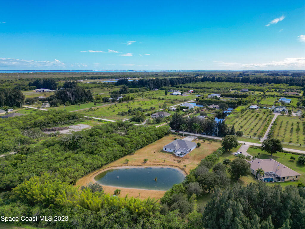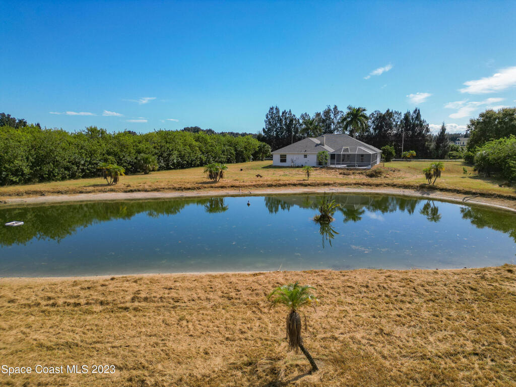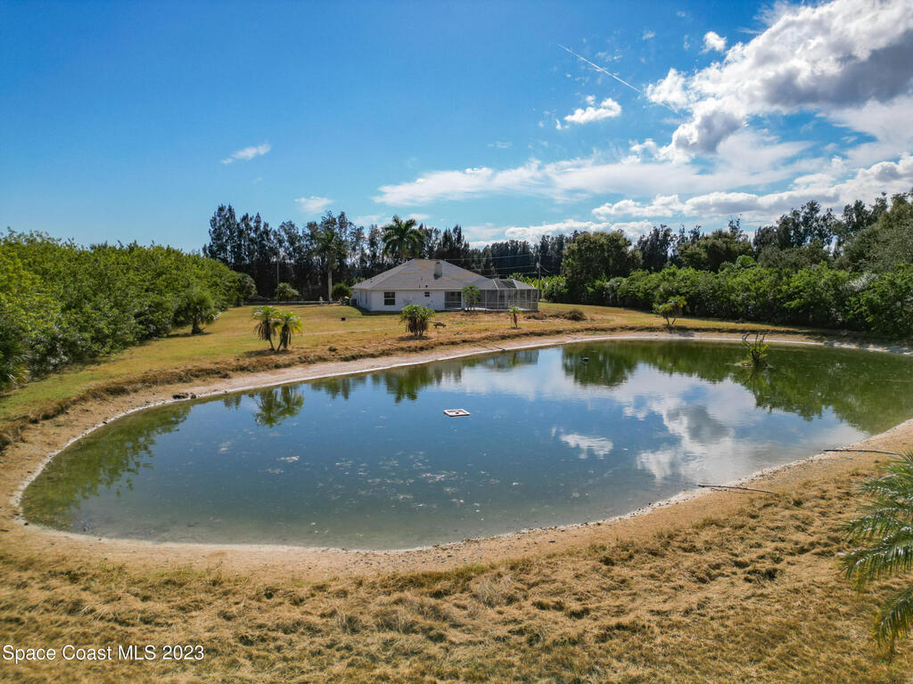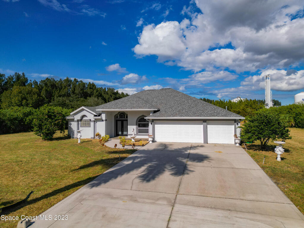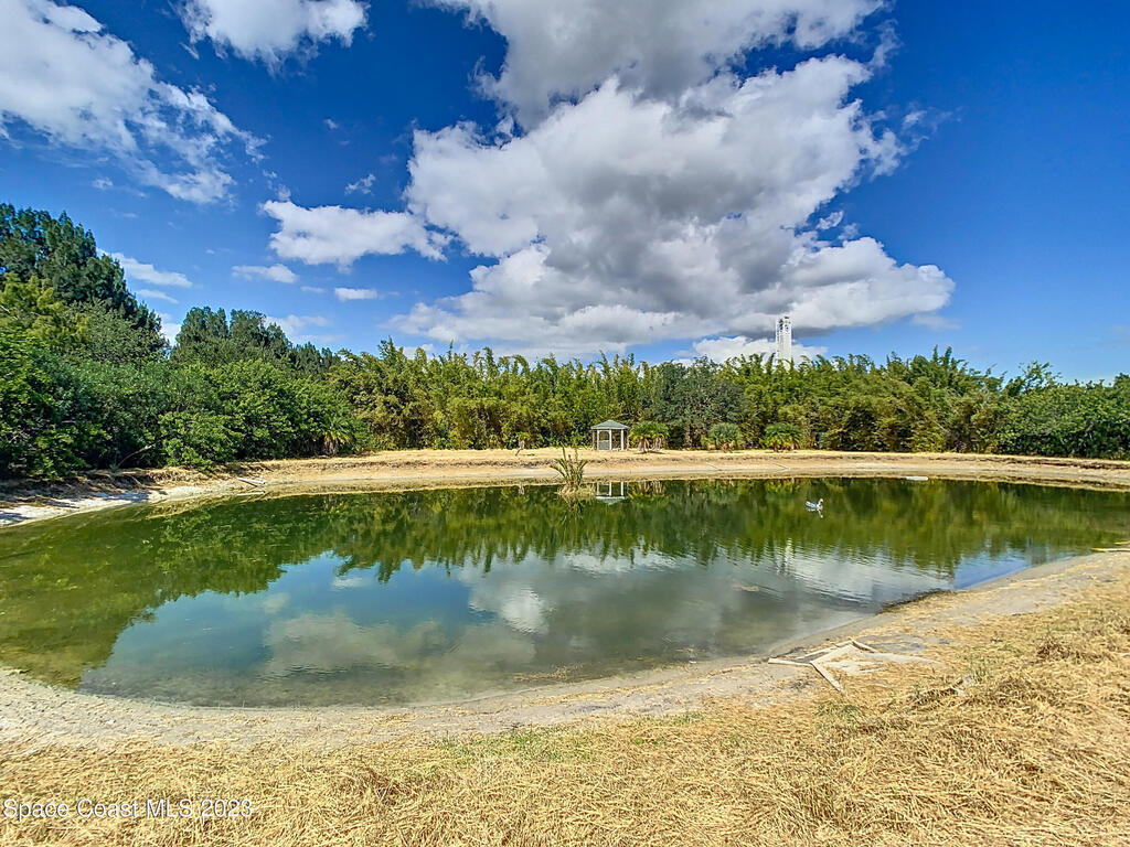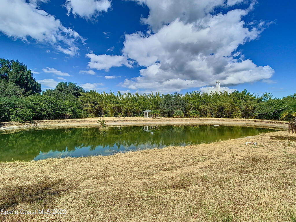 This spacious residence offers 4 bedrooms and 3 bathrooms. It features an open concept family room with fireplace and kitchen, split bedroom floor plan, formal living and dining rooms, gourmet kitchen and a 3-car garage for all of your toys! This private oasis is situated on 2 acres of tropical paradise, including your own pond! Needs paint and a few touches to make it a premier residence. Priced to sell all while located minutes from the 528 & Space X.