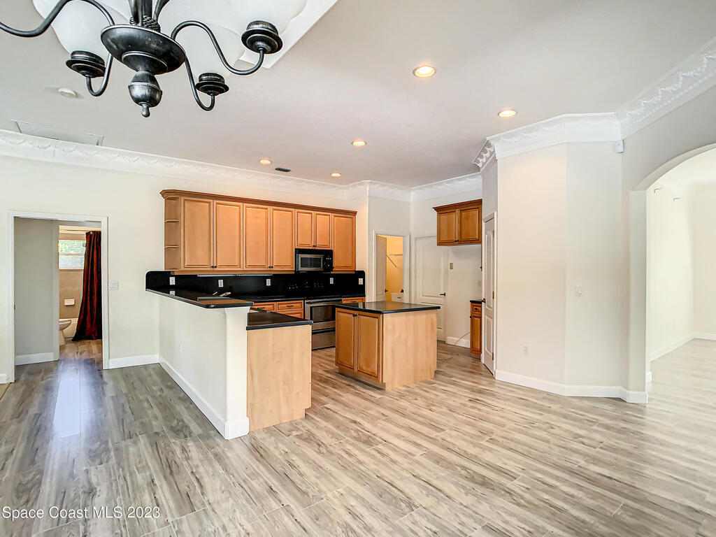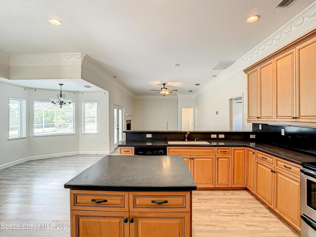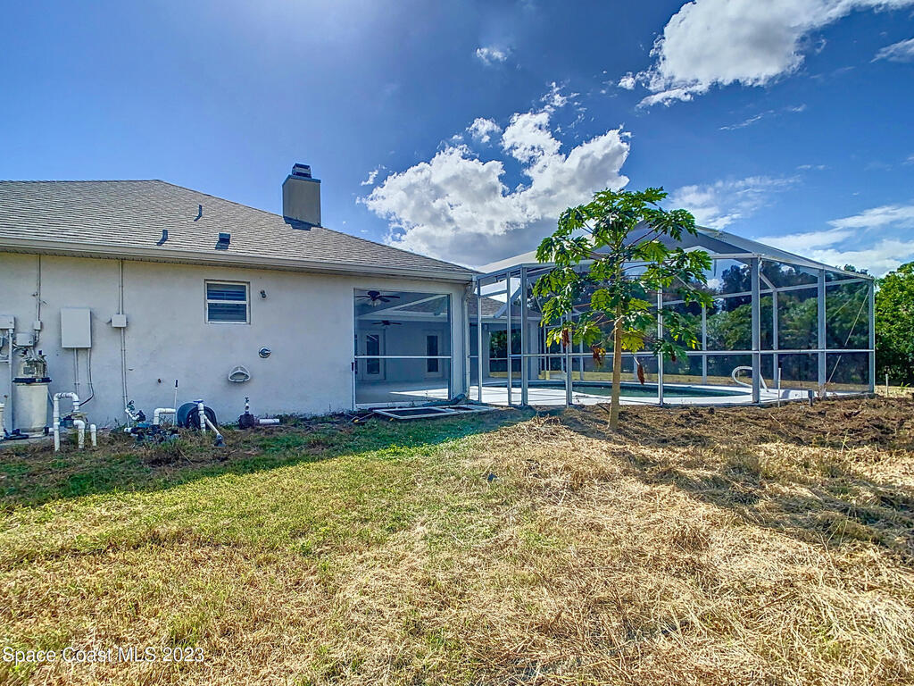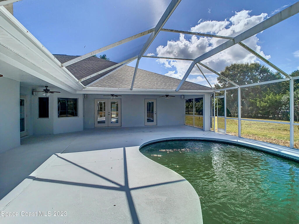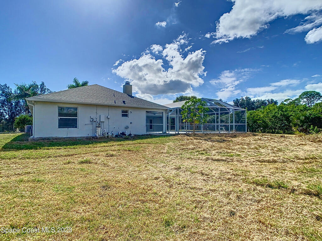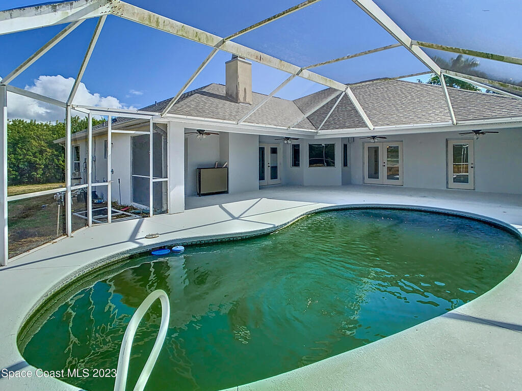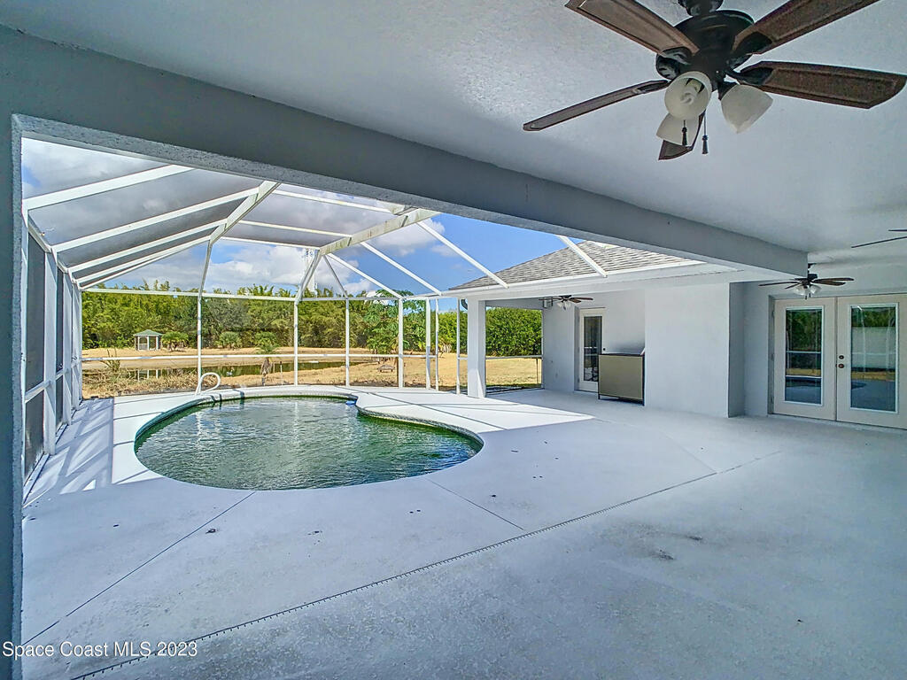 This spacious residence offers 4 bedrooms and 3 bathrooms. It features an open concept family room with fireplace and kitchen, split bedroom floor plan, formal living and dining rooms, gourmet kitchen and a 3-car garage for all of your toys! This private oasis is situated on 2 acres of tropical paradise, including your own pond! Needs paint and a few touches to make it a premier residence. Priced to sell all while located minutes from the 528 & Space X.