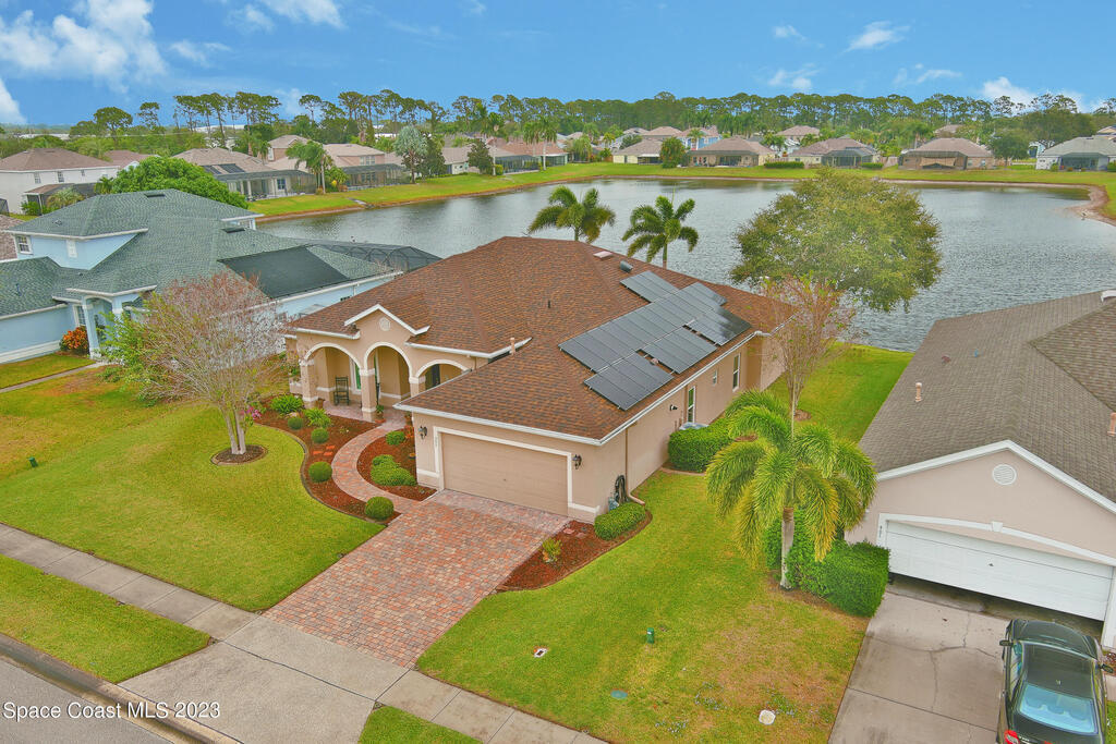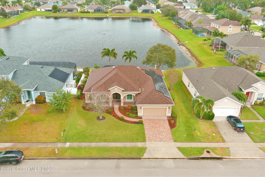 Beautiful, completely updated lakefront home located in the highly desired community of Chelsea Park! This one has it all, with stunning views of the lake from every angle. Exterior features: impeccable landscaping, curb appeal & custom landscape lighting, pavered driveway & extended back lanai, roof 2018, hurricane shutters, NEW (25K) Pella high impact windows, FULL SOLAR POWER, natural gas connection, blue light air filter, & a NEW tankless water heater! No expense spared with interior featuring high ceilings & open concept, tile & laminate flooring, newly remodeled kitchen with all stainless steel appliances & white shaker cabinets, superbly updated spare & masterbath(20K), Plantation Shutters throughout(25K), stone wood-burning fireplace, extended living room, & solar attic fans.
