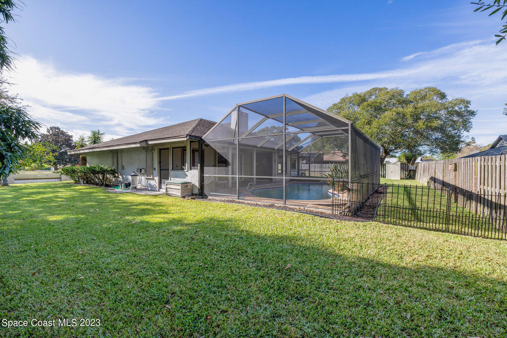 PRICED UNDER APPRAISED VALUE!!!!Discover the perfect blend of comfort and old Florida charm in this 4-bed, 2-bath pool home centrally located in Melbourne, Florida. Tucked away in a small, private community on Lake Washington, this single-family residence is the perfect place for anyone to call home. Vaulted ceilings greet you, enhancing the sense of space in the open kitchen and living areas. New flooring underfoot adds a touch of modernity.Step through the doors into a screened-in pool area, where lazy afternoons transform into unforgettable moments. With a 2022 AC unit, ensuring year-round comfort. The master bathroom, recently remodeled, is a private sanctuary of relaxation. Convenience is key, with a 2-car garage and proximity to both the beaches and I-95.Recent upgrades: Luxury Vinyl flooring, re-plumbed all water lines in home, updated master bathroom shower and bath, new motor for pool, new motor for sprinkler system, 2022 HVAC.