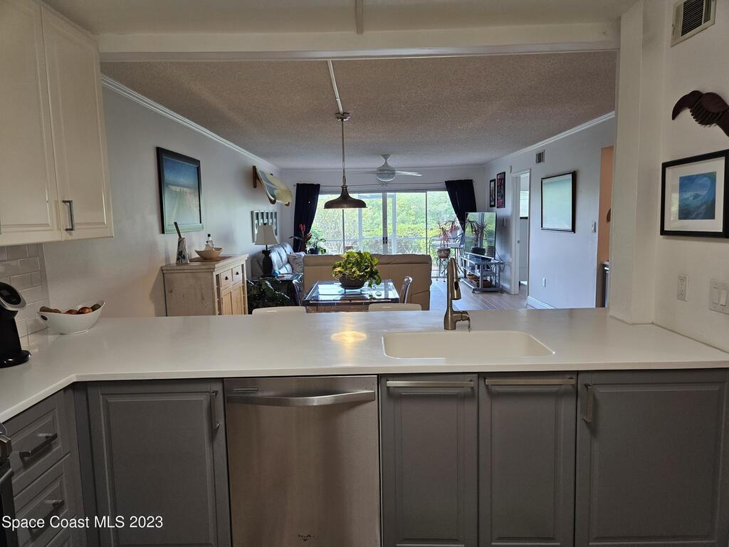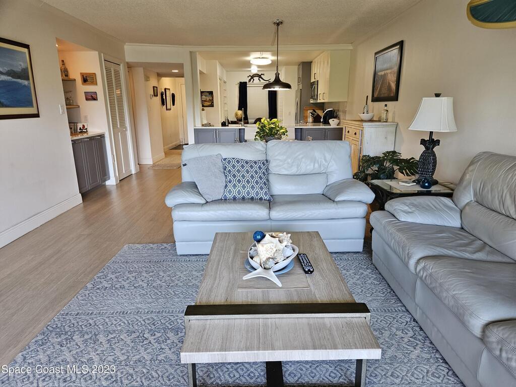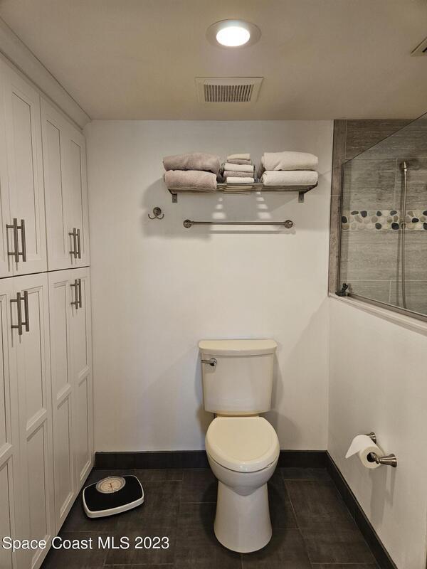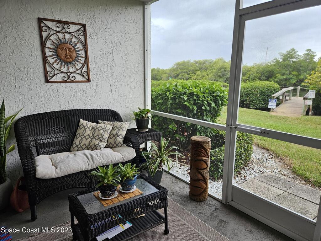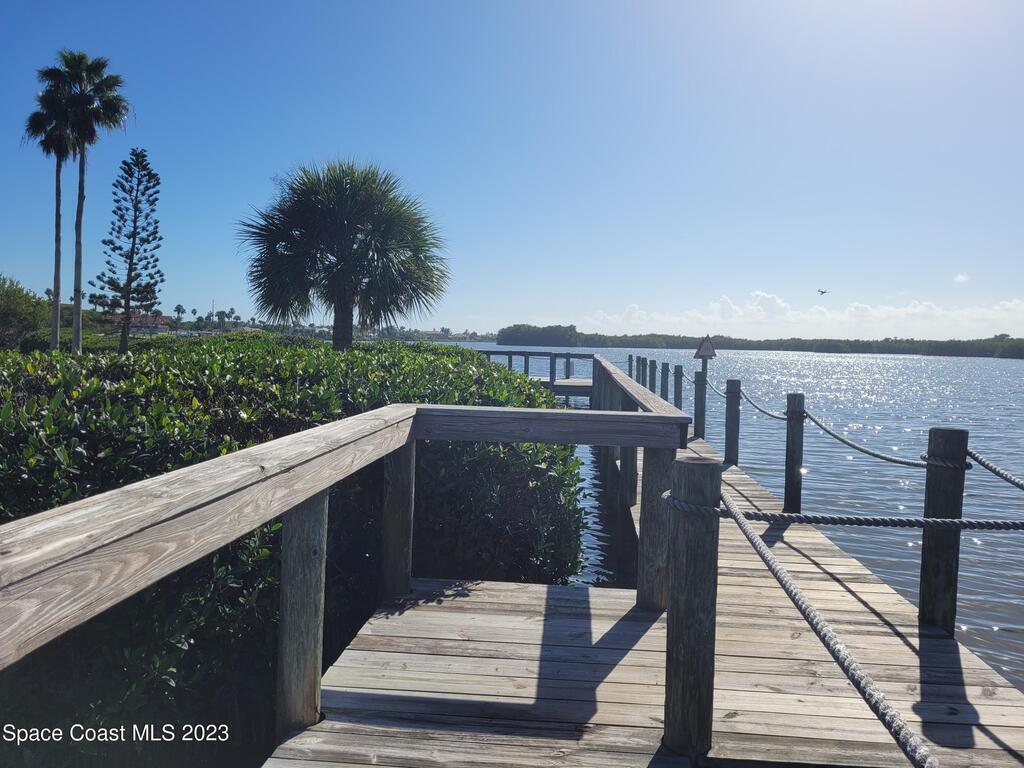 Step into this wonderfully updated and tastefully decorated turnkey first floor condo. Step outside onto the expansive and pristine lawn with direct access to the walkways along the river. Enjoy the casual modern feel of this condo complimented by clean lines featuring Corian countertops and integrated sink, stainless appliances, bamboo flooring and a spa style master bathroom! Endless storage here with the bathroom built ins, kitchen cabinetry, closets and in the garage! Enjoy the indoor/outdoor screened in living space along the river watching the boats, kayaks and the sunsets. This beautiful river front complex is located next to Ramp Road Park, walking distance to the beach and 5 blocks to downtown Cocoa Beach. Tennis courts, 2 heated pools, lap pool, rec room, gym, sauna and acres of beautiful Banana River frontage. This is the perfect place to make your home or second home