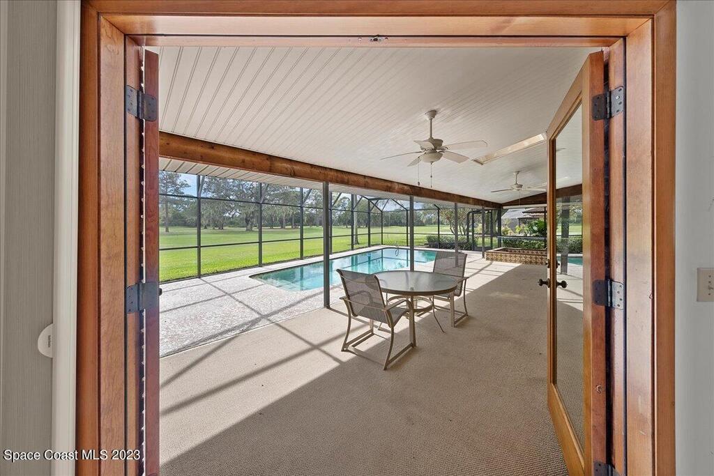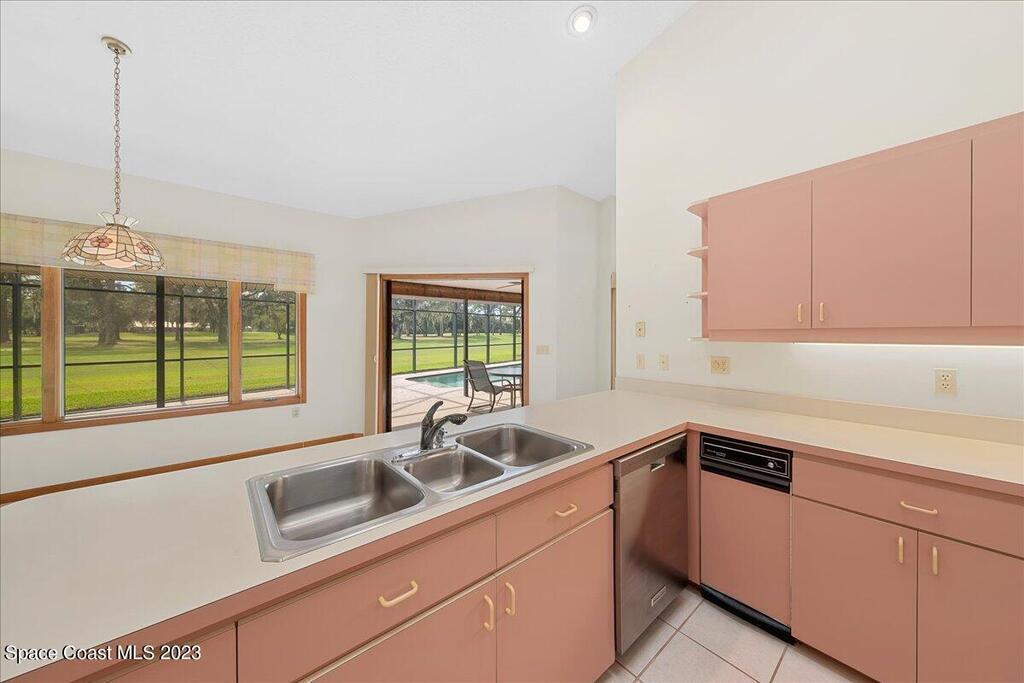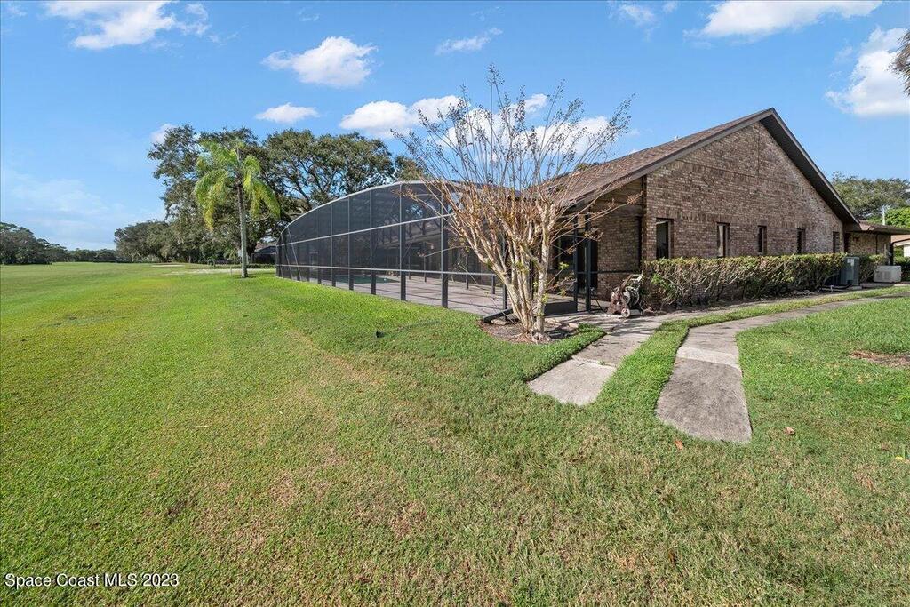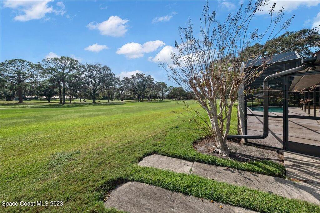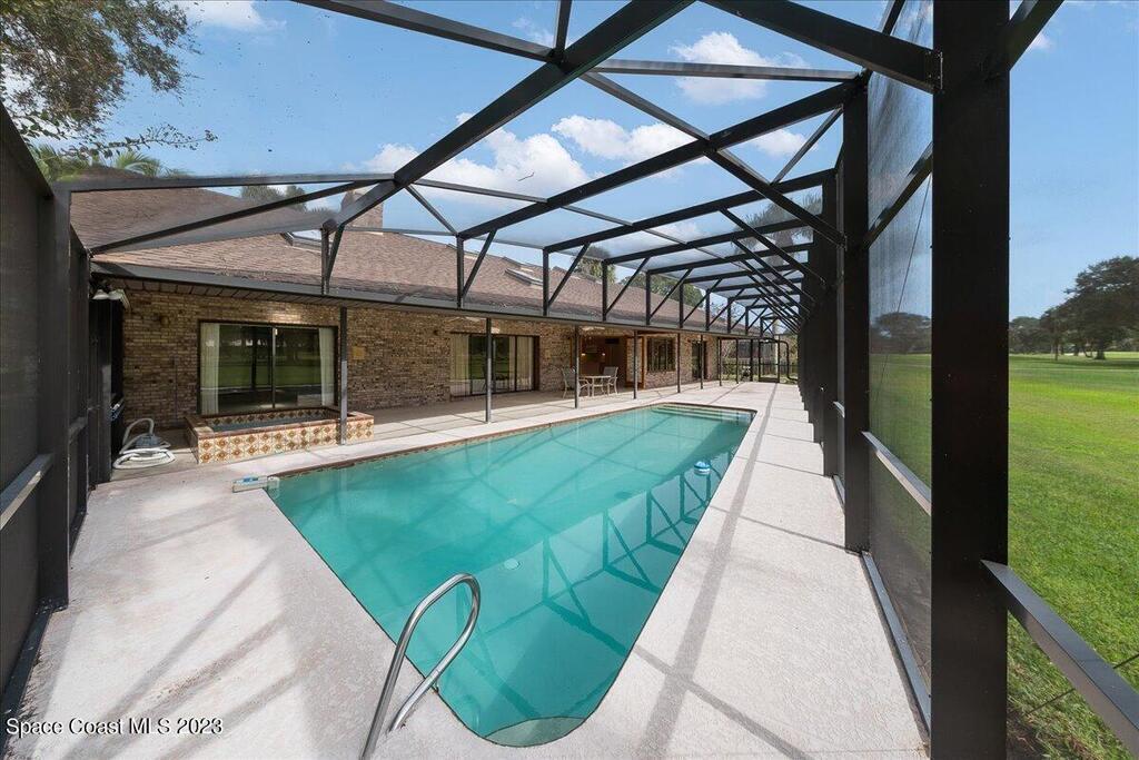 Enjoy views of the 5th hole of the Rockledge Country Club from almost every room in this house. As you enter the home you are greeted with vaulted ceilings, a large living space, and sliders overlooking the pool and golf course. This home features 3 bedrooms and 2 bathrooms, generator, screened pool & spa, large indoor laundry room, fireplace, and a large kitchen.