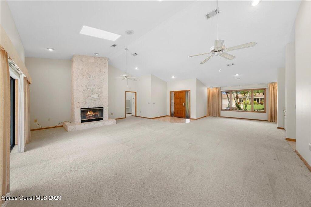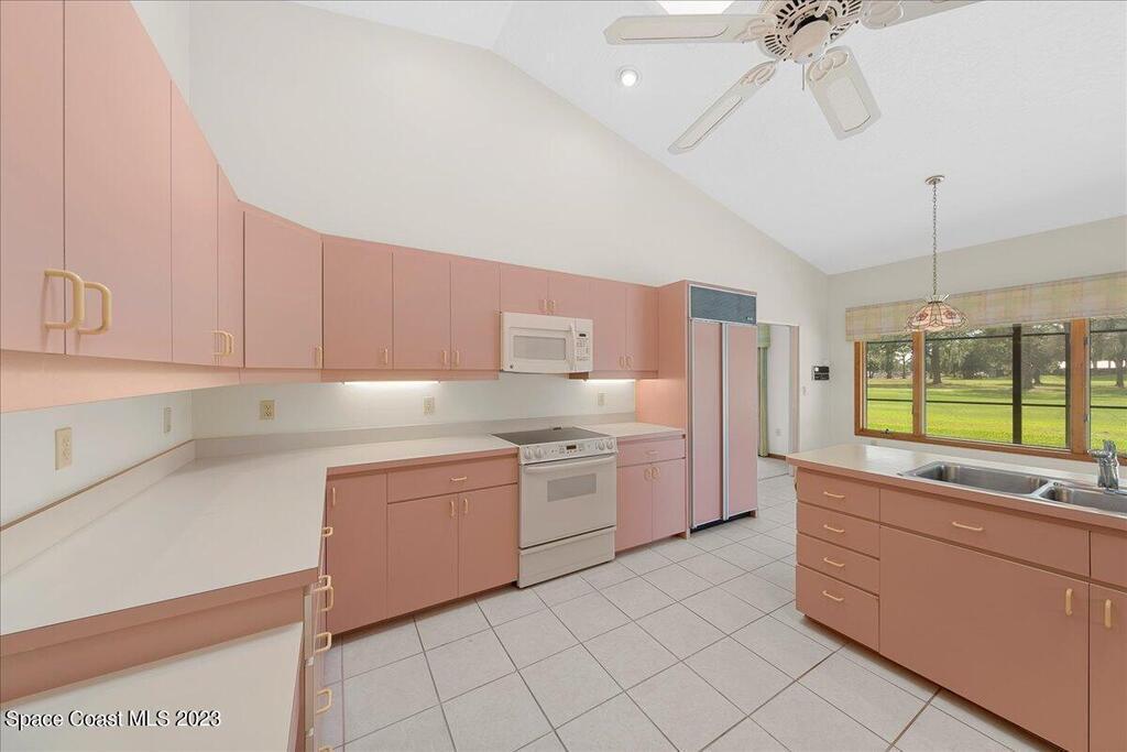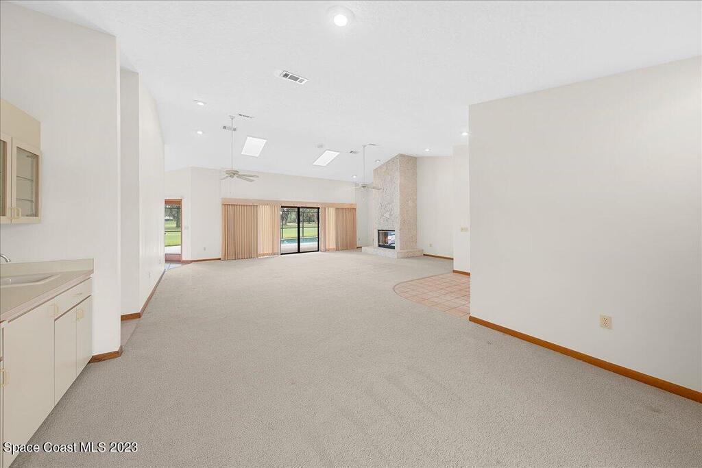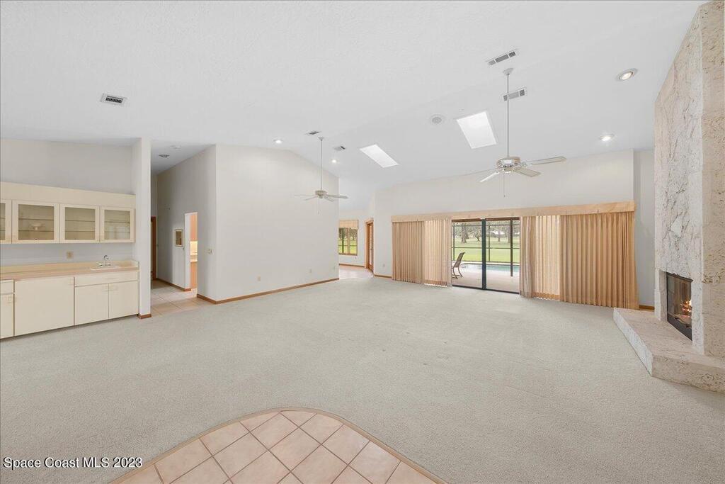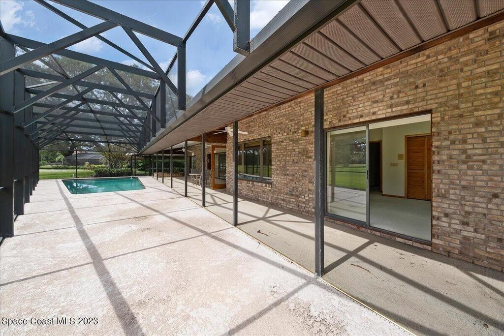 Enjoy views of the 5th hole of the Rockledge Country Club from almost every room in this house. As you enter the home you are greeted with vaulted ceilings, a large living space, and sliders overlooking the pool and golf course. This home features 3 bedrooms and 2 bathrooms, generator, screened pool & spa, large indoor laundry room, fireplace, and a large kitchen.