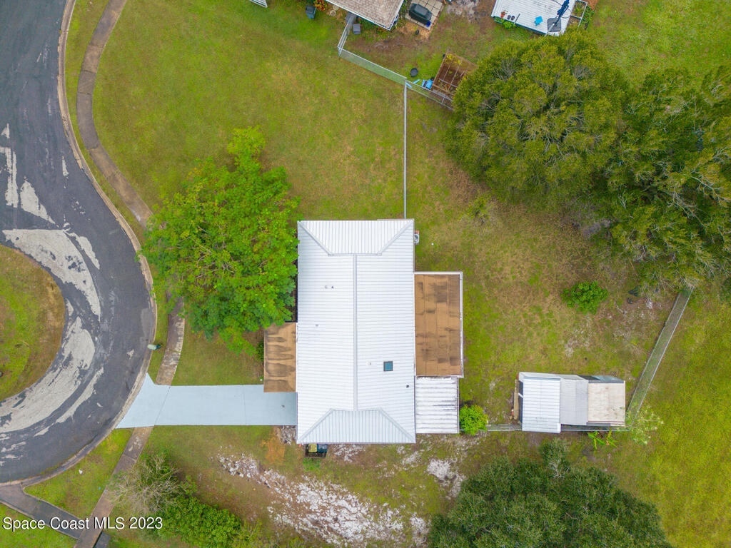 REDUCED! THE ADORABLE HOME SITS ON A LARGE .33 ACRE on a Cul De Sac with NO BACK NEIGHBORS. NO HOA. This is a perfect starter home or winter home for snowbirds. Home has a metal roof, newly replaced in 2019. New Central A/C and water heater were replaced in 2021.Newly repainted interior/exterior and driveway. Kitchen was completely remodeled with white cabinetry, countertop, farmhouse sink, new fixtures, and SS appliances. Updated bathroom. TILE flooring throughout the house. The Flex/Family Room (200 sf) was added under A/C. Accordion shutters were installed on All Windows. Backdoor and Skylight are High Impact Hurricane Glass. The front porch is enclosed for a Florida room. Back Screen Porch, part of the yard is fenced, Nice Shade Trees, Large Shed. GREAT LOCATION! CAN CLOSE QUICKLY!