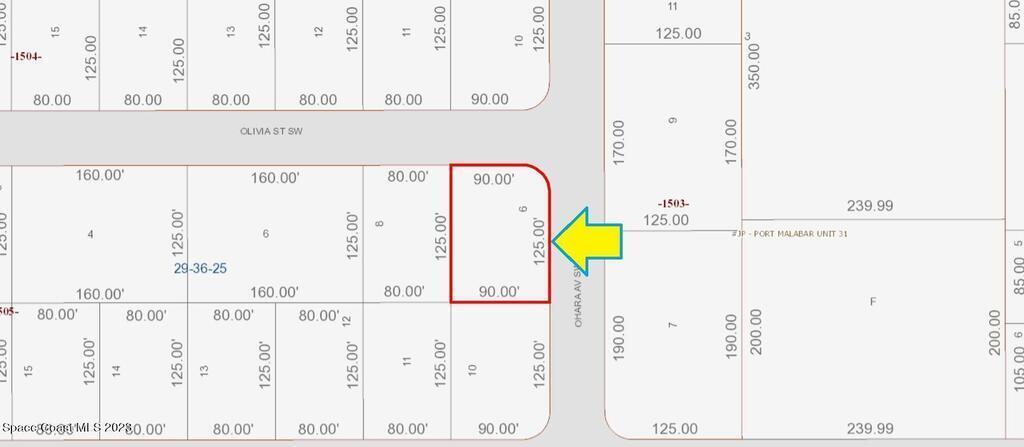 0.26 acre buildable residential lot available in Port Malabar Unit 31 of Palm Bay. Located in the southwest section, this corner lot has city water available, and is just 1.5 miles - 4 minutes to Westside Elementary School, 3.4 miles - 7 minutes to the Publix Supermarket, 14.9 miles - 30 minutes to Melbourne Airport, and 18.4 miles - 35 minutes to the beaches of Indialantic. From exit #176 of I-95 go west on Palm Bay Road for .7 miles, left on Minton Road for 3.3 miles, right on Jupiter Boulevard, quick left on DeGroodt Road for 3.7 miles, right on Fitchburg Street for .6 miles, and right on Ohara Avenue to Olivia Street. The lot will be on your left at the corner with Olivia. Buyer is to pay all title and related costs.