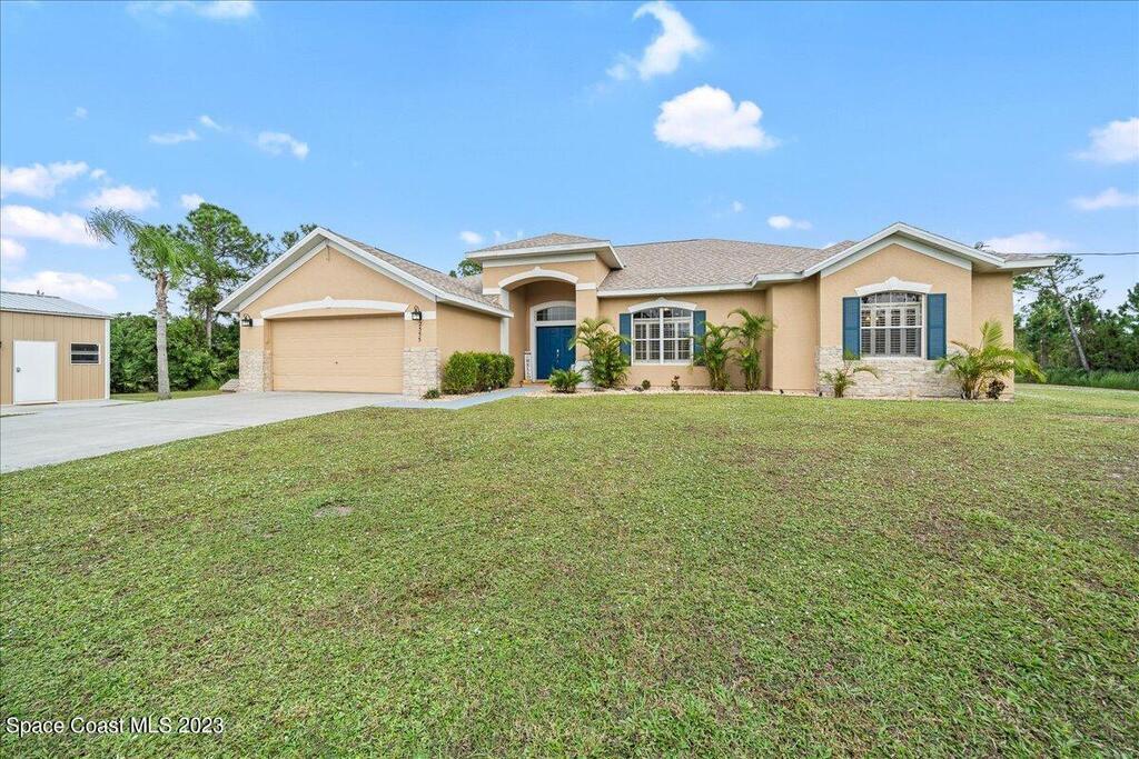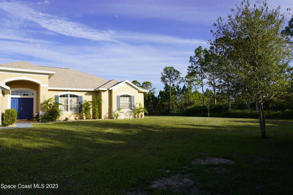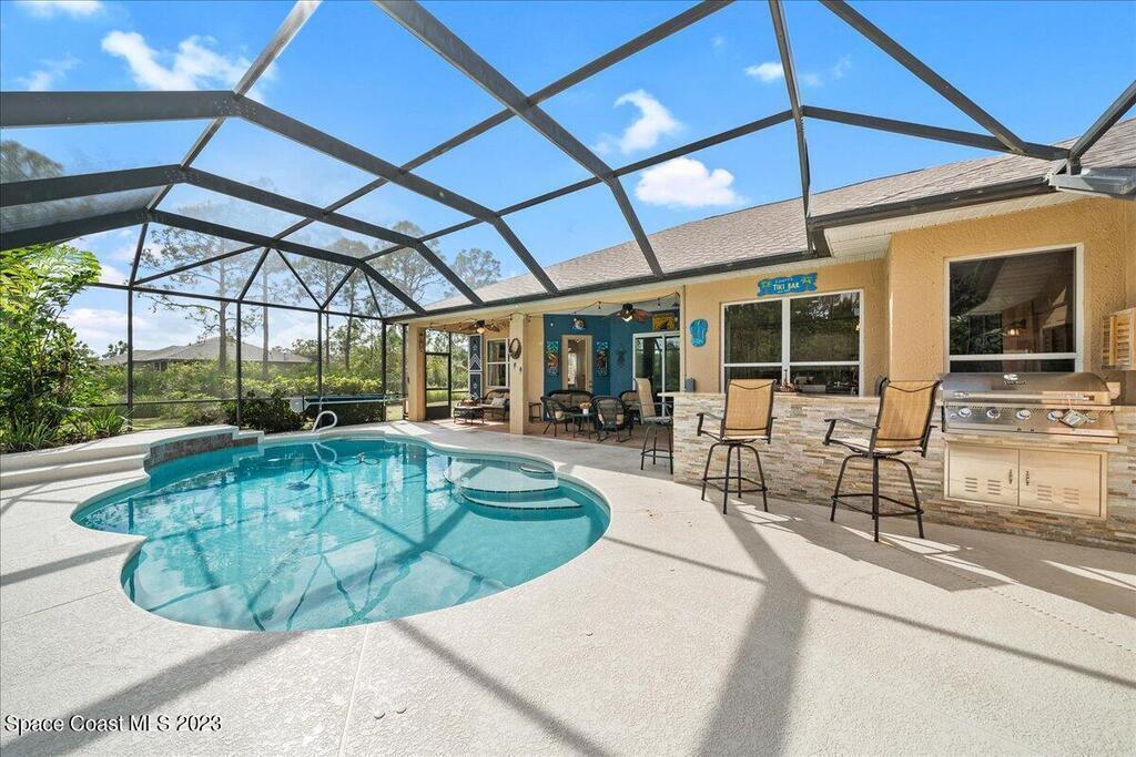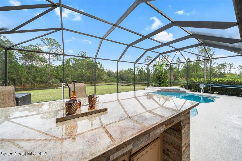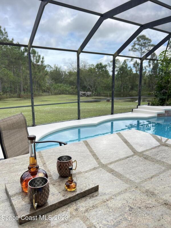 HUGE PRICE REDUCTION - REDUCED BY $40K - SELLER MOTIVATED - BRING OFFERS. New Roof 2022. Private & quiet1.47 Acres in Malabar, NO HOA, 15 minutes to Downtown Melb. Newer 840/sf DETACHED GARAGE - features 2 deep bays & workshop, roll-down doors & 14' ceiling. This one-owner, CBS home was built in 2005 has 2,573 sq.ft. under air with 4 spacious bedrooms, 3 full baths, pool, & outdoor kitchen. Updated kitchen with full slab granite center island, stacked stone walls, coffee/wine bar. High ceilings, 8' sliders, arched windows, plantation shutters, crown molding, 5'' baseboards, & luxury vinyl plank flooring throughout. Enjoy entertaining pool-side with the brand new outdoor kitchen & 6-burner grill, fire-pit area & huge, private & cleared yard. Lot line is appx. 35-40' beyond trees in rear & all adjoining lots have homes already built.