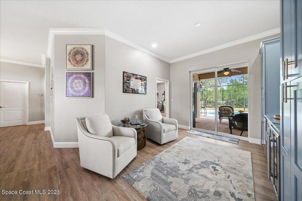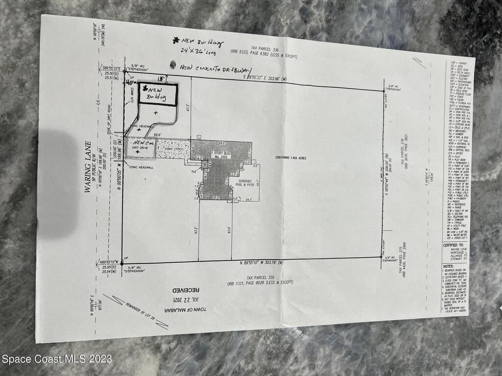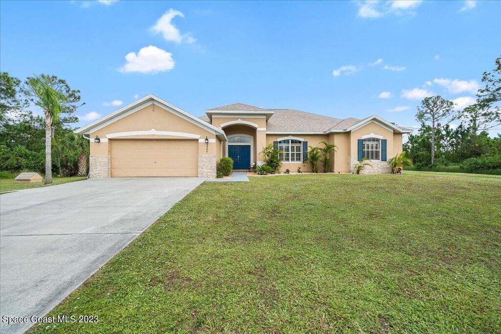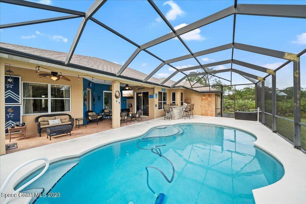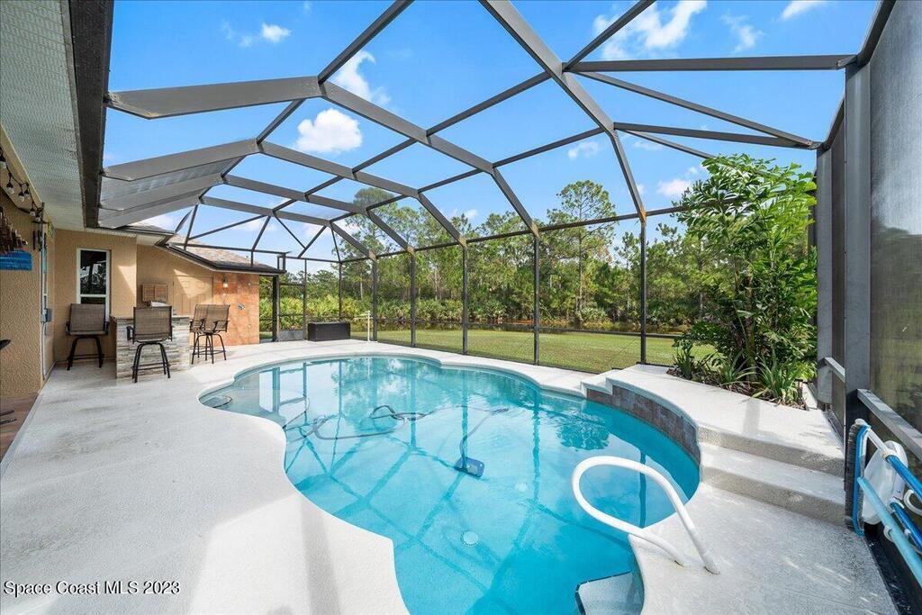 HUGE PRICE REDUCTION - REDUCED BY $40K - SELLER MOTIVATED - BRING OFFERS. New Roof 2022. Private & quiet1.47 Acres in Malabar, NO HOA, 15 minutes to Downtown Melb. Newer 840/sf DETACHED GARAGE - features 2 deep bays & workshop, roll-down doors & 14' ceiling. This one-owner, CBS home was built in 2005 has 2,573 sq.ft. under air with 4 spacious bedrooms, 3 full baths, pool, & outdoor kitchen. Updated kitchen with full slab granite center island, stacked stone walls, coffee/wine bar. High ceilings, 8' sliders, arched windows, plantation shutters, crown molding, 5'' baseboards, & luxury vinyl plank flooring throughout. Enjoy entertaining pool-side with the brand new outdoor kitchen & 6-burner grill, fire-pit area & huge, private & cleared yard. Lot line is appx. 35-40' beyond trees in rear & all adjoining lots have homes already built.