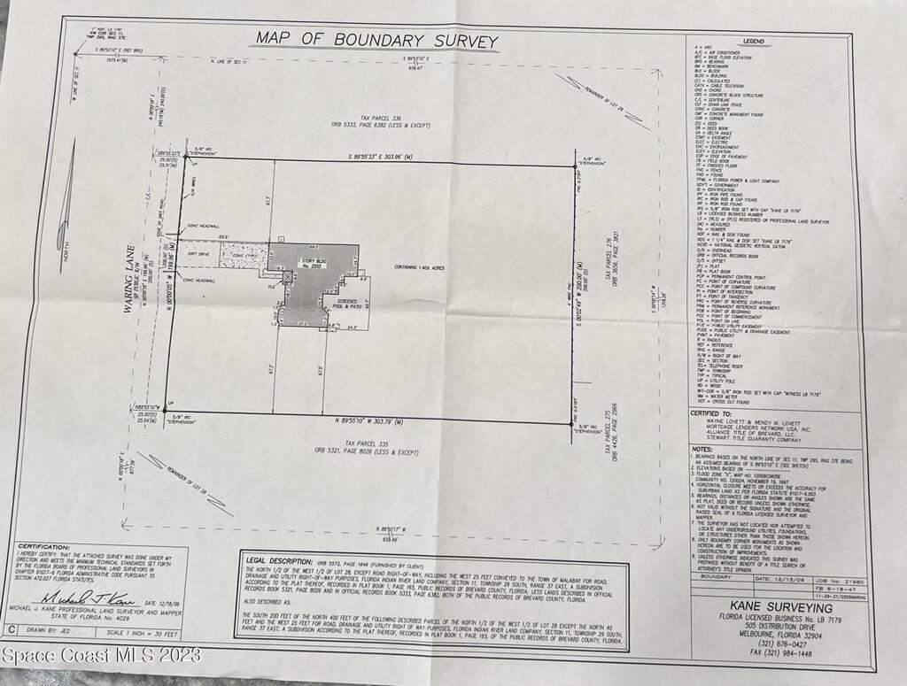 Property Listing Details for 2555 Waring Lane, Malabar, FL 32950