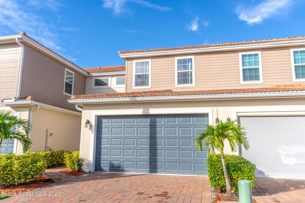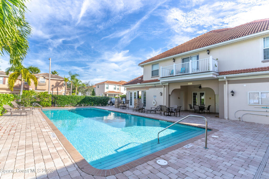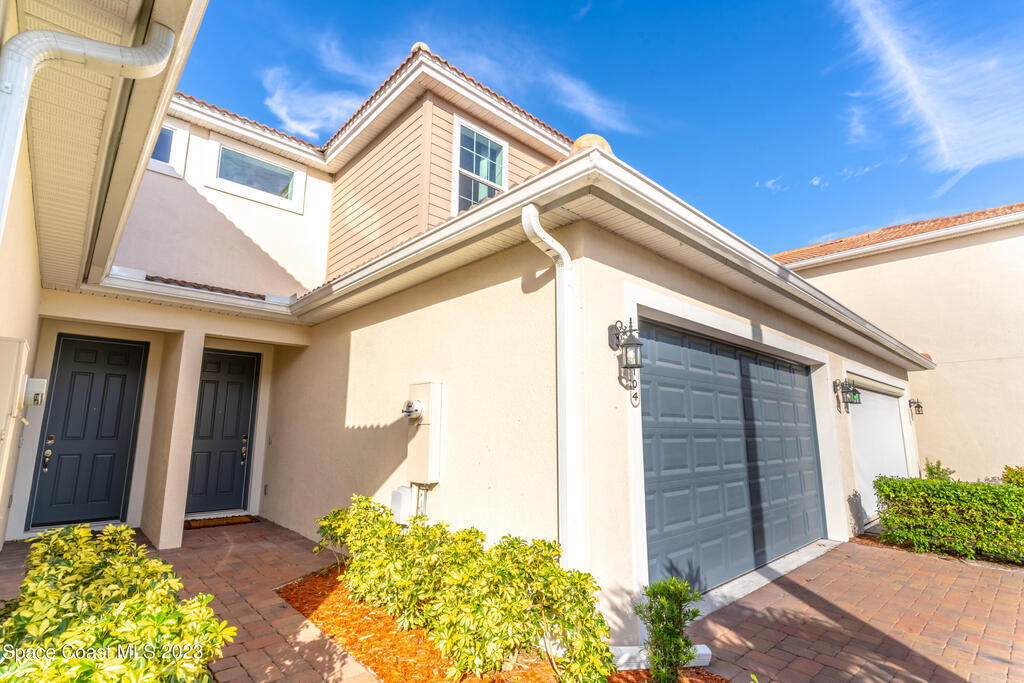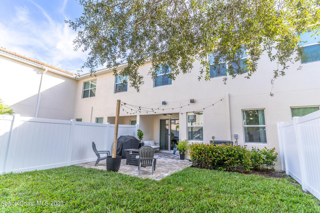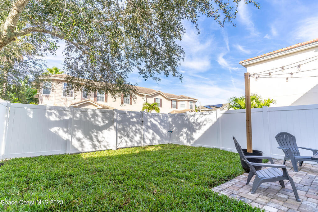 Like New and Available for a quick close. Low HOA, dues include water, cable, internet, and lawn maintenance. Built in 2021 this stylish townhome is just minutes from the Eau Gallie Art District, Downtown Melbourne, the Melbourne Orlando International Airport, and the beautiful beaches of Florida's Space Coast. Looking for a fenced-in yard? This is your opportunity to grab the largest yard in the community! New 13' x 13' paver patio, solar outdoor bistro lighting, mature trees and sunset views. This Biltmore model is equipped with impact windows, smart technology garage door opener, doorbell, thermostat and more. This gated community offers a resort-style heated pool, fitness center, therapeutic sauna, jacuzzi, and a playground for the kids.