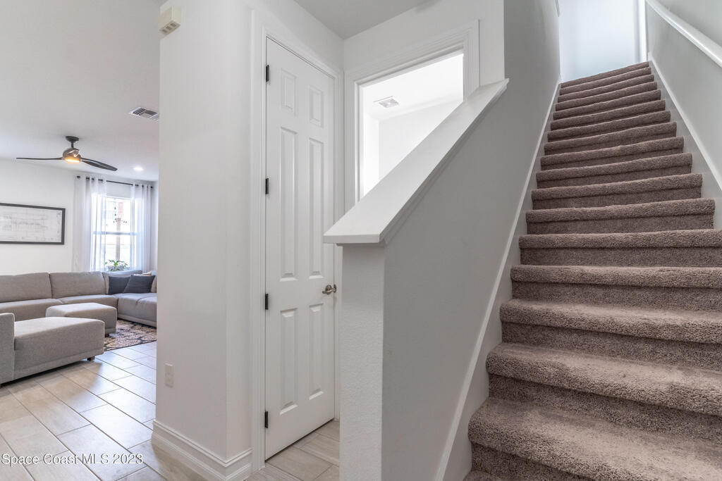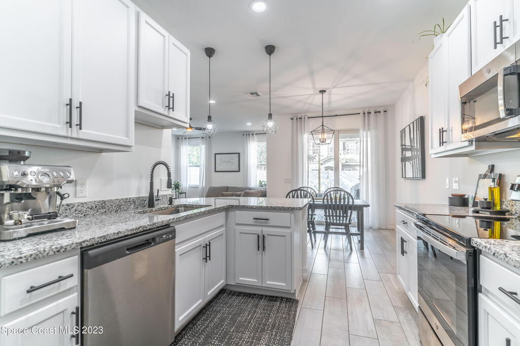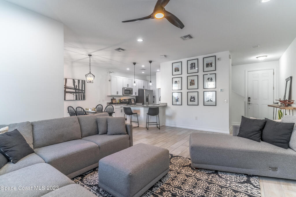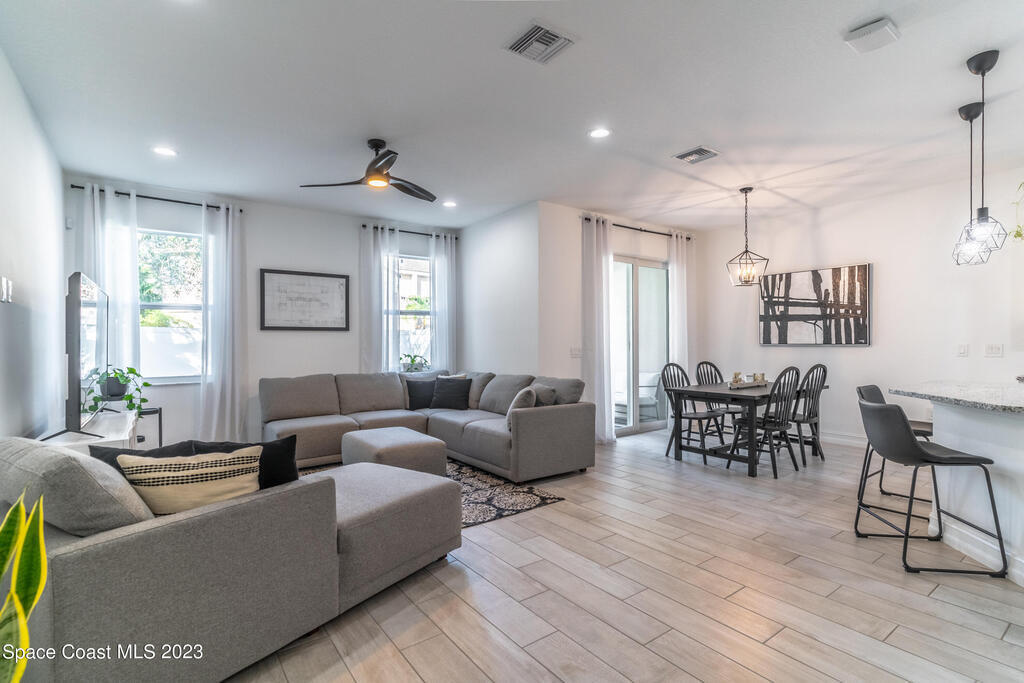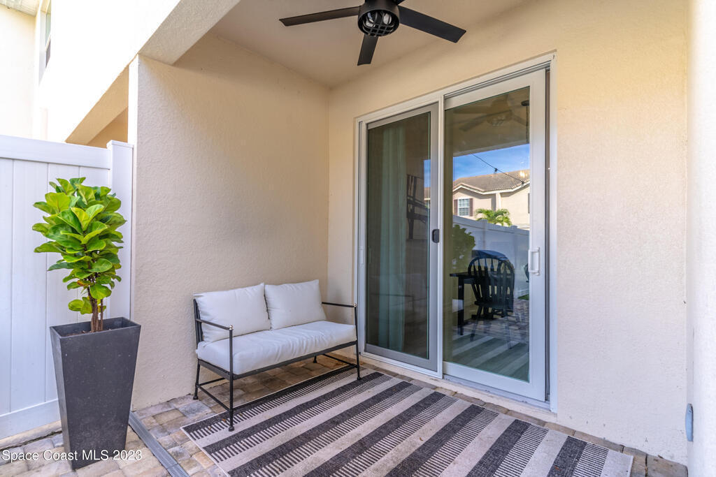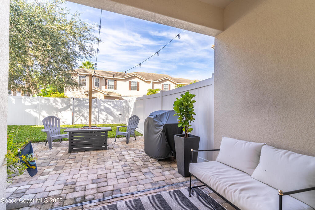 Like New and Available for a quick close. Low HOA, dues include water, cable, internet, and lawn maintenance. Built in 2021 this stylish townhome is just minutes from the Eau Gallie Art District, Downtown Melbourne, the Melbourne Orlando International Airport, and the beautiful beaches of Florida's Space Coast. Looking for a fenced-in yard? This is your opportunity to grab the largest yard in the community! New 13' x 13' paver patio, solar outdoor bistro lighting, mature trees and sunset views. This Biltmore model is equipped with impact windows, smart technology garage door opener, doorbell, thermostat and more. This gated community offers a resort-style heated pool, fitness center, therapeutic sauna, jacuzzi, and a playground for the kids.