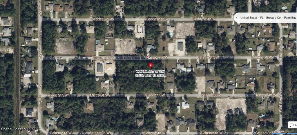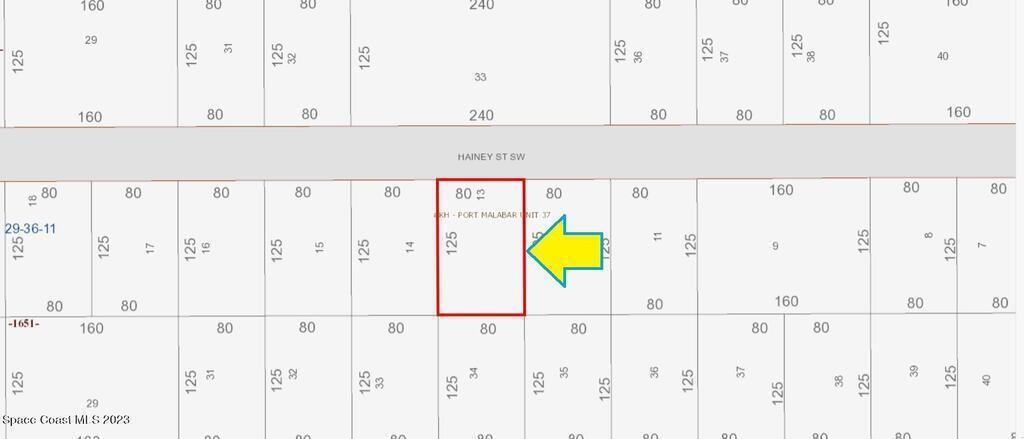 0.23 acre buildable residential lot available in Port Malabar Unit 37 of Palm Bay. Located in the southwest section, this lot is just 2.1 miles - 6 minutes to Jupiter Elementary School, 2.9 miles - 8 minutes to the Winn Dixie Supermarket, 12.3 miles - 28 minutes to Melbourne Airport, and 15.4 miles - 35 minutes to the beaches of Indialantic. From exit #176 of I-95 go west on Palm Bay Road for .7 miles, left on Minton Road for 2.5 miles, right on Malabar Road for 1.0 mile, left on Garvey Road for 1.3 miles, right on Harper Boulevard for .4 miles, left on Schomer Avenue for .1 mile, and left on Hainey Street. The lot will be on your right.