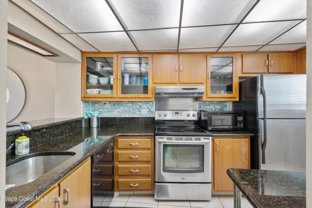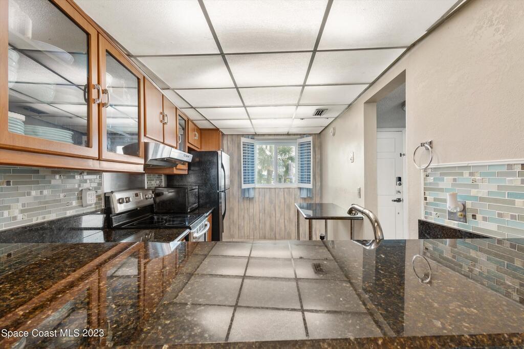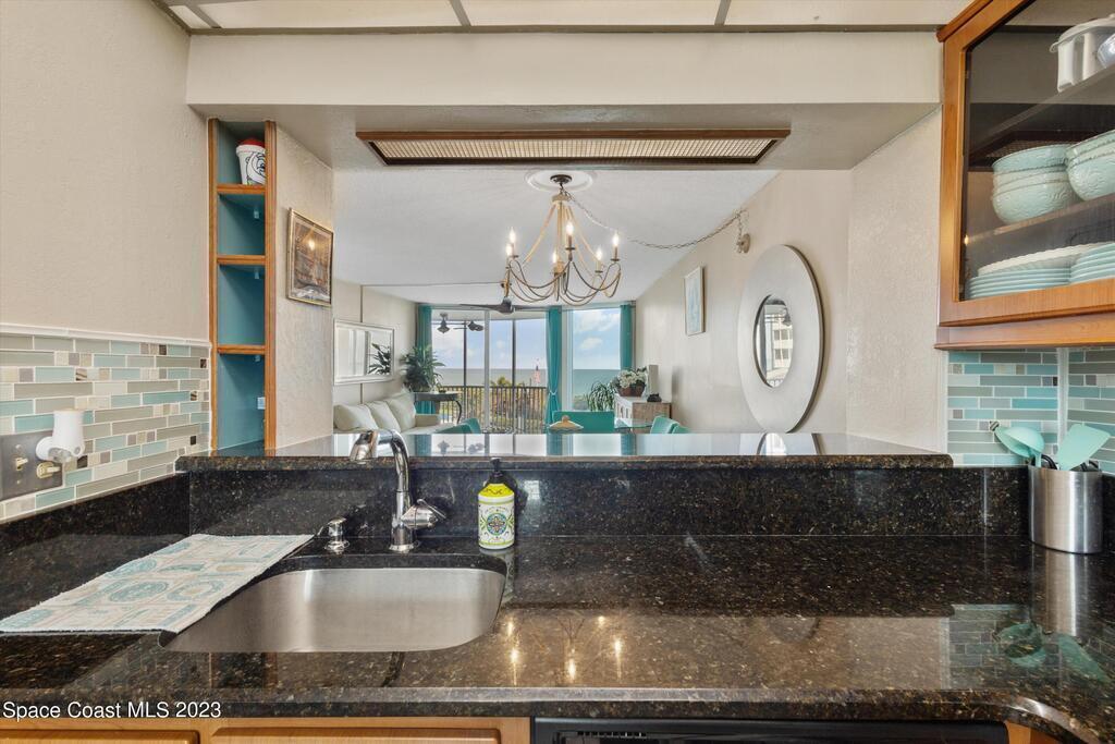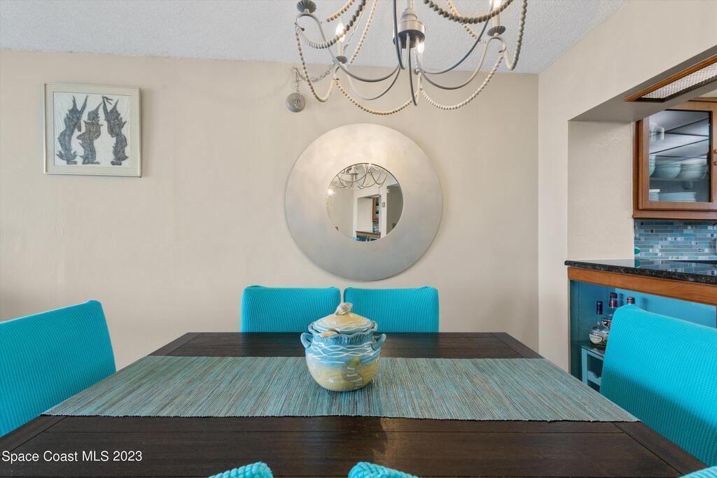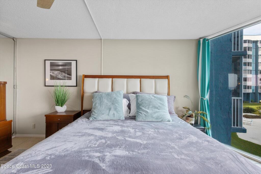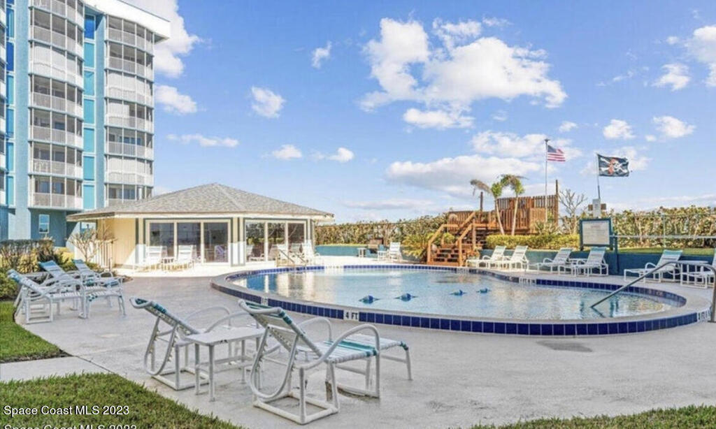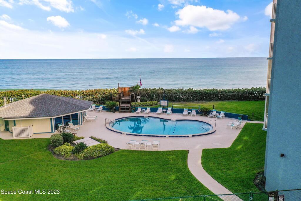 This is a beautiful 2nd floor unit with amazing ocean and pool views! The kitchen has been tastefully updated with granite countertops and SS appliances. Tile floor throughout. Watch the rockets launch from your balcony! Sold partially furnished. 1 month minimum rental and 2 pets allowed under 20 lbs. Garage parking, pool, club house, tennis court and car wash station all onsite! Partial furnishings include: Dining table & chairs, sofa and bedroom furniture.