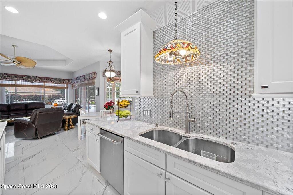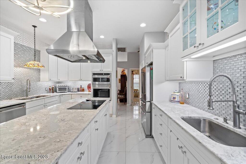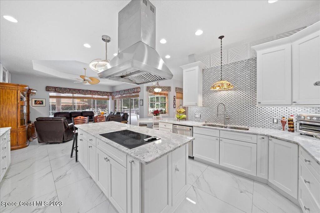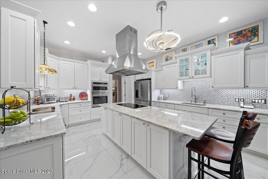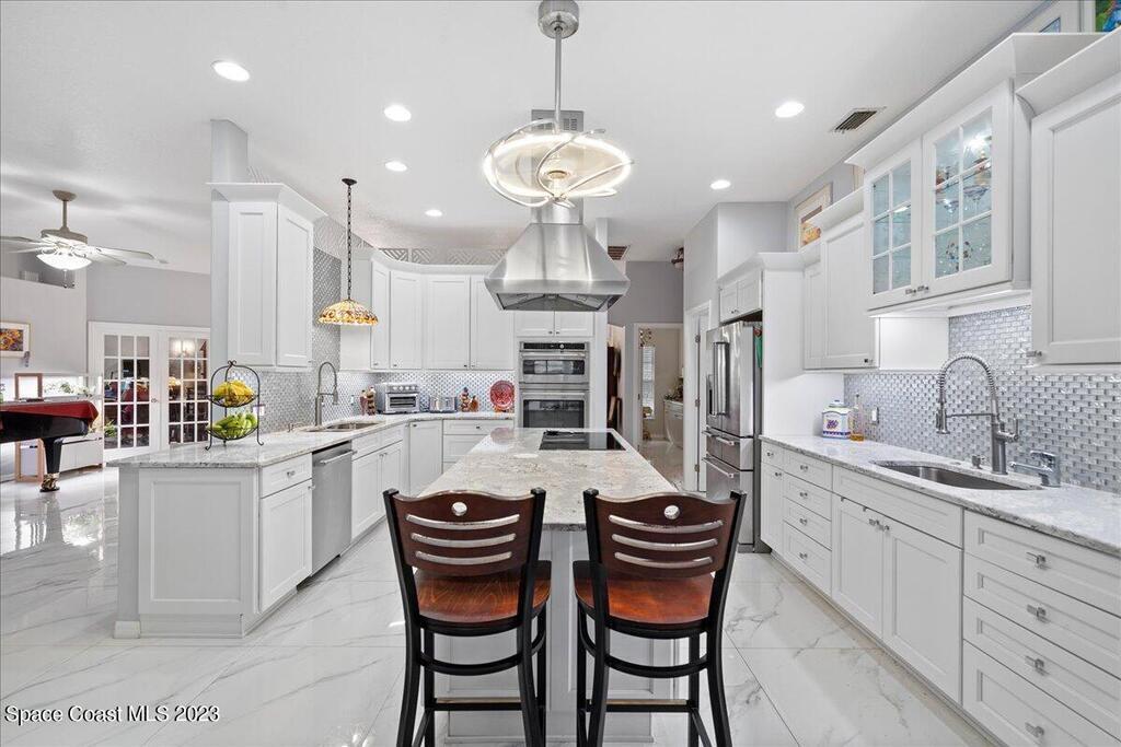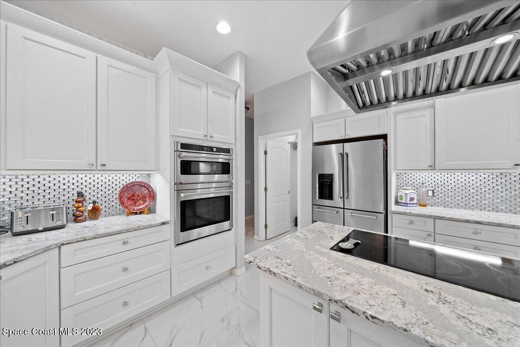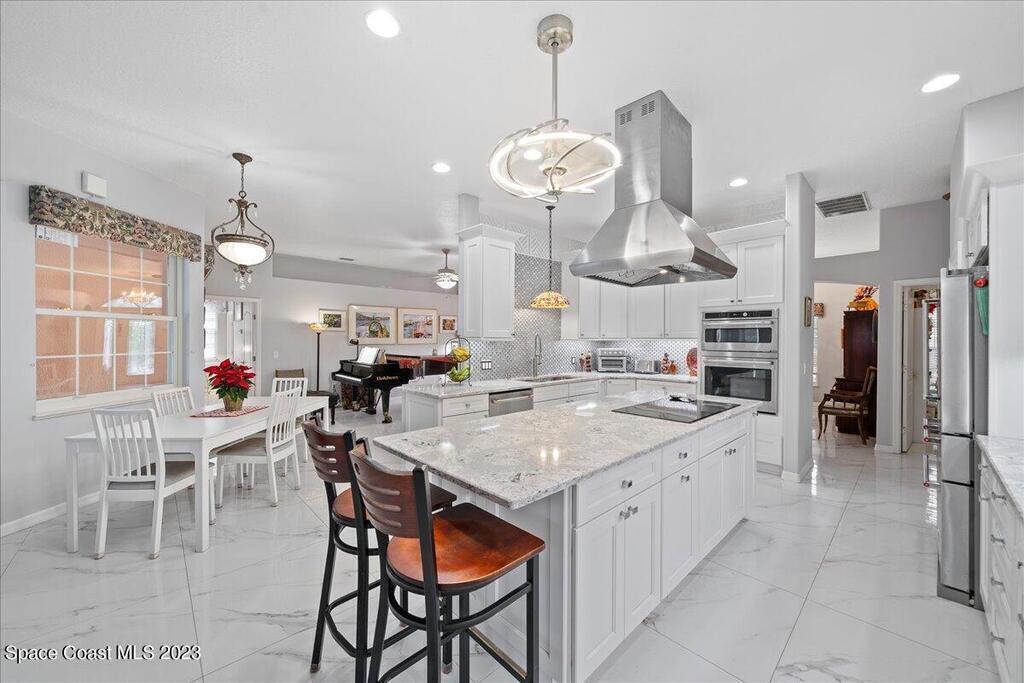 PRICE IMPROVEMENT - $45,000 DROP!! DON'T WAIT! This exceptional home, nestled in a unique neighborhood, offers a distinctive blend of luxury and functionality. Featuring five bedrooms and four baths, this residence boasts a versatile flex room with an attached bath. Currently utilized as a professional piano studio, this multifaceted space can easily transform into a mother-in-law suite, a professional office, or even a sixth bedroom. As you step inside, be greeted by the stunning 3' x 3' polished porcelain tile, imparting a touch of modern elegance throughout the home. The heart of this residence is undeniably the chef's kitchen, equipped with top-of-the-line GE Cafe appliances, including a double oven and a large burner cooktop in the 9ft center island. (cont)