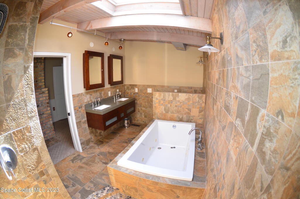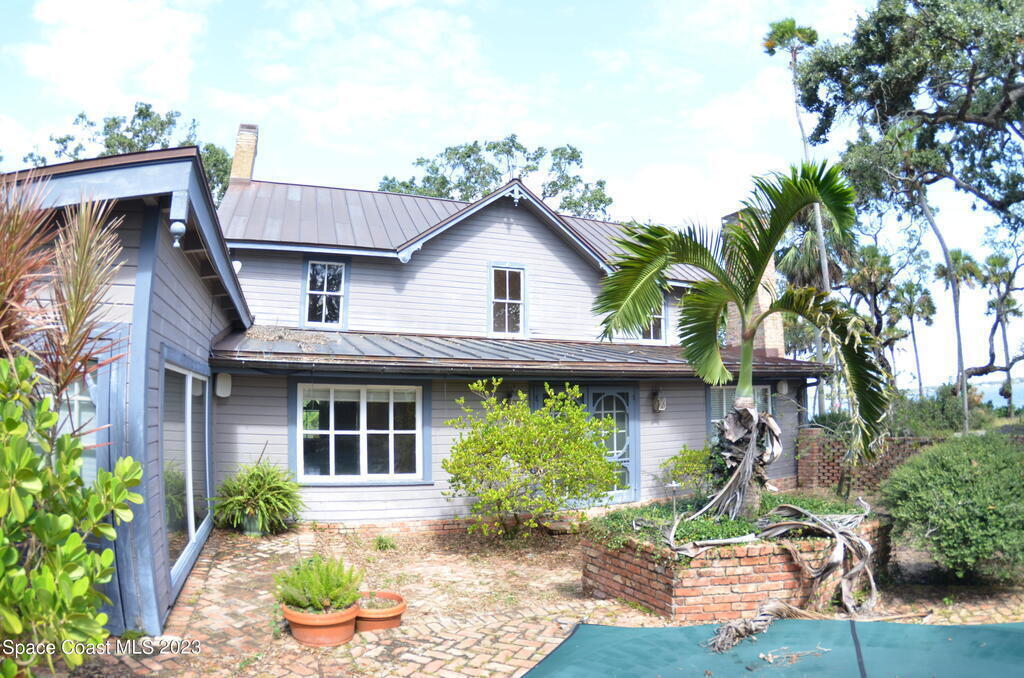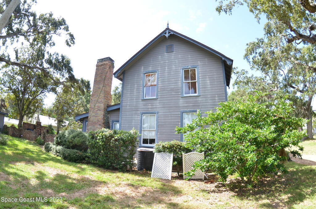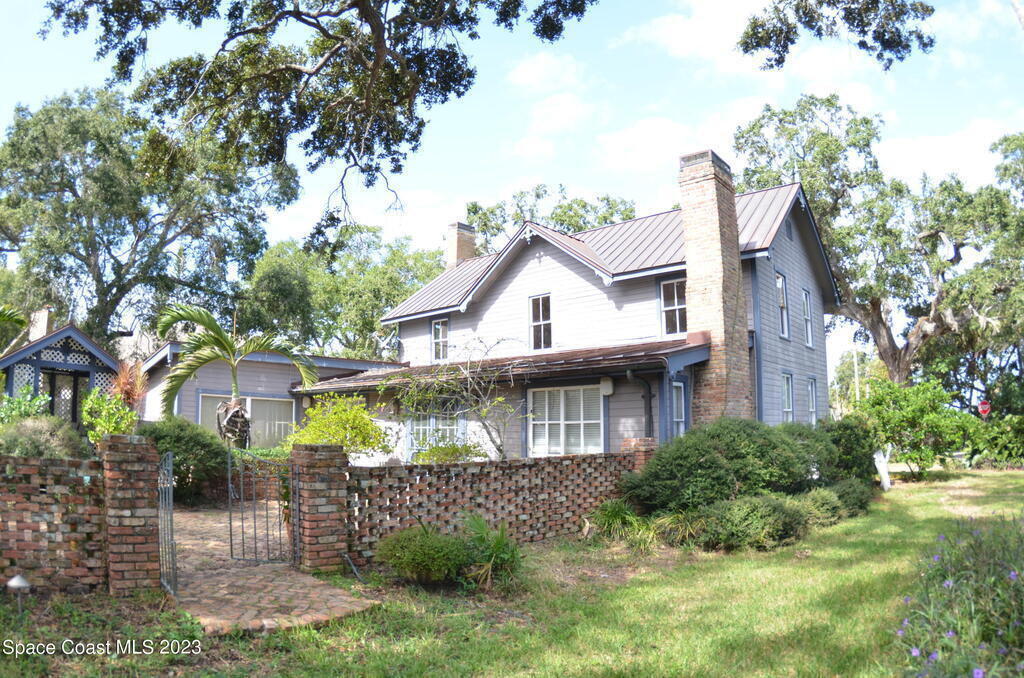 Historic Indian Riverfront home in Olde Rockledge, Great investment potential. This 2-story home on over 1/2 an acre with magnificent trees overlooking the Indian River. The outdoor spaces invite entertaining and flow easily from the home. The old brick driveway and seating areas feature a gazebo and a jacuzzi as well as a cookout area with a fireplace. The home is very modern while still maintaining a historic feeling. This 3 bedroom, 2.5 baths, has 4 fireplaces, beautiful wood, brick, tile and carpet throughout. Master bathroom has skylight, jetted tub and separate shower. Vintage touches in the 2nd bathroom, with a standalone tub that has a shower feature. Detached 2 car garage with an attic for extra storage space. Amazing unobstructed views of the river and won't last long!