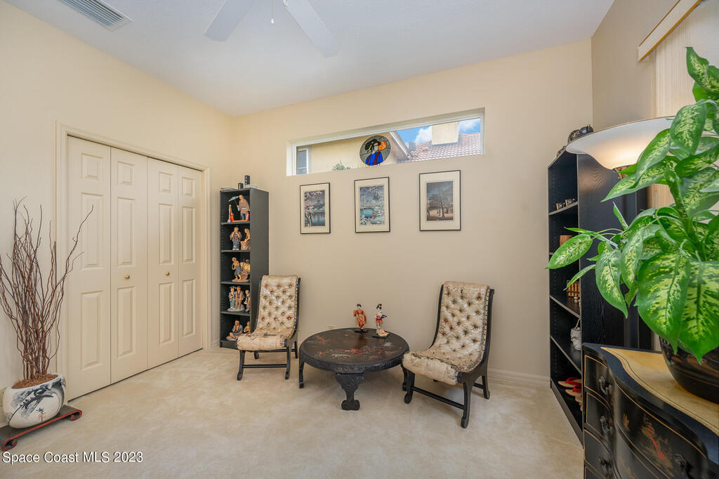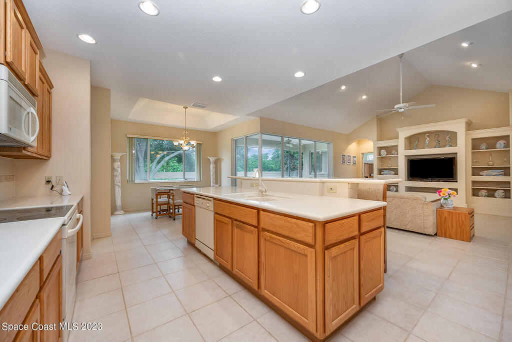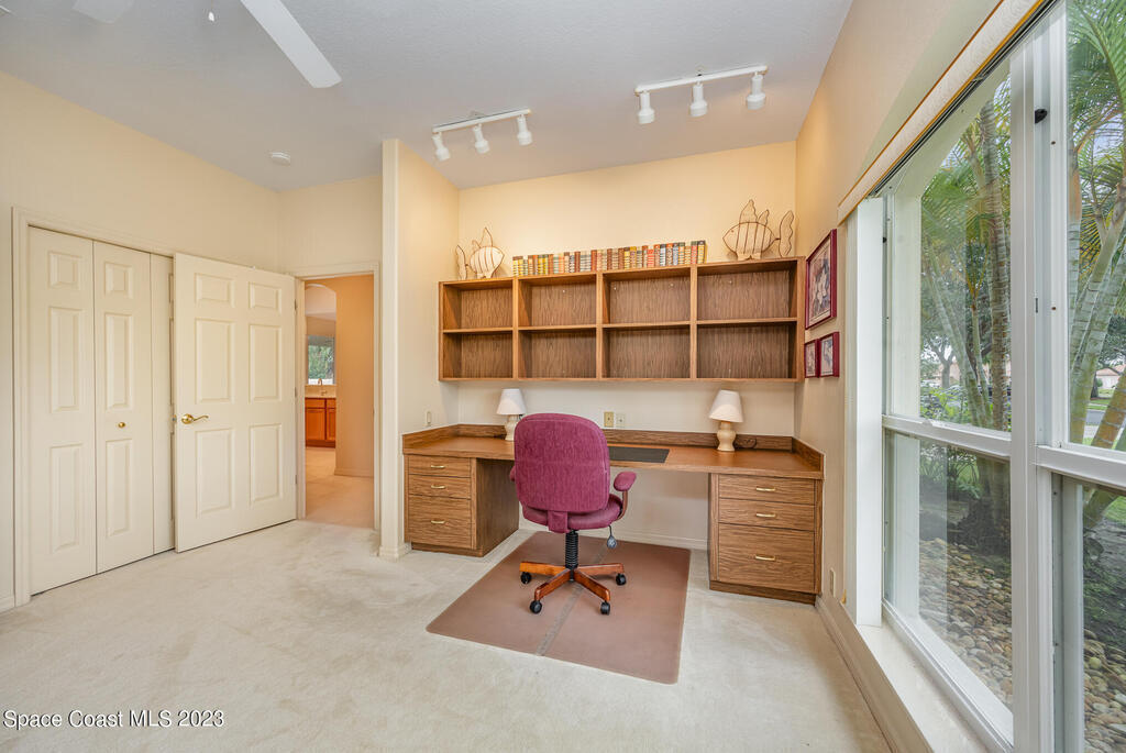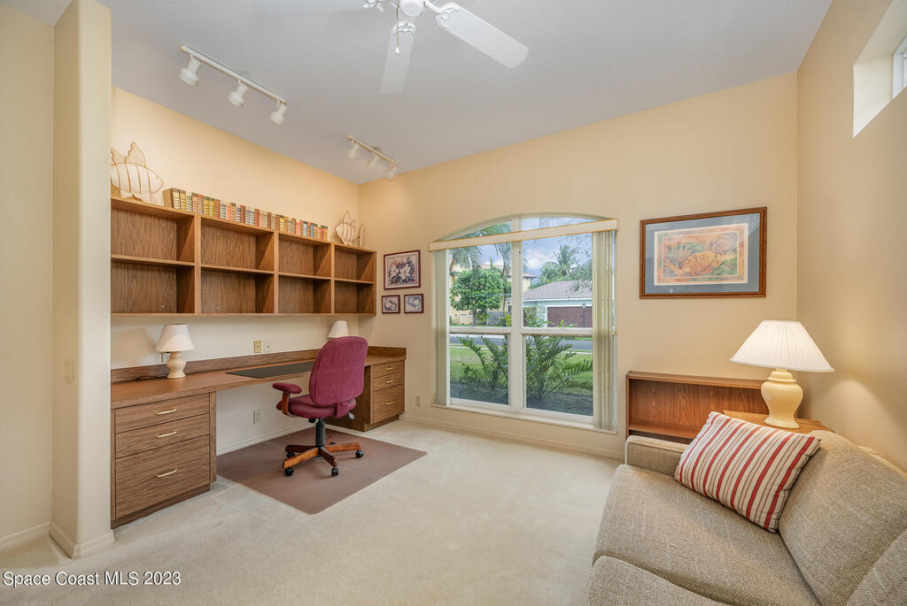 BRING OFFERS. 4 bedroom, 2 bathroom home available in Indialantic's prestigious gated Cloisters community. Open-concept design with expansive kitchen and family room as well as formal dining and living room spaces. Split floorplan includes master suite with walk-in closet, separate shower and soaking tub, and double sinks. 3 additional bedrooms, a full bathroom, and a laundry room located on the opposite side of the home. 4th bedroom can be used as an office with built-in desk and shelves. Cascading sliding doors allow interior and outdoor living to become one. Backyard is ready to add your dream pool. Guest bathroom could become a pool bath with the addition of an exterior door.